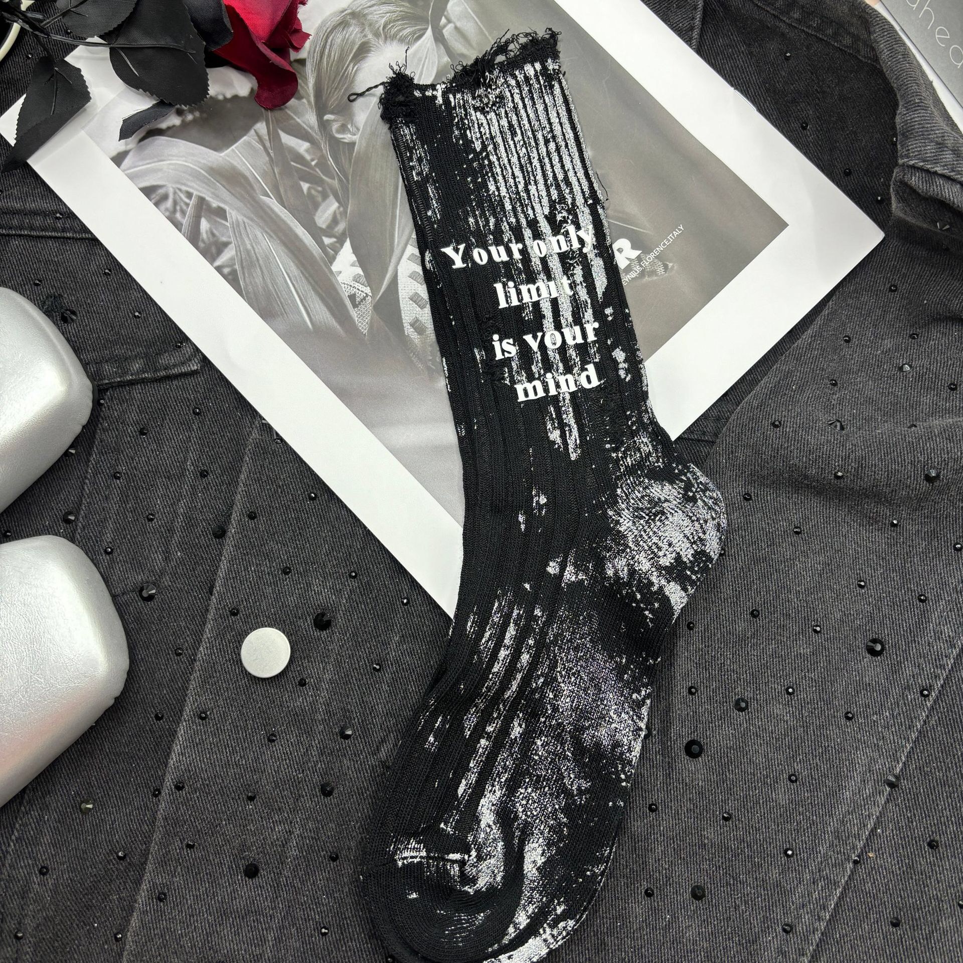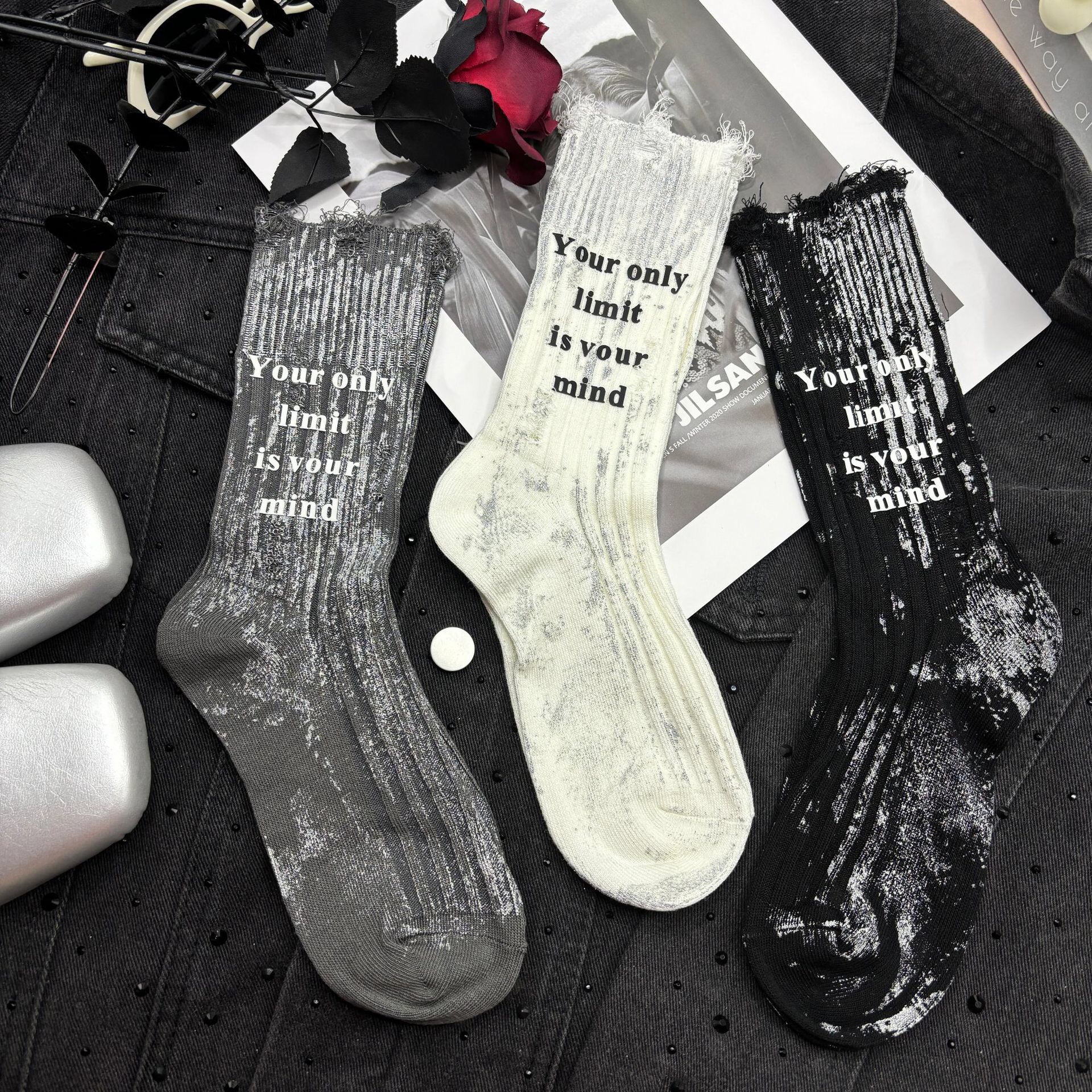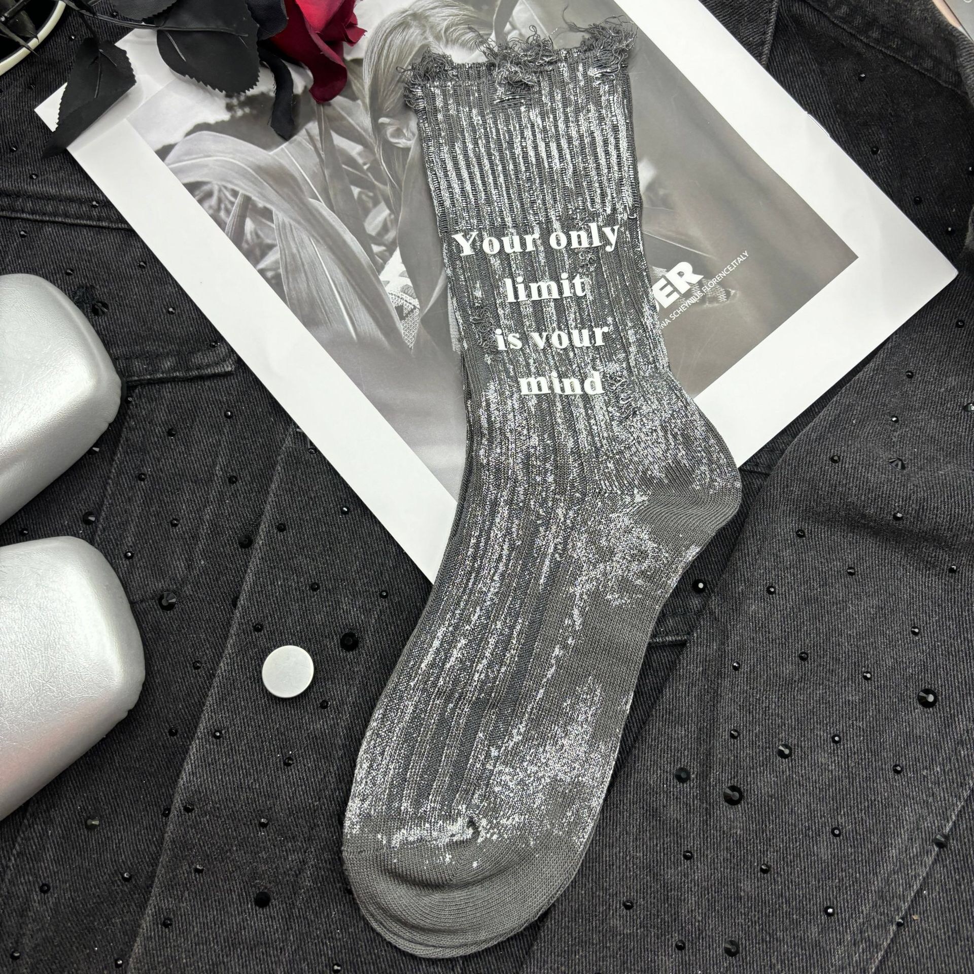 潮流銀色噴漆中筒襪個性洋氣百搭外穿潮襪立體燙母破洞堆堆襪