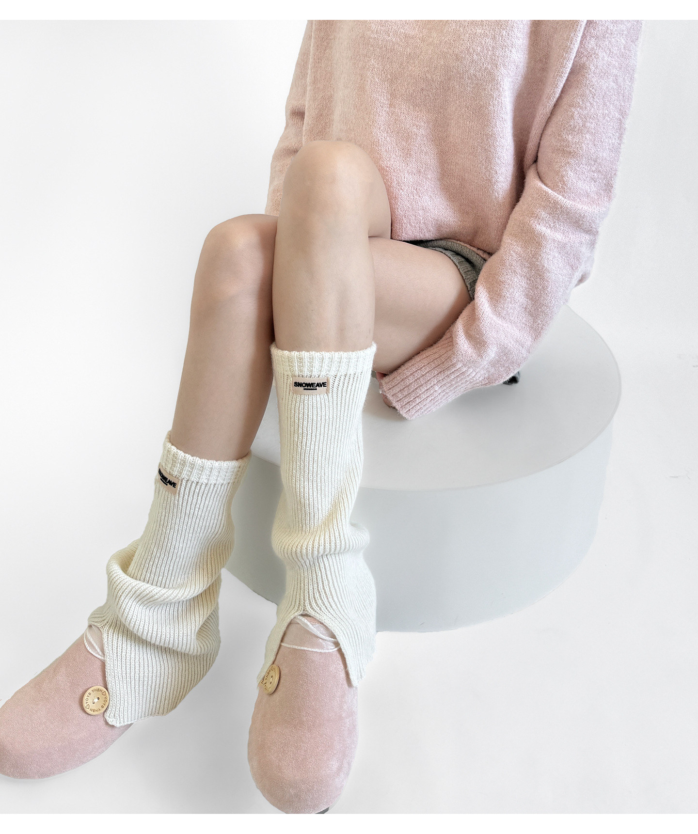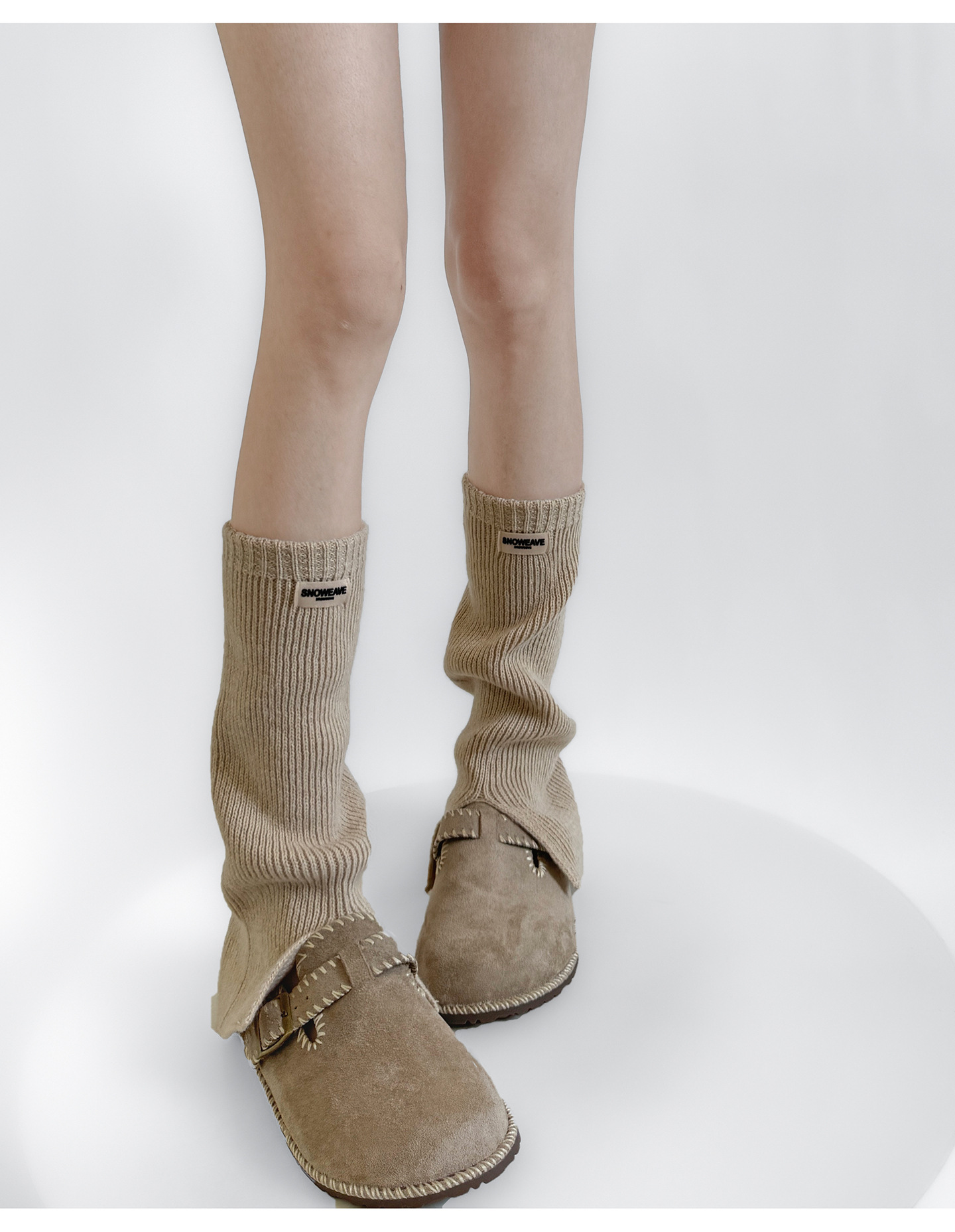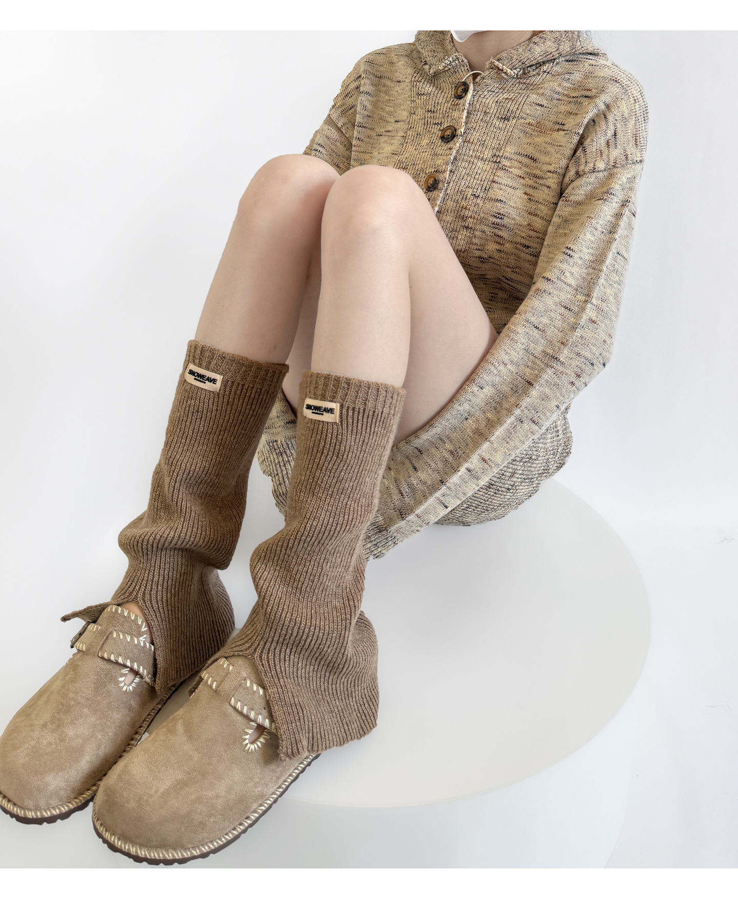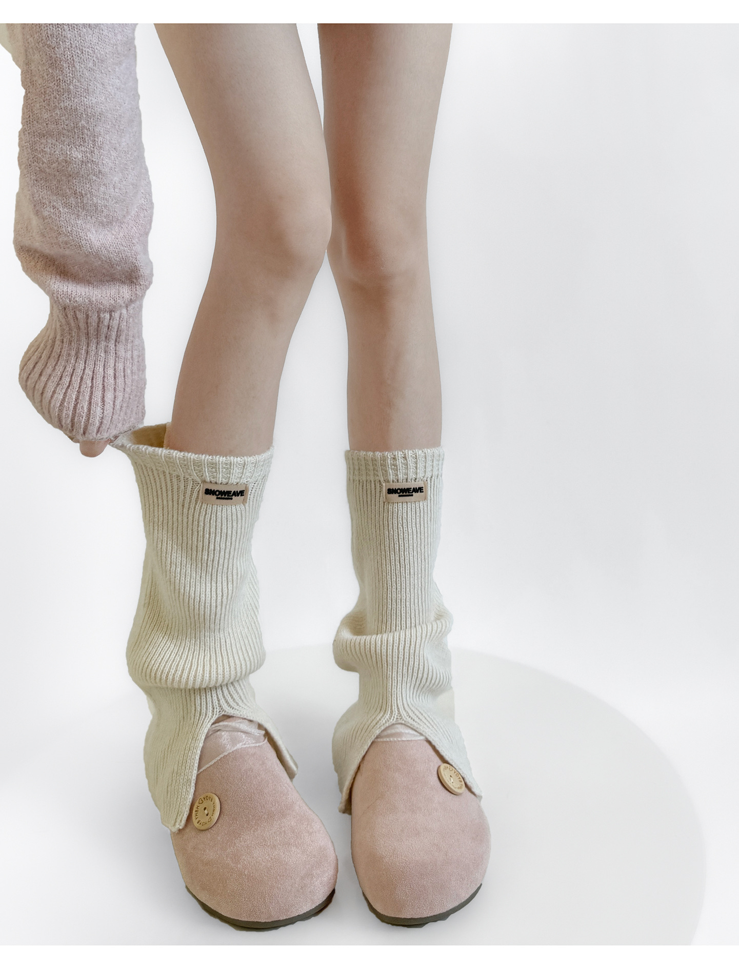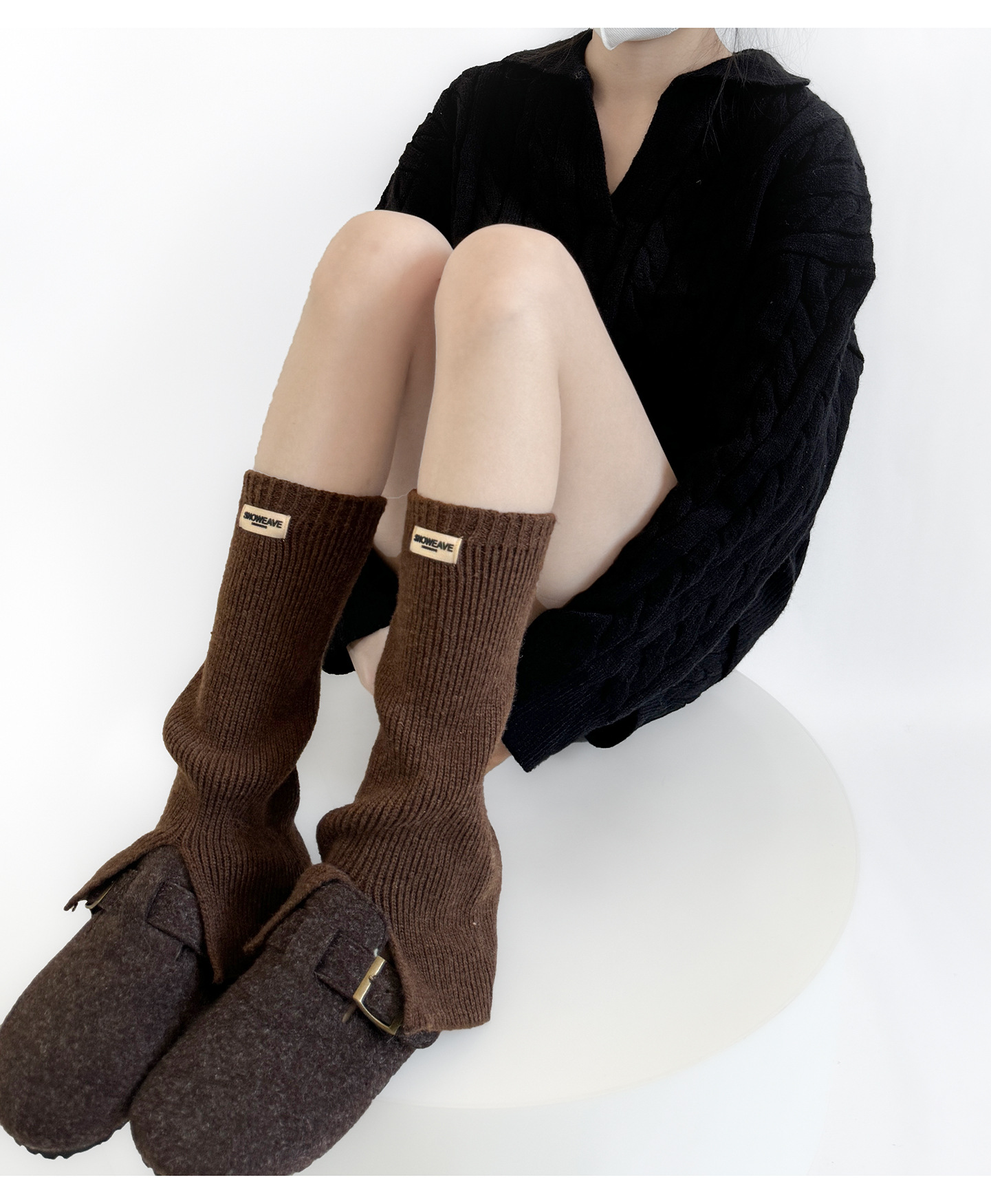 洞洞妖 MIU風字母襪套秋冬羊毛針織布標開叉曡穿中筒保暖配雪地靴