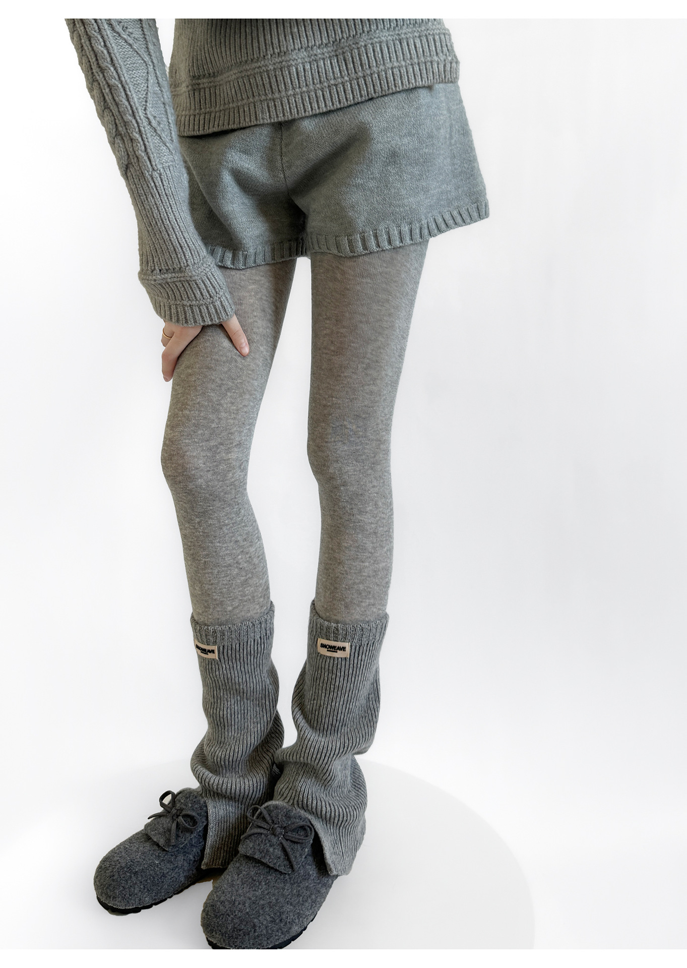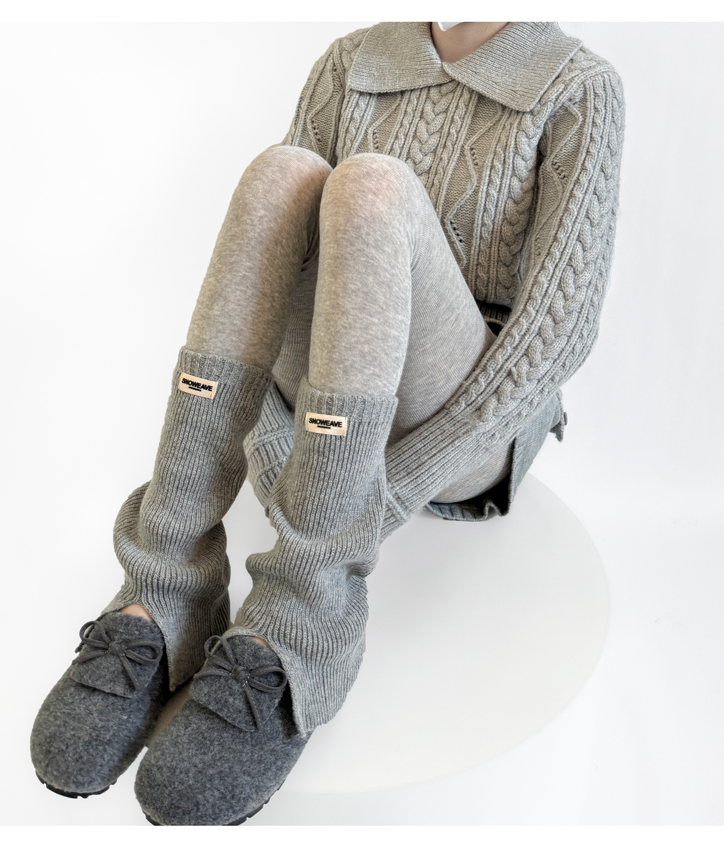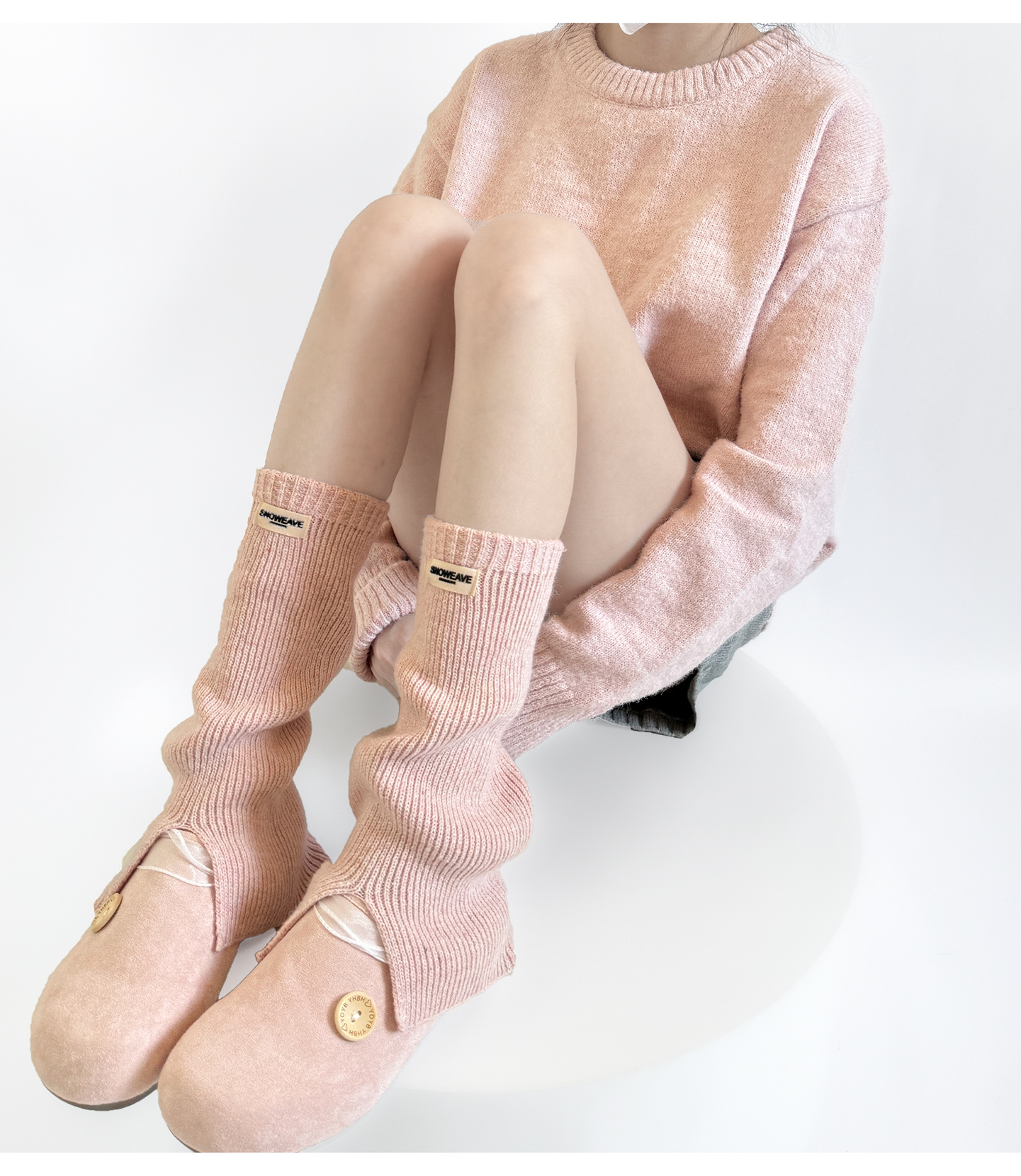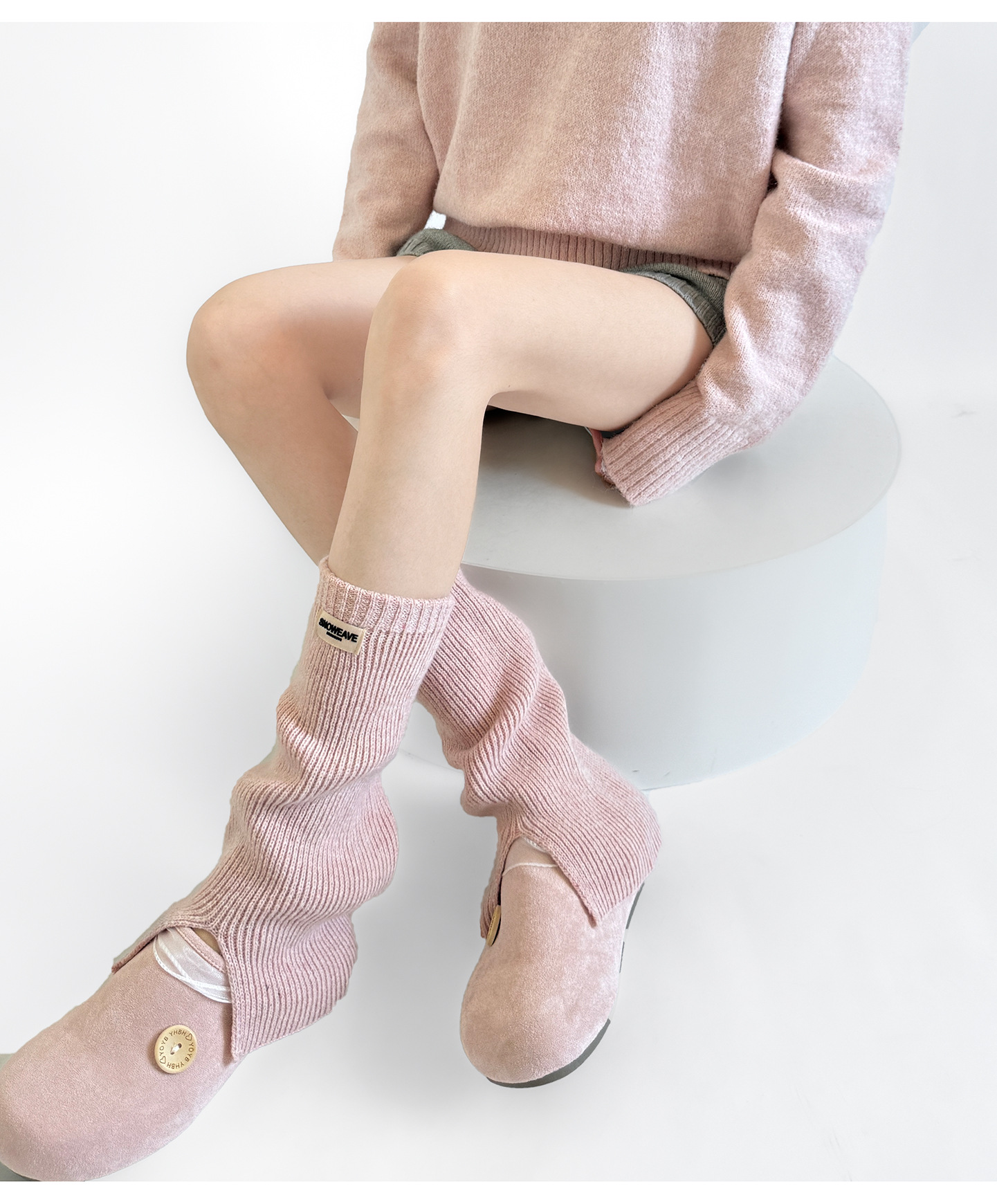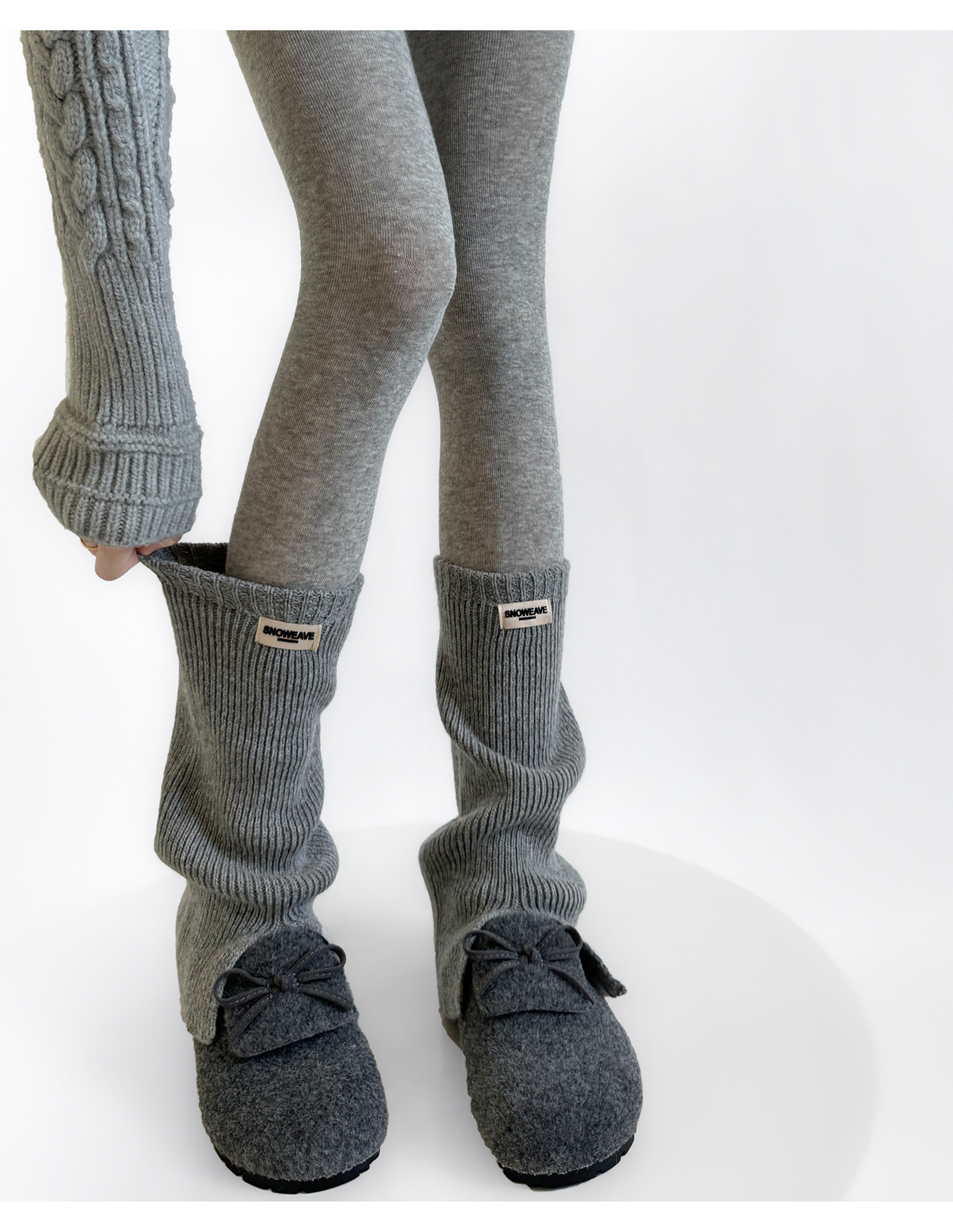 洞洞妖 MIU風字母襪套秋冬羊毛針織布標開叉曡穿中筒保暖配雪地靴