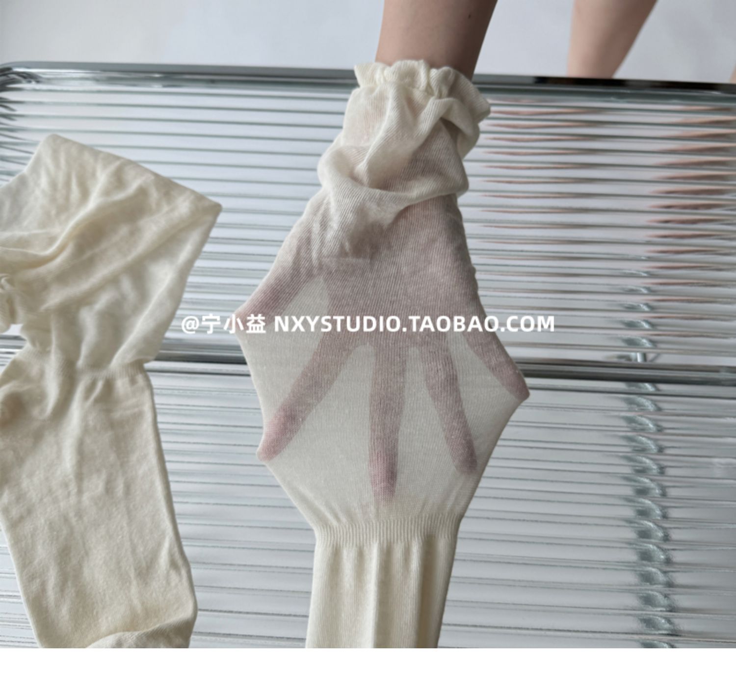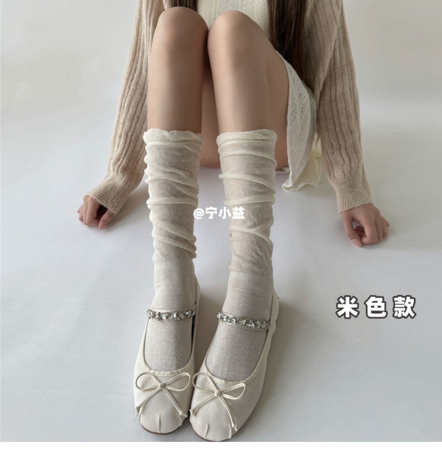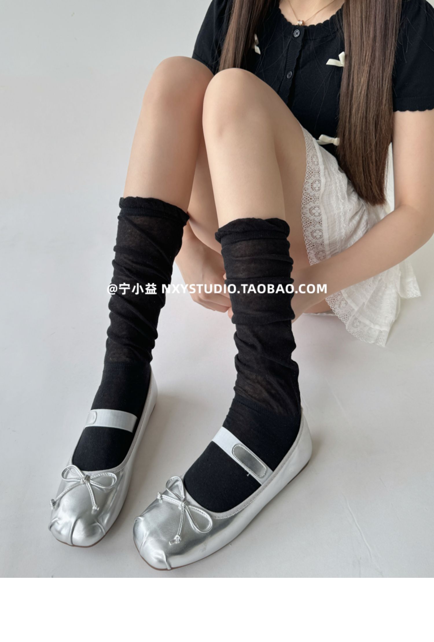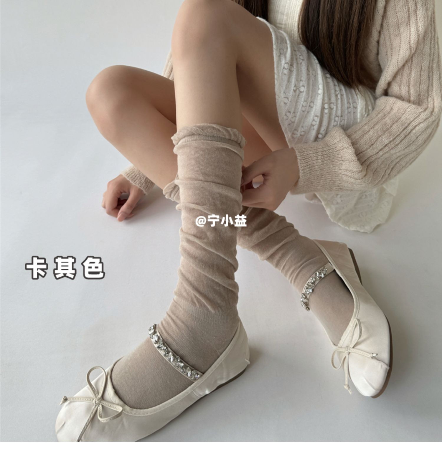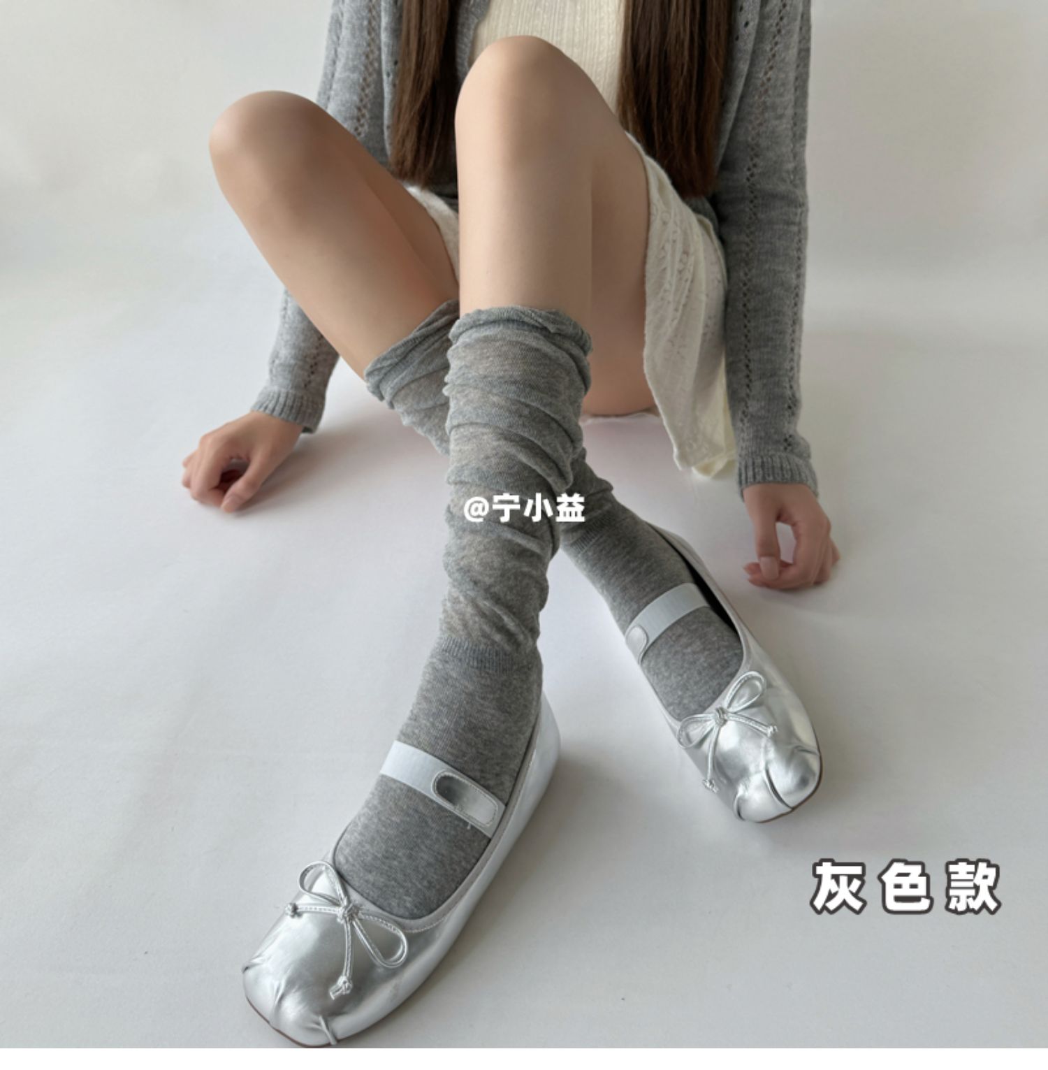 甯小益泡泡口拼接小腿襪子女春夏季薄款美拉德中筒襪jk灰色堆堆襪