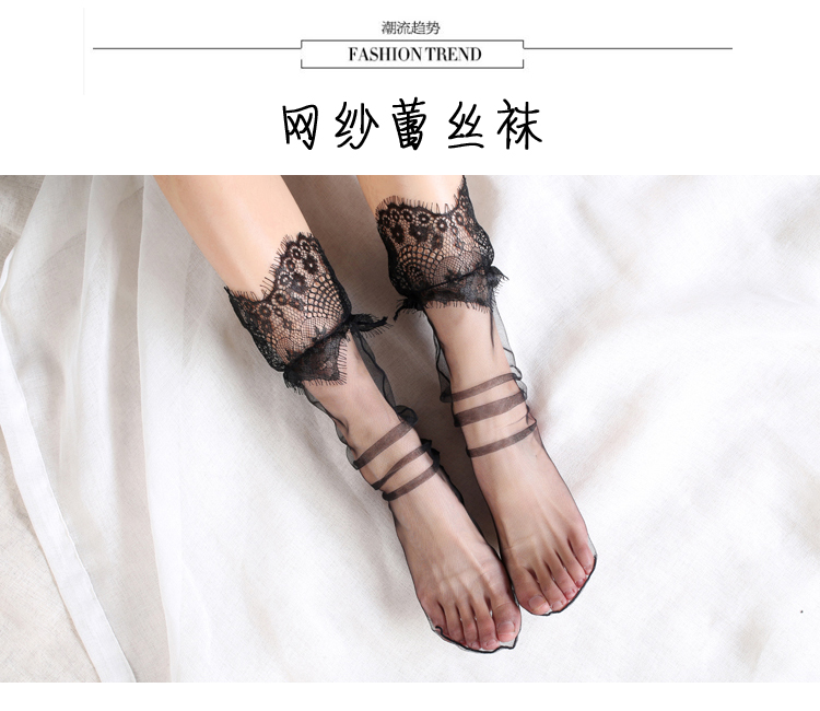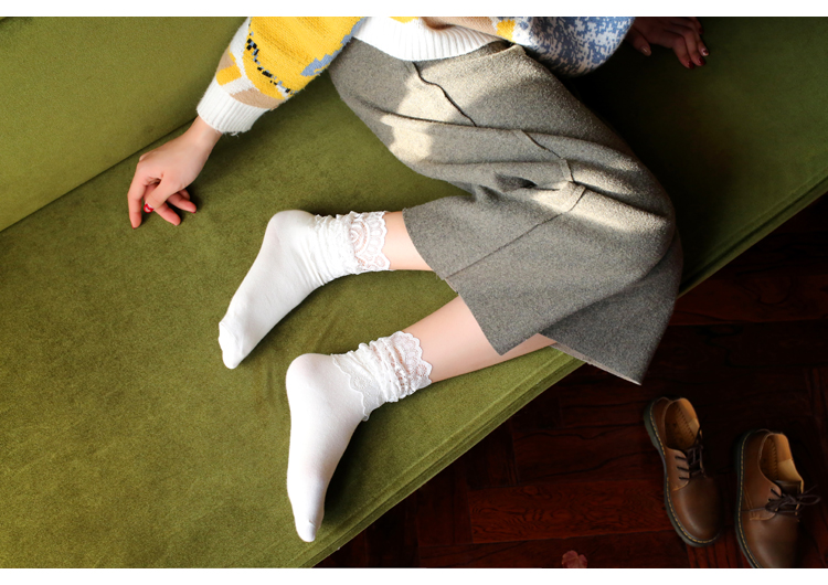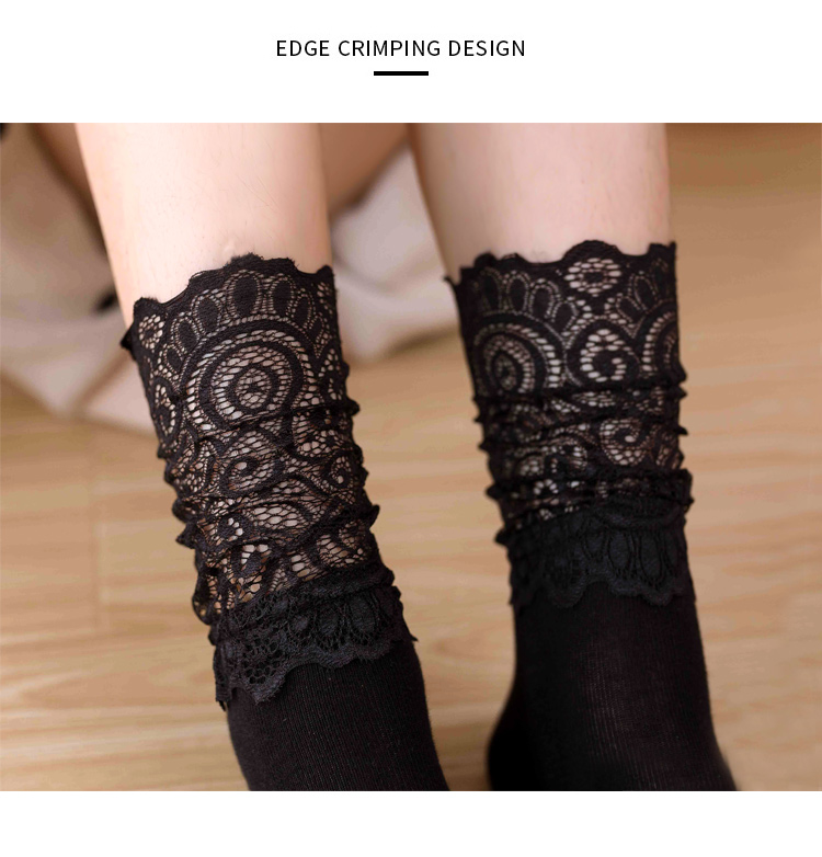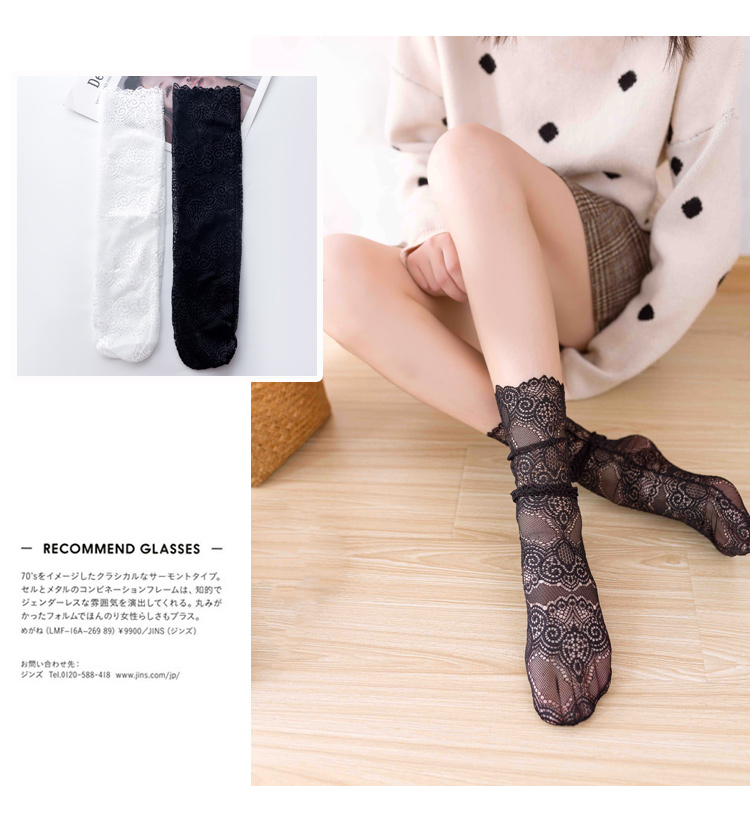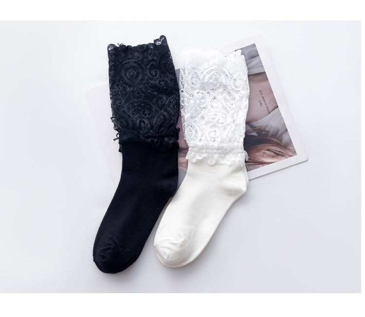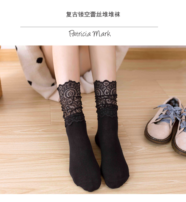 2雙裝 韓國時尚復古蕾絲襪子女日系網眼堆堆襪春秋鏤空網襪中筒襪