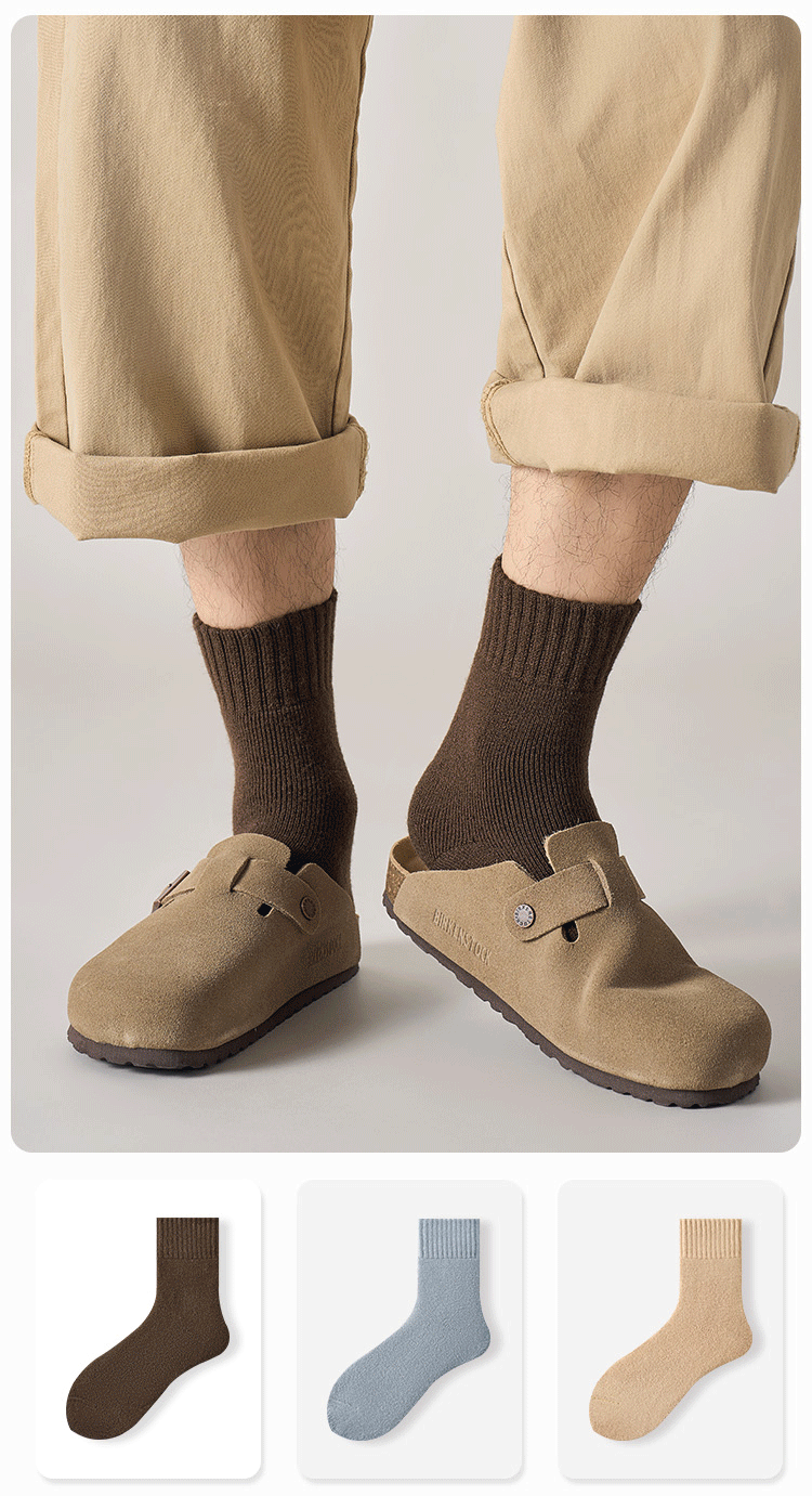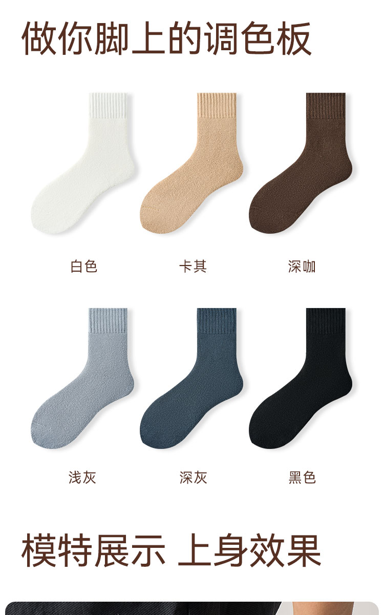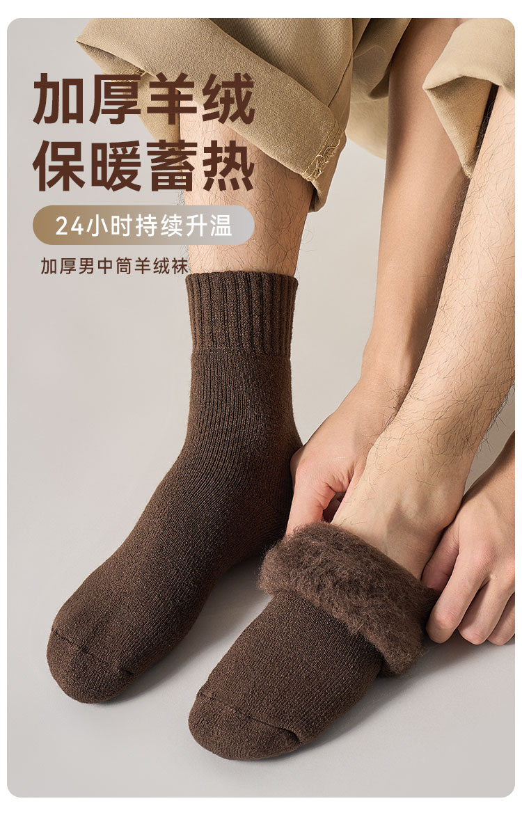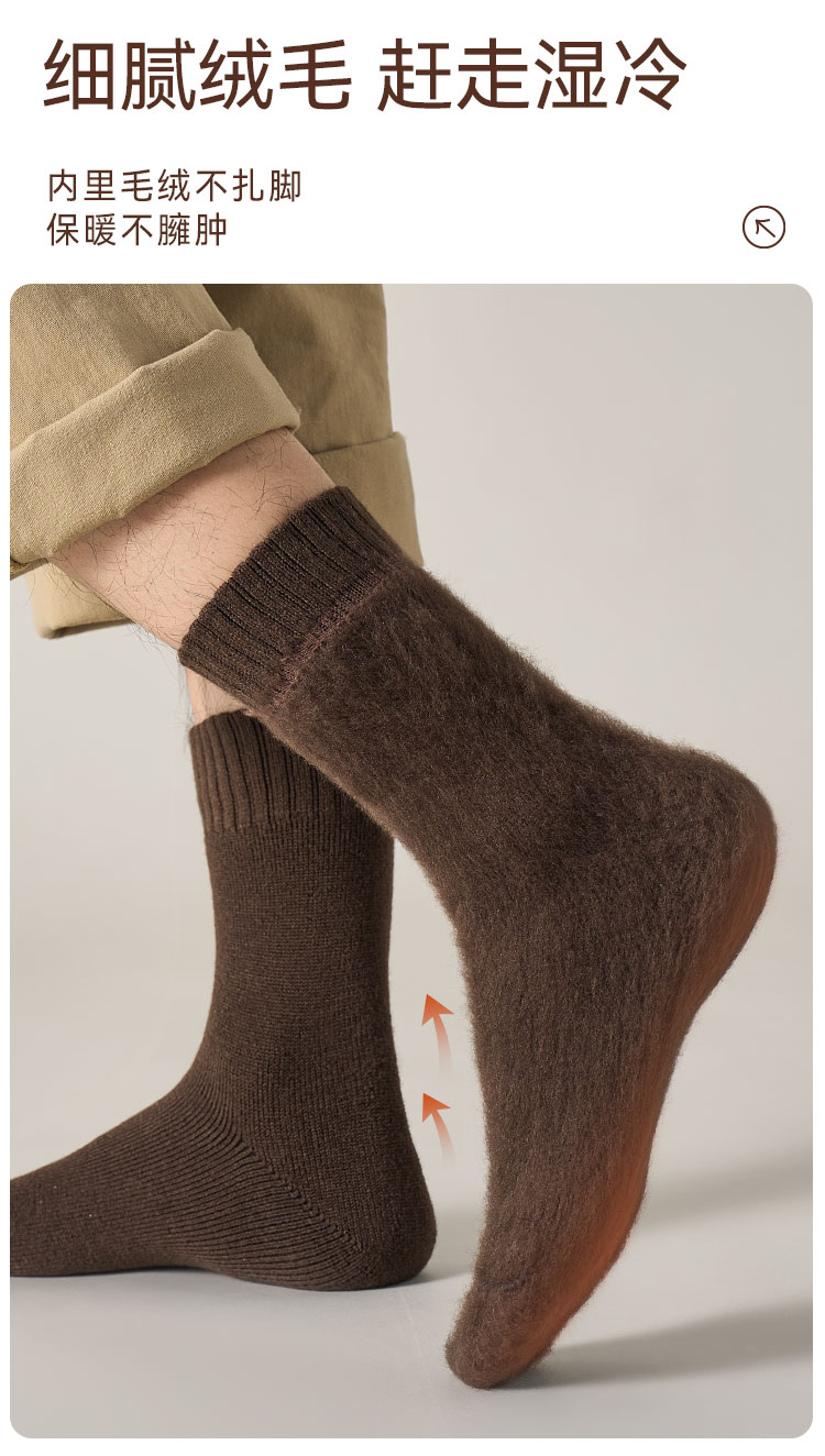 羊絨中筒襪子男秋冬季加厚保暖羊毛棉襪睡眠襪加絨男士雪地襪冬天