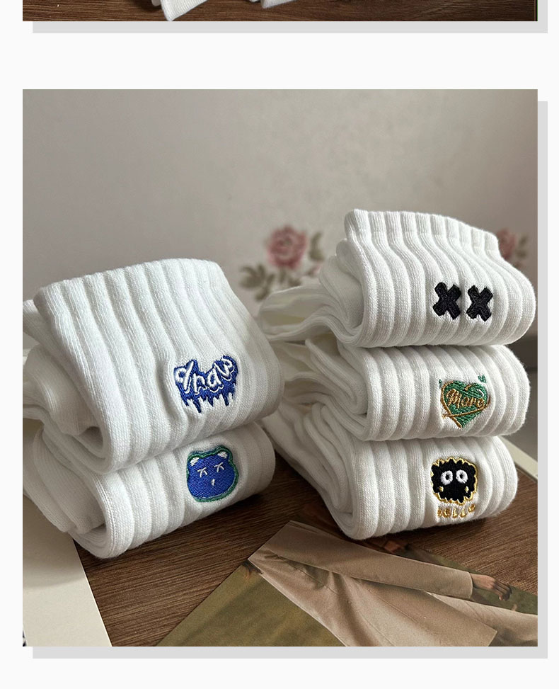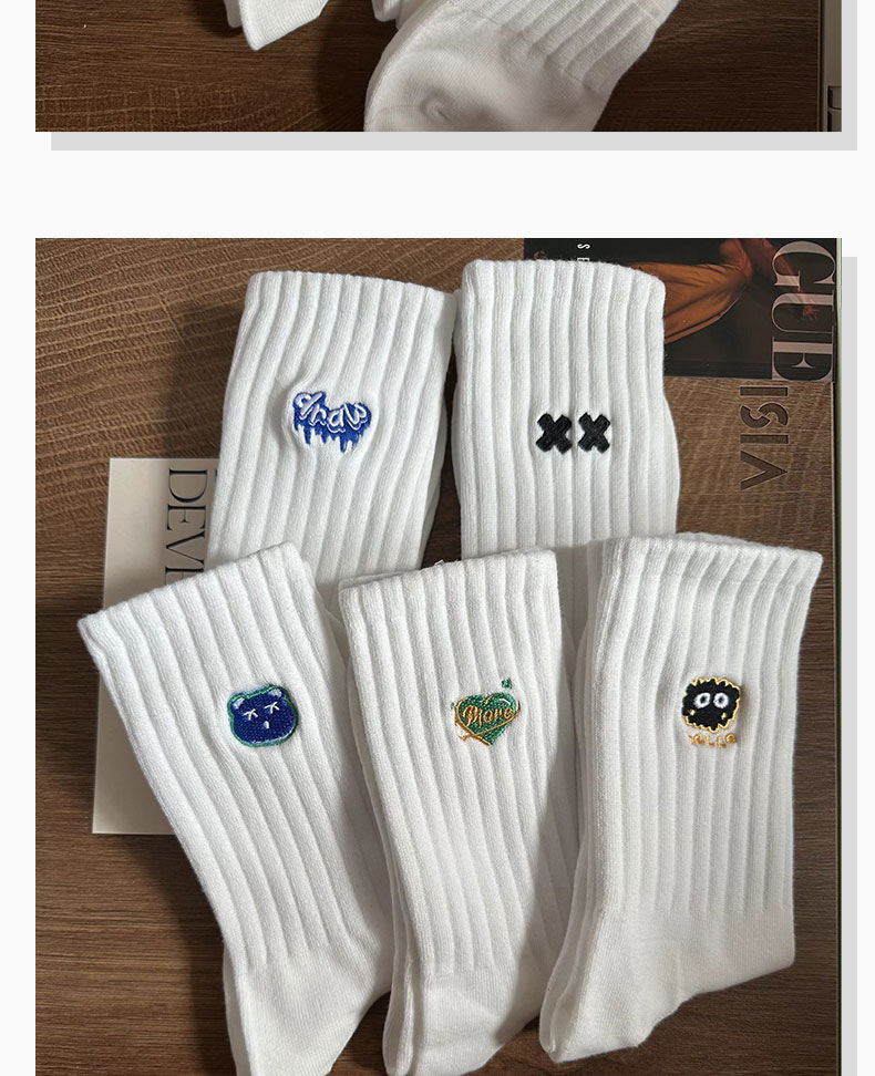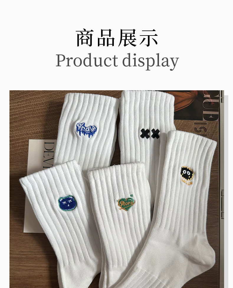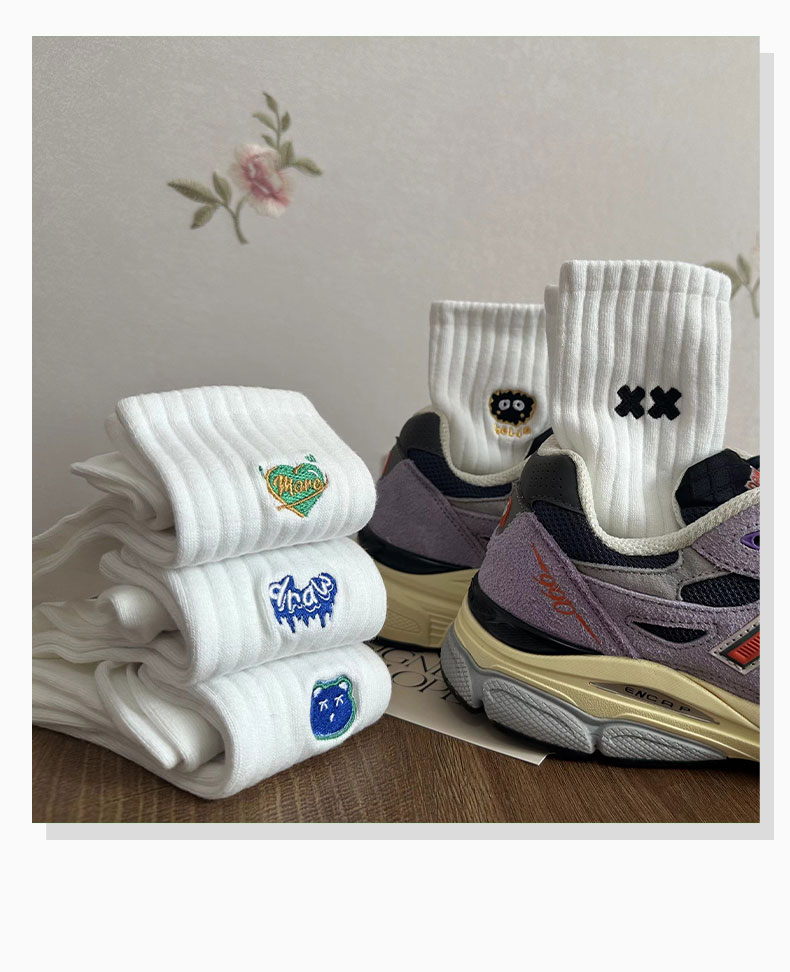 襪子男 春秋長襪純棉無骨刺綉中筒襪ins潮吸汗防臭白色運動長筒襪