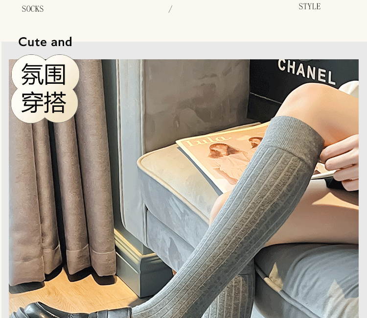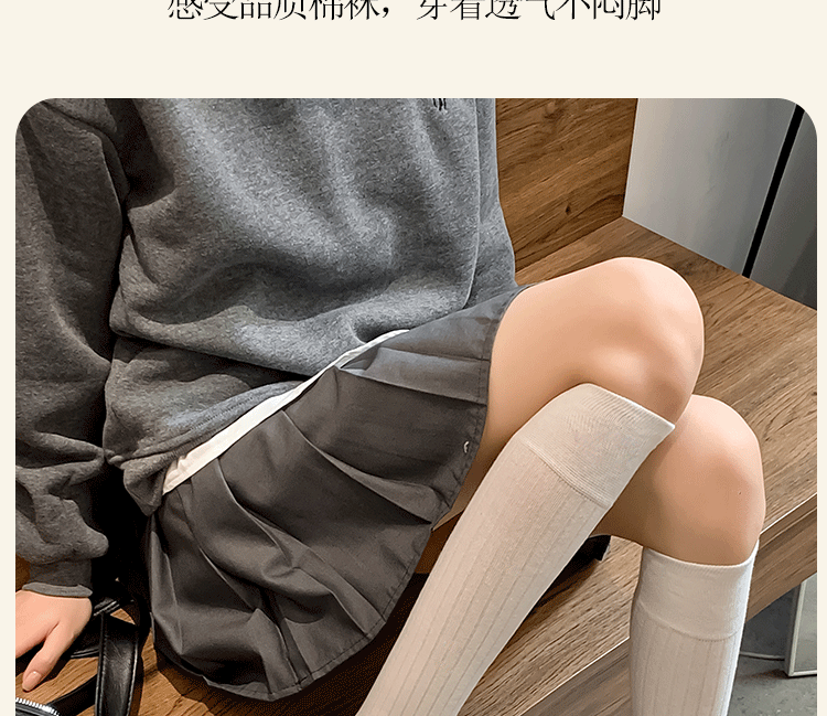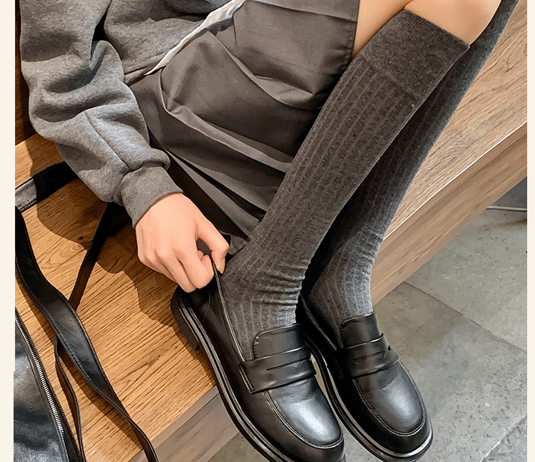 小腿襪灰色純棉春秋堆堆襪高筒襪子女及膝襪秋冬深灰色秋季長筒襪