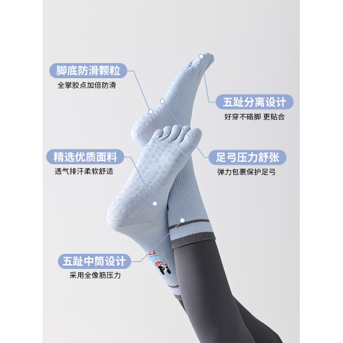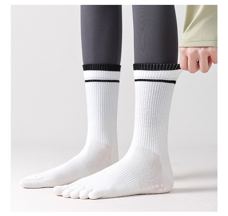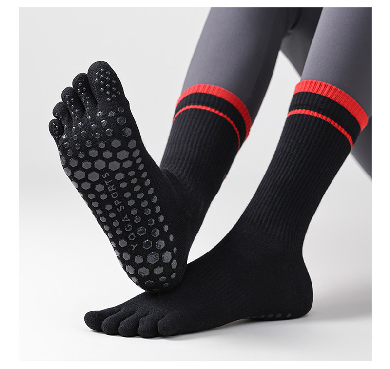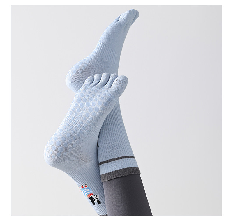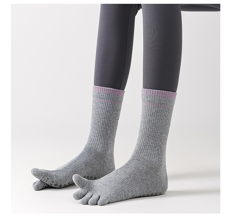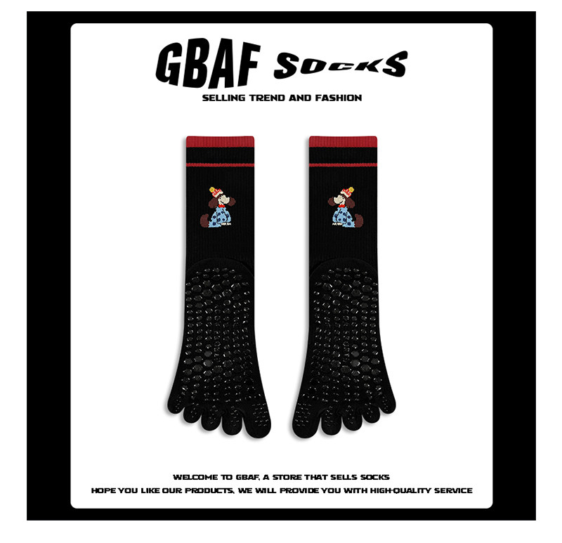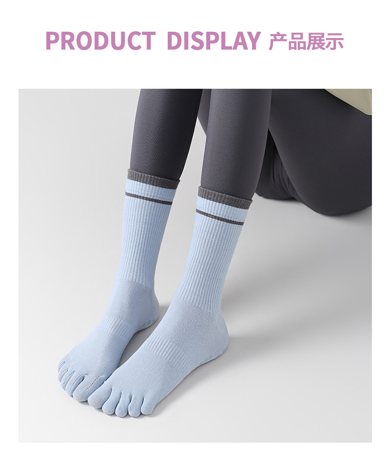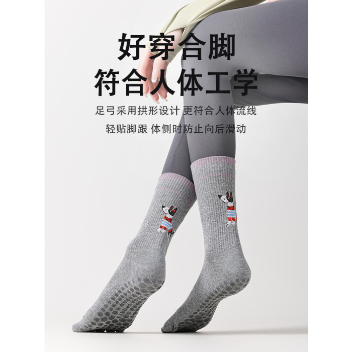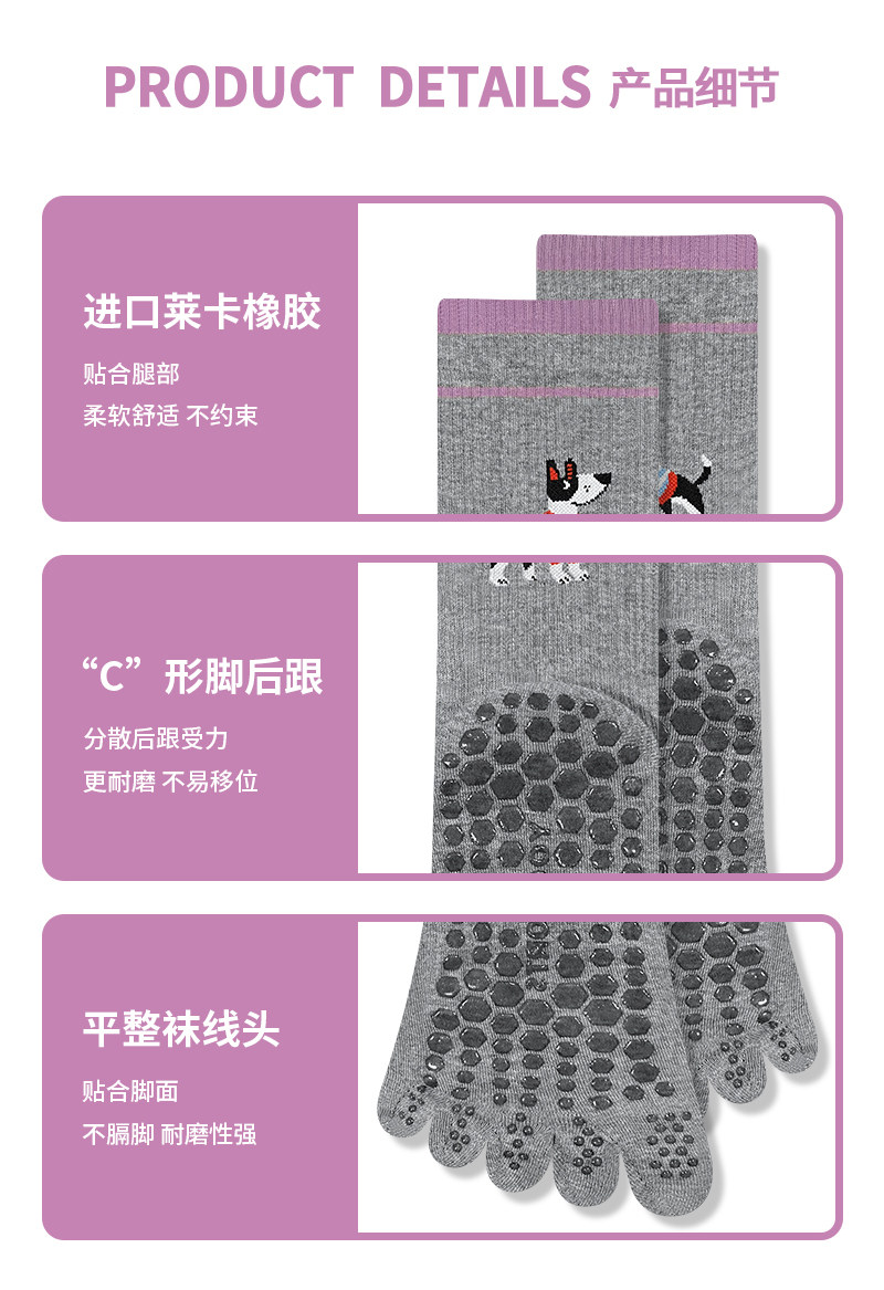 "GBAF"可愛後跟小狗防滑瑜珈襪條紋運動健身專用普拉提五指中筒襪