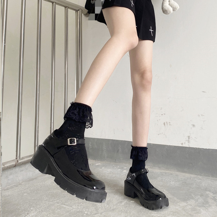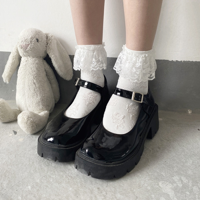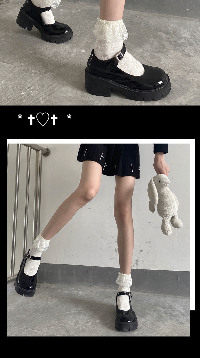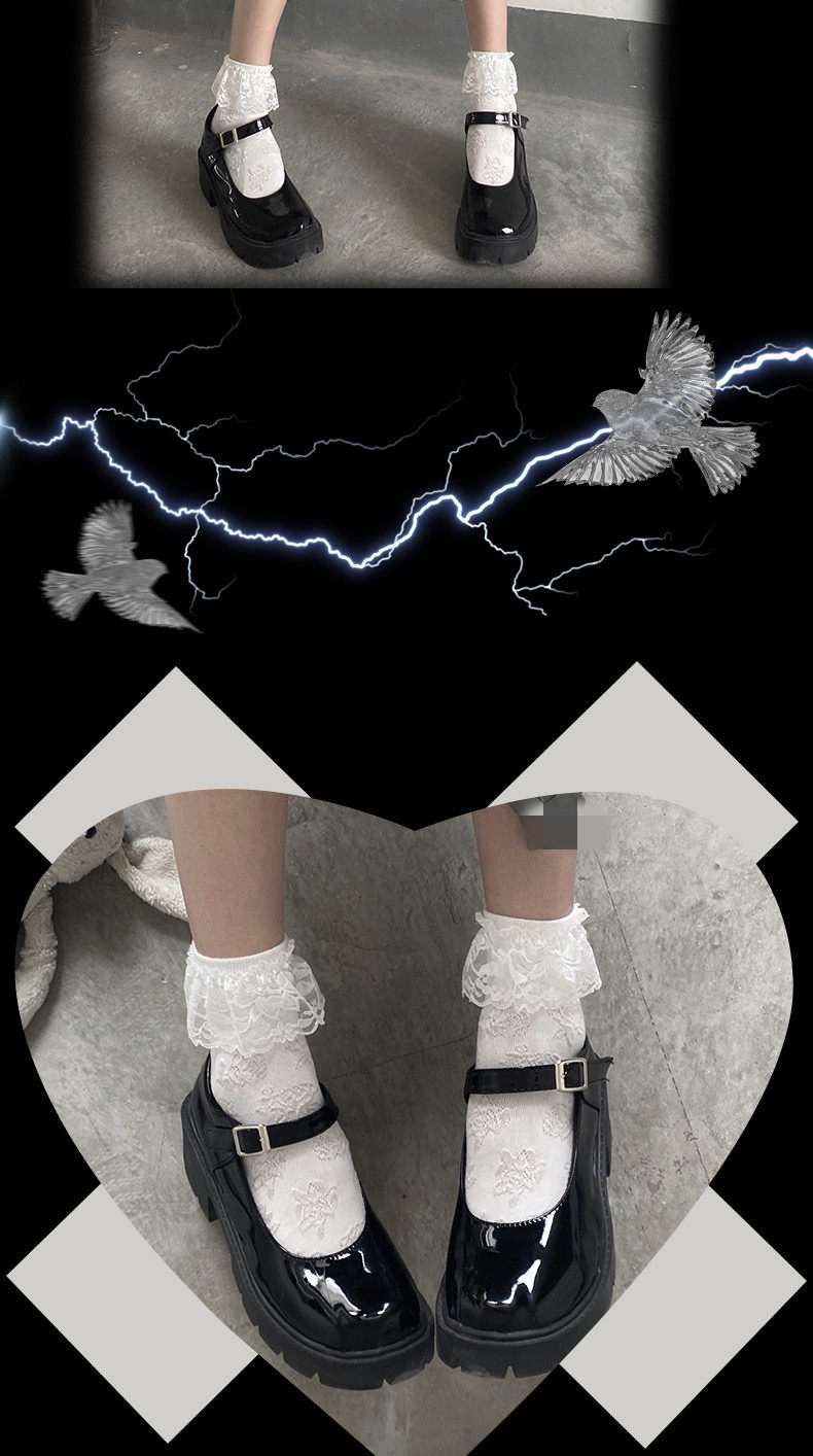 夜間教習室蕾絲花邊中筒襪jk白色短襪lolita襪子女春秋款日系可愛