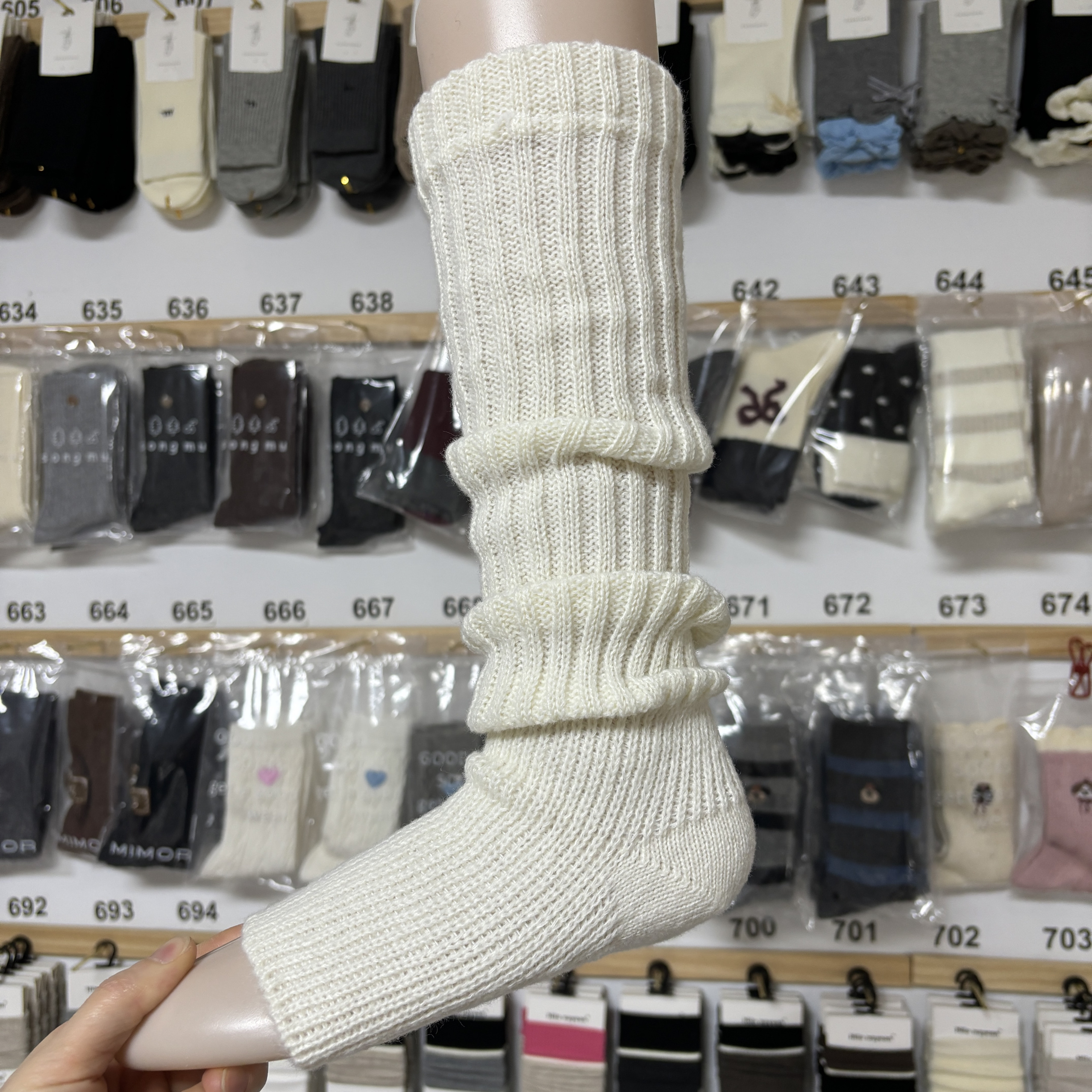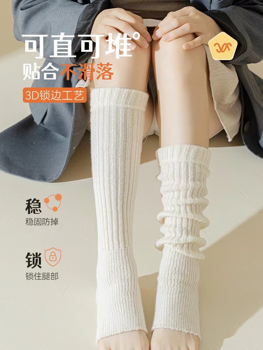 2雙秋冬加厚保暖純色潮搭襪套高筒堆堆襪女士粗針踩腳襪套