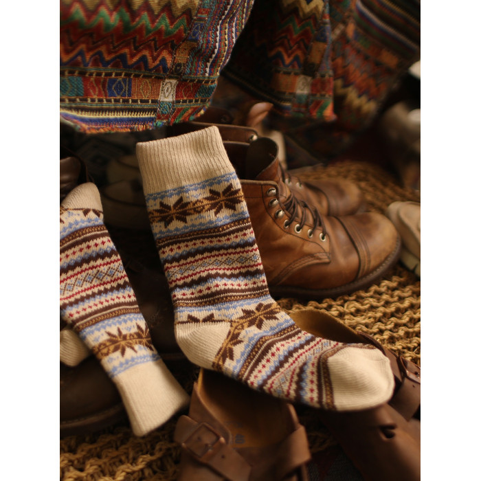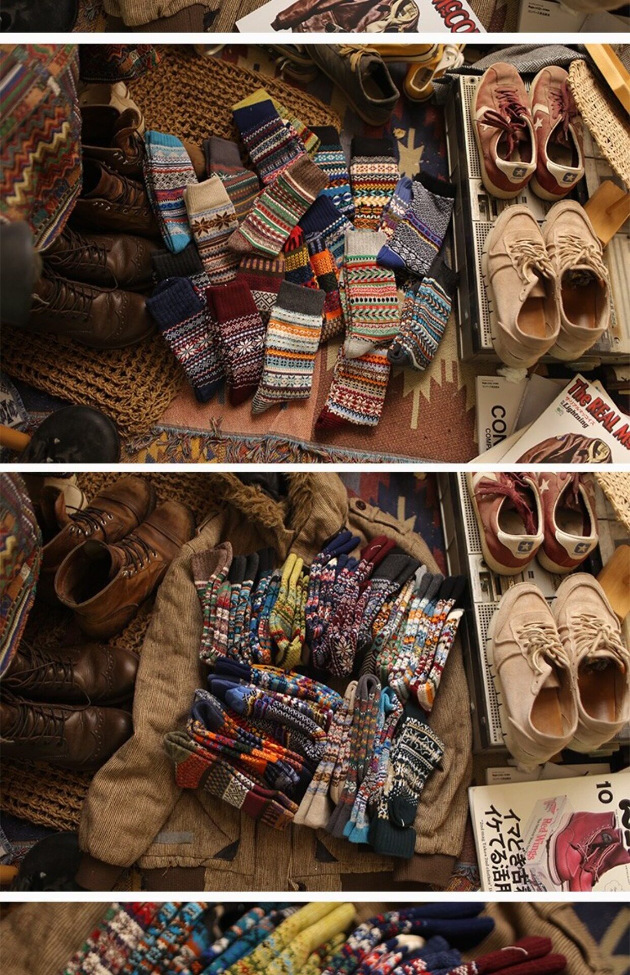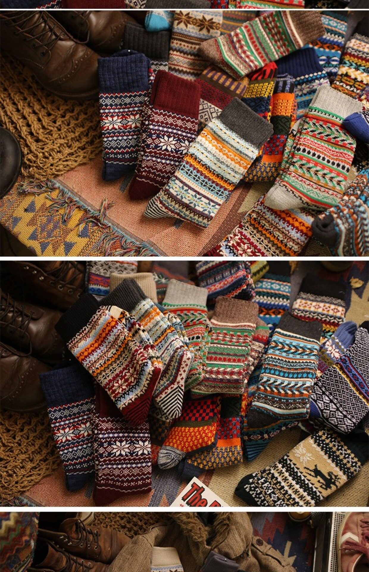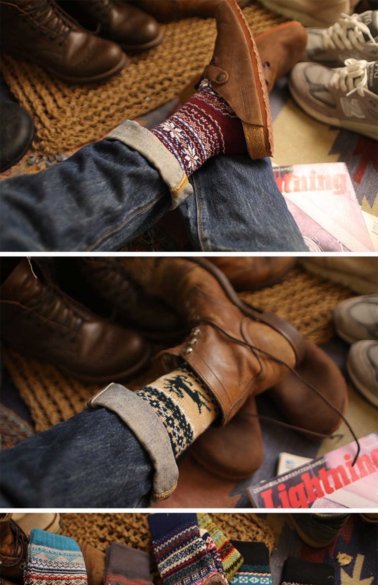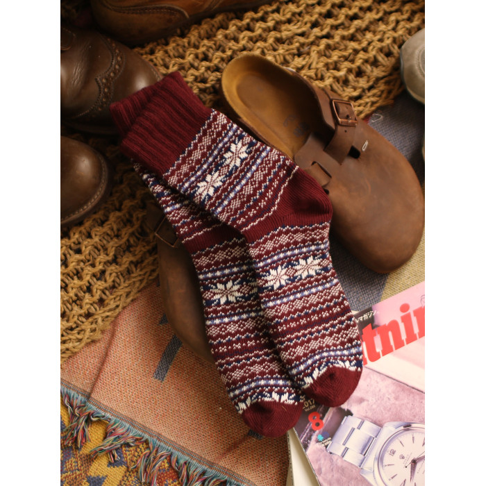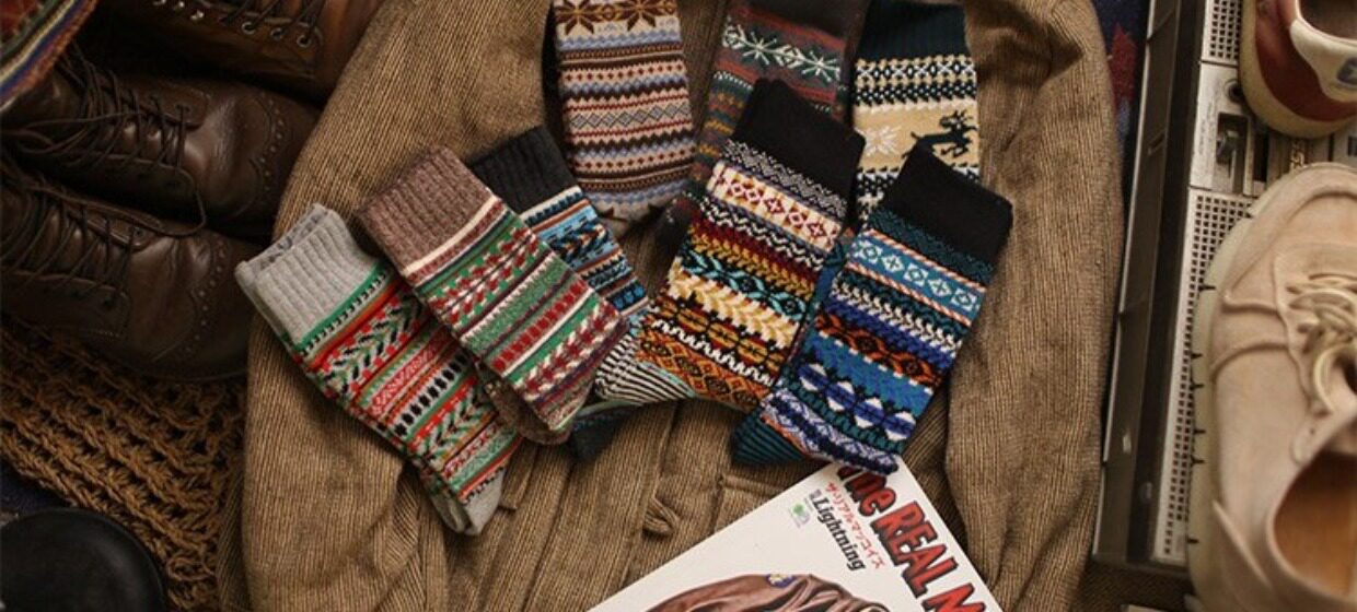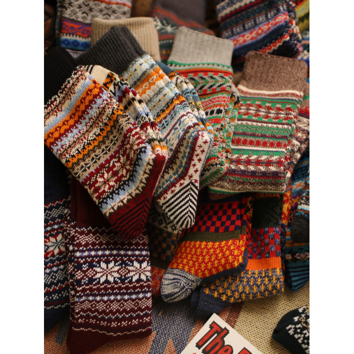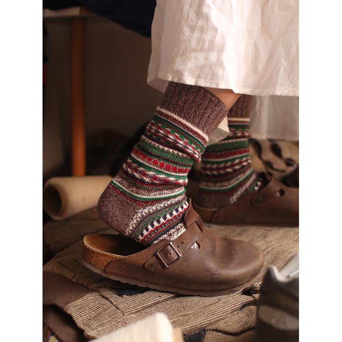 美式復古粗線哢嘰男工裝中筒棉襪 加厚日系粗針民族風保暖長襪子
