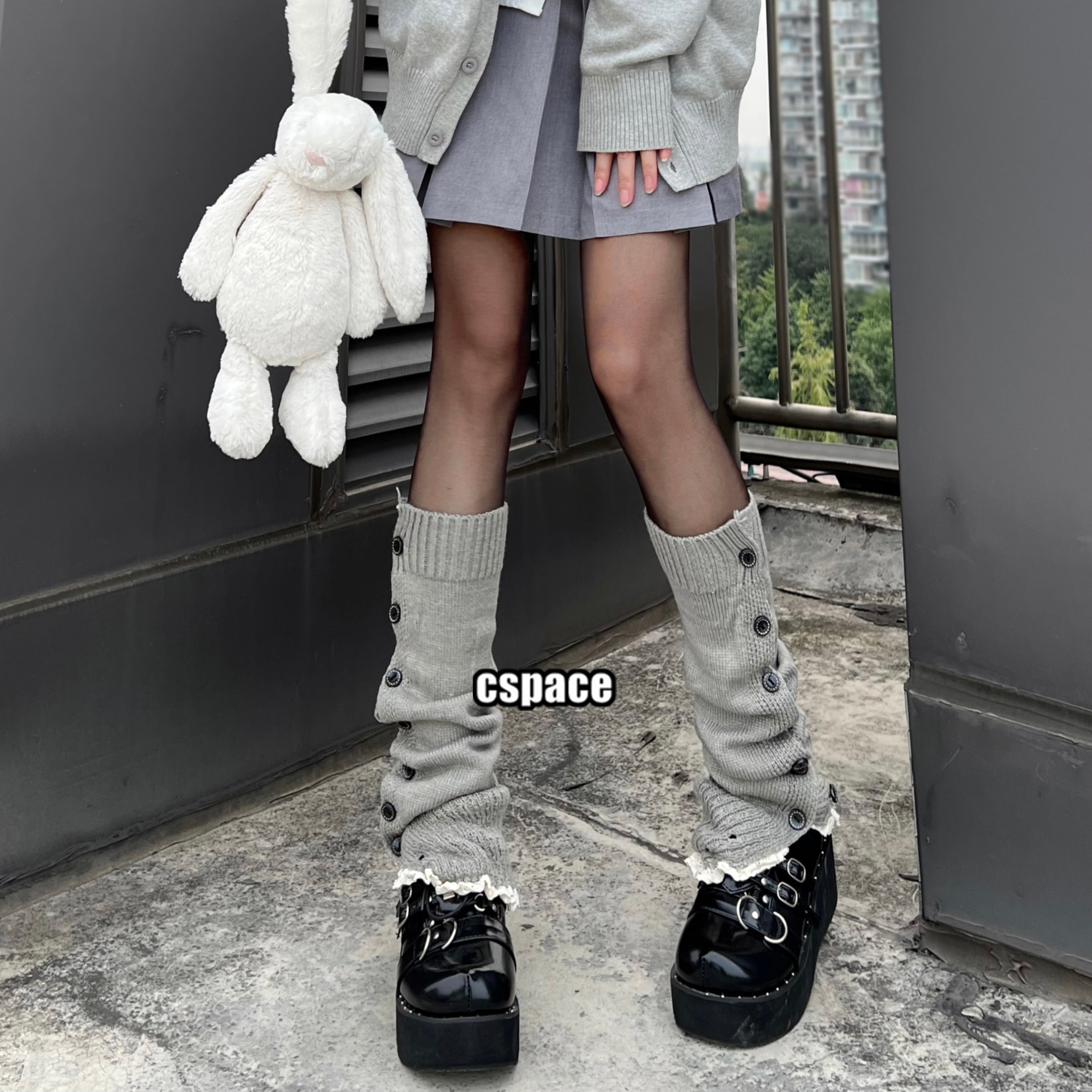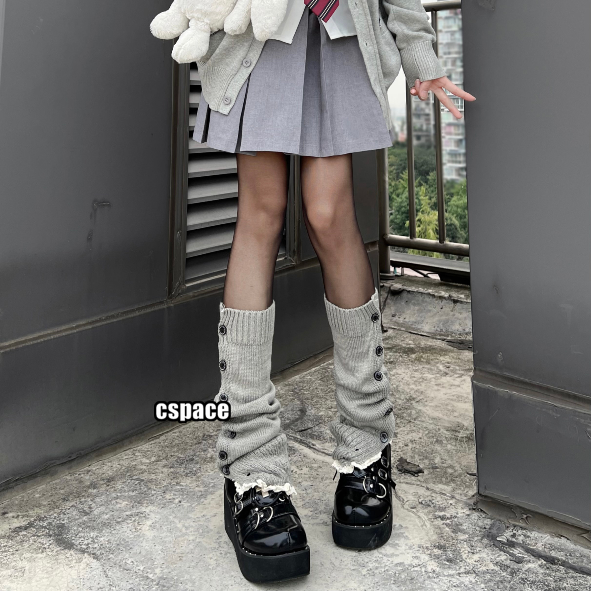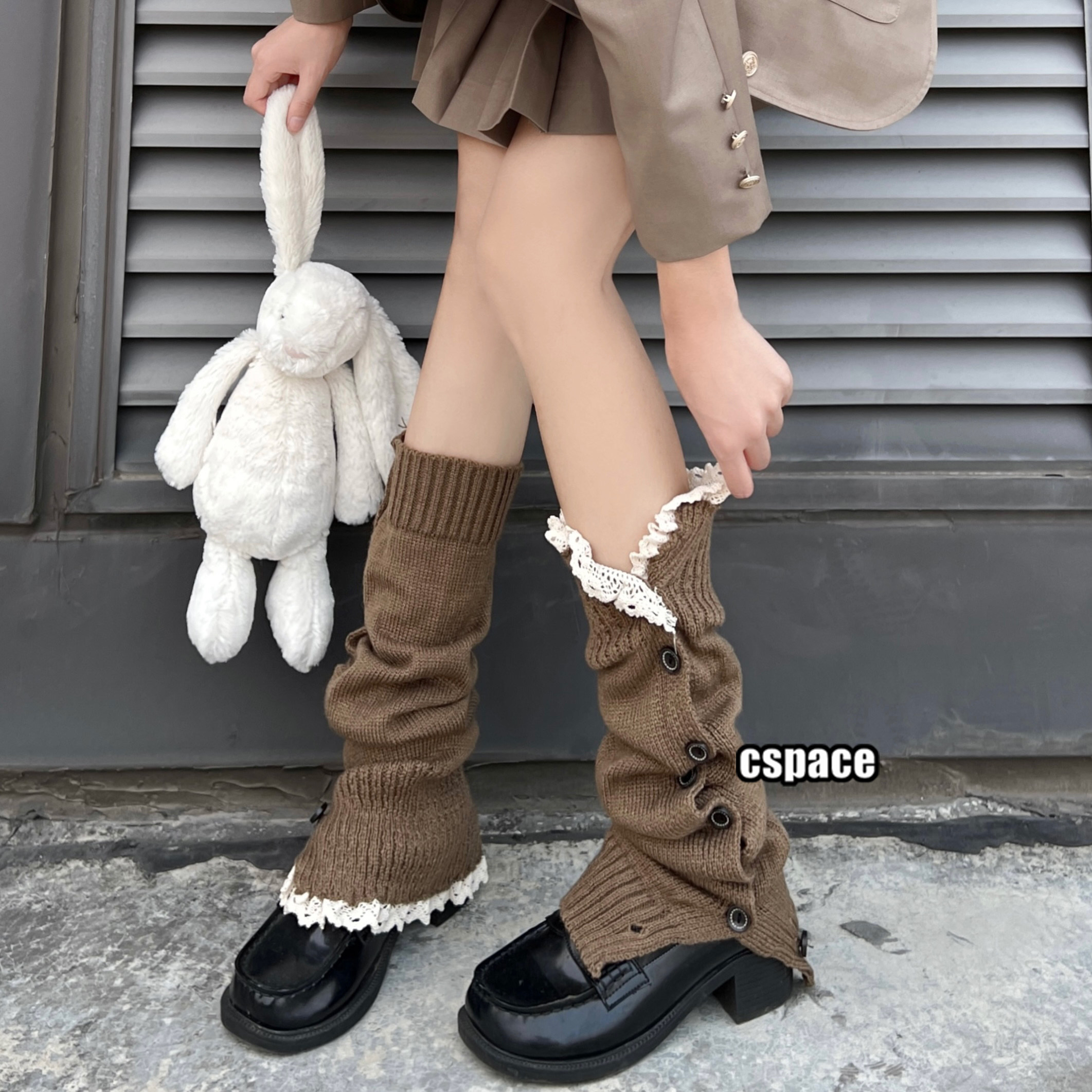 美拉德堆堆襪套辣妹y2k腿襪jk小腿襪子女純色百搭紐釦棕色腿套