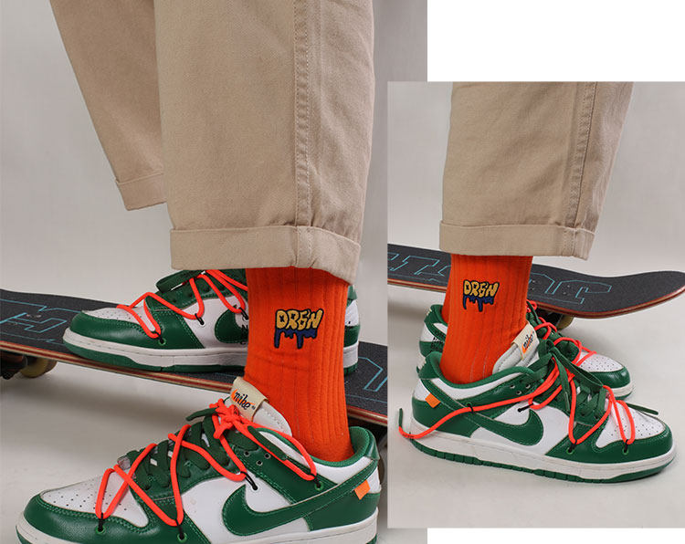 三雙裝潮牌街頭citywalk長襪子男女日系工裝塗鴉刺綉棉質潮襪男士
