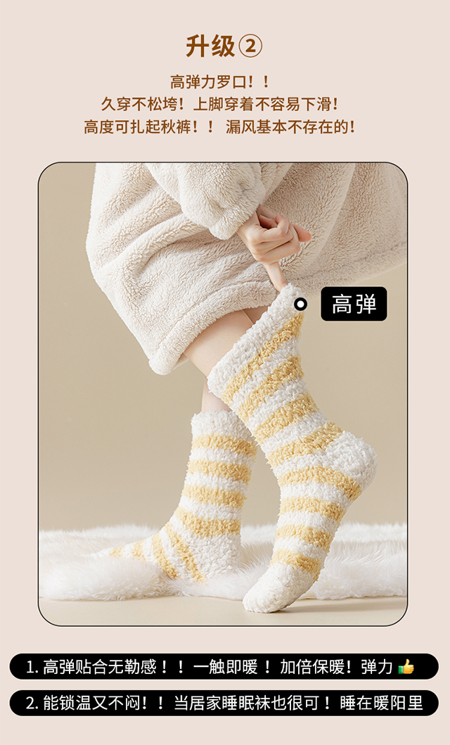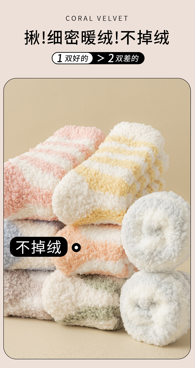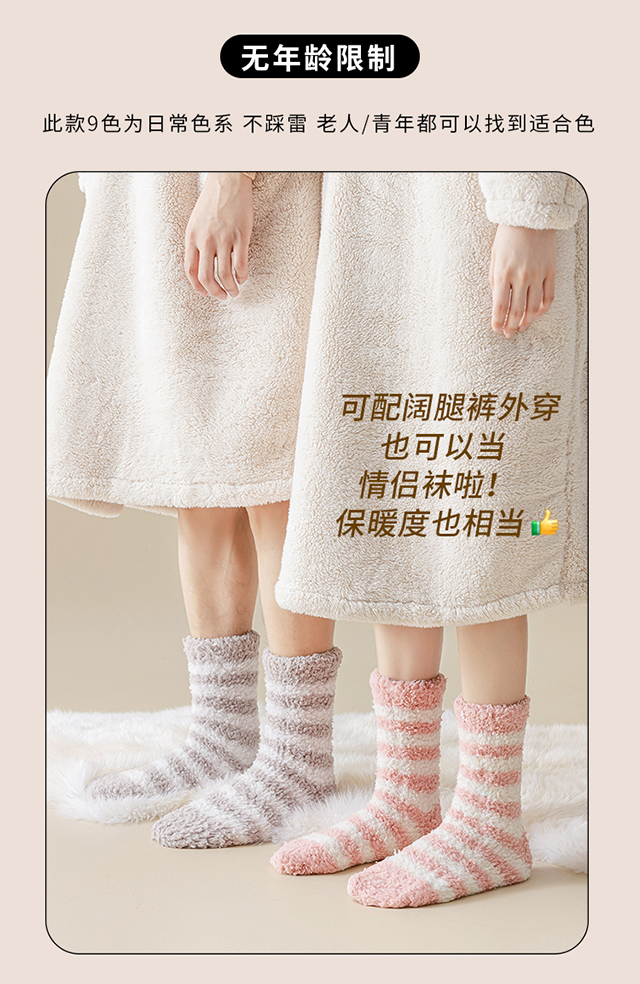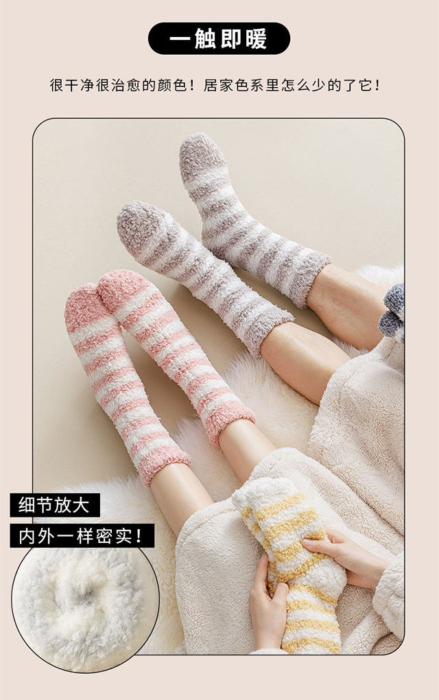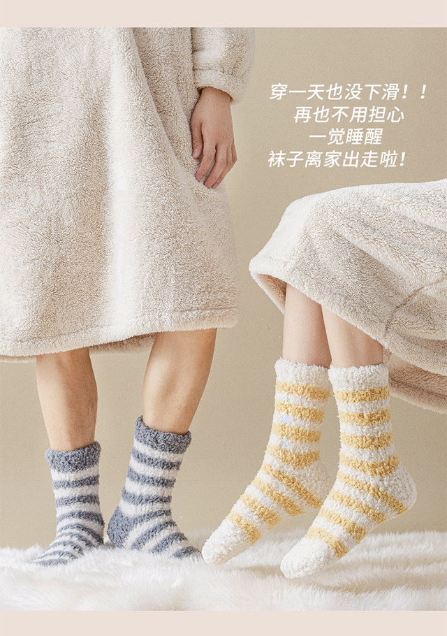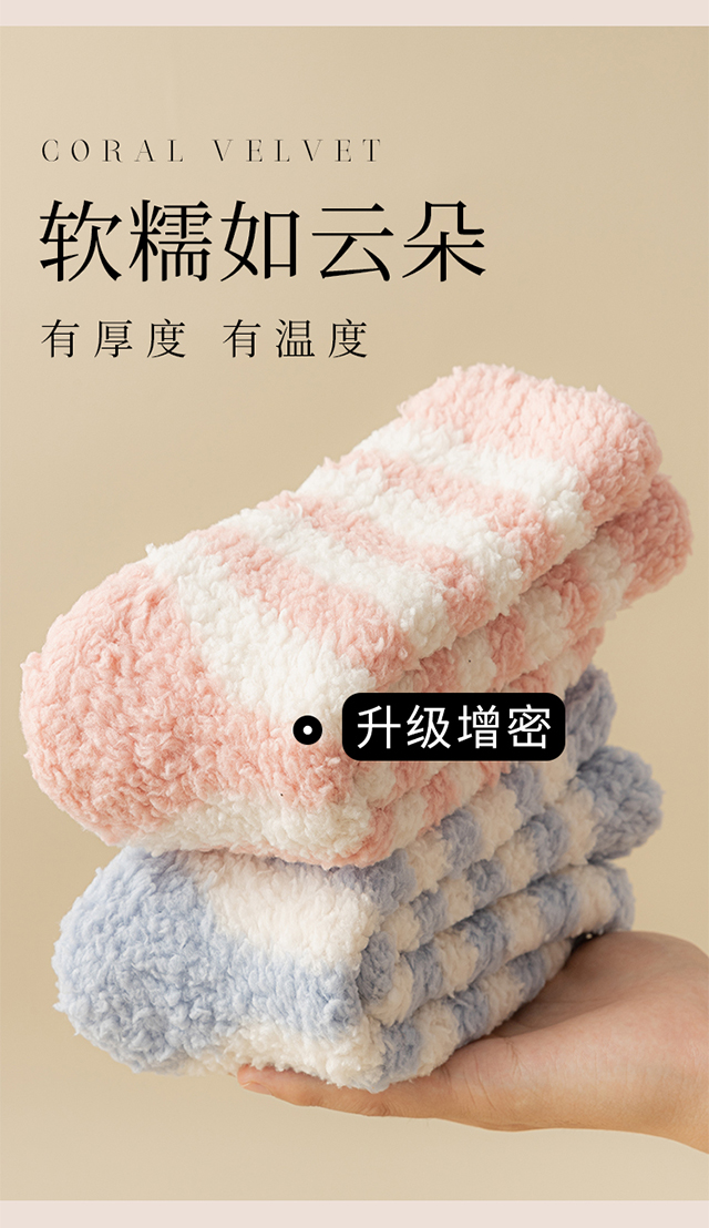 珊瑚絨襪子女冬季加厚保暖中筒襪加絨睡眠居家毛絨地板襪冬天長襪
