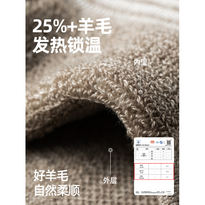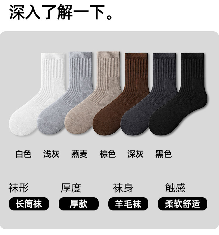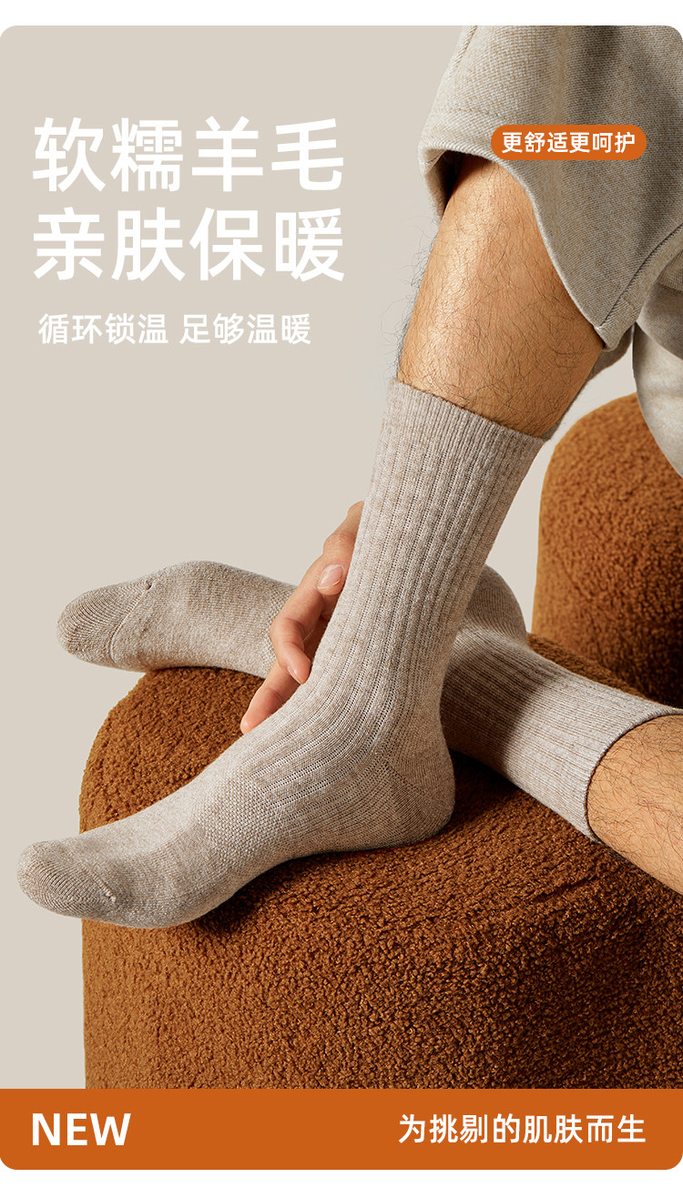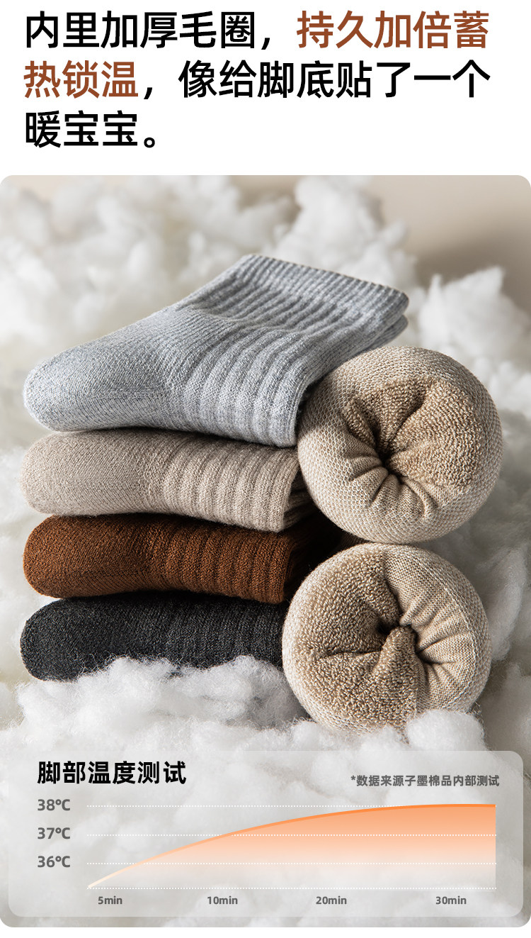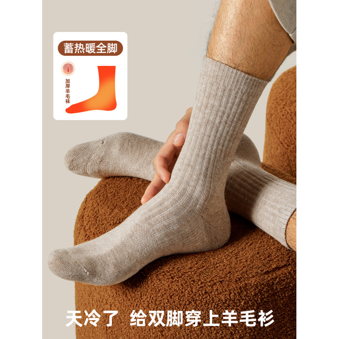 子墨羊毛襪男士加厚加絨冬季7A抗菌防臭羊絨保暖毛圈長筒襪子男生