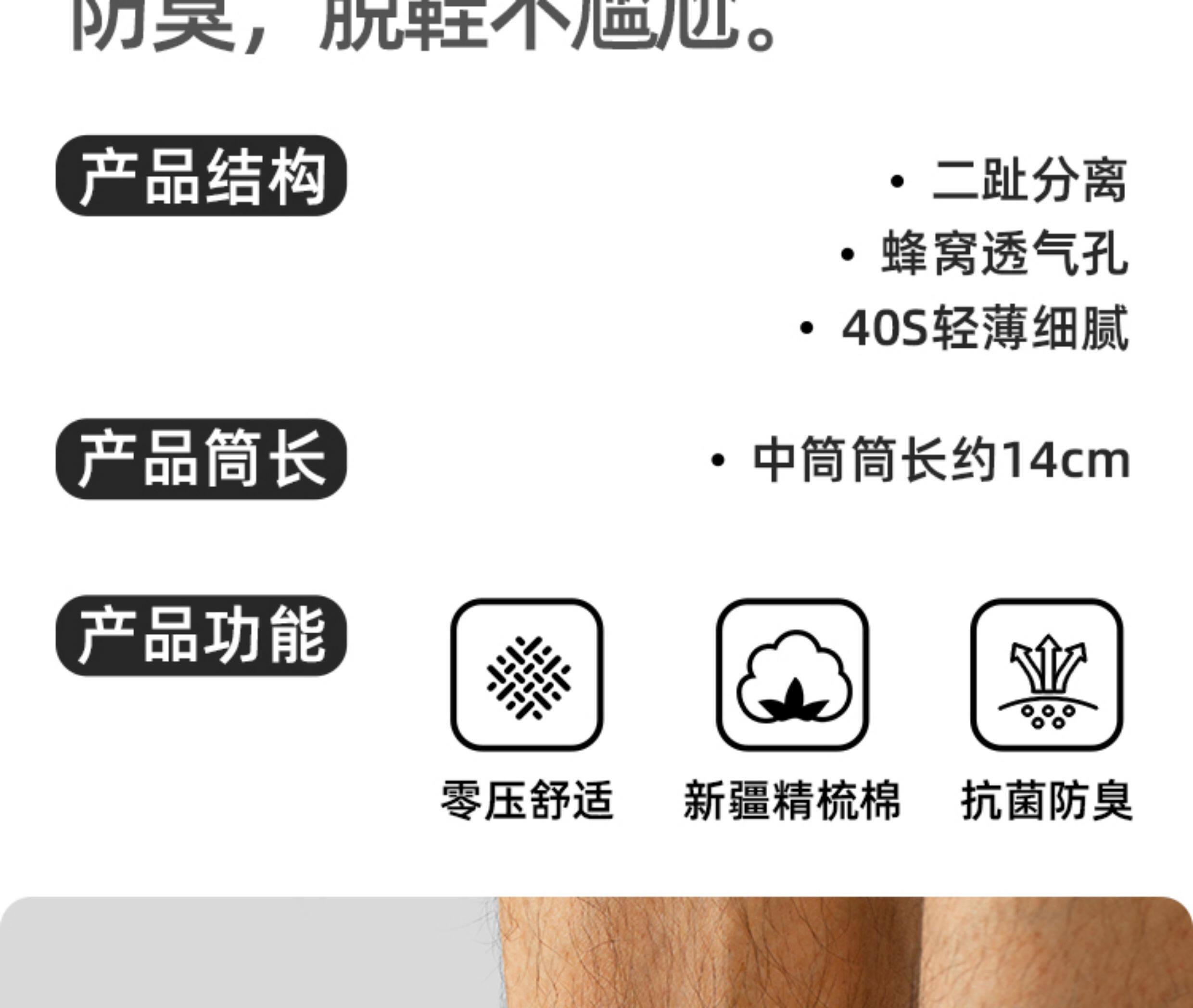 子墨二趾襪男士中筒防臭7A抗菌吸汗秋冬厚款分趾人字拖襪二指襪子