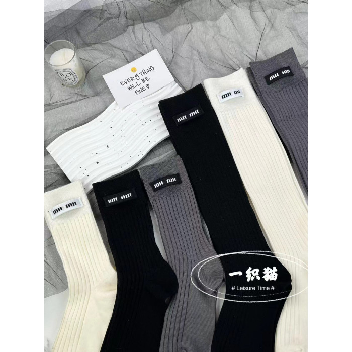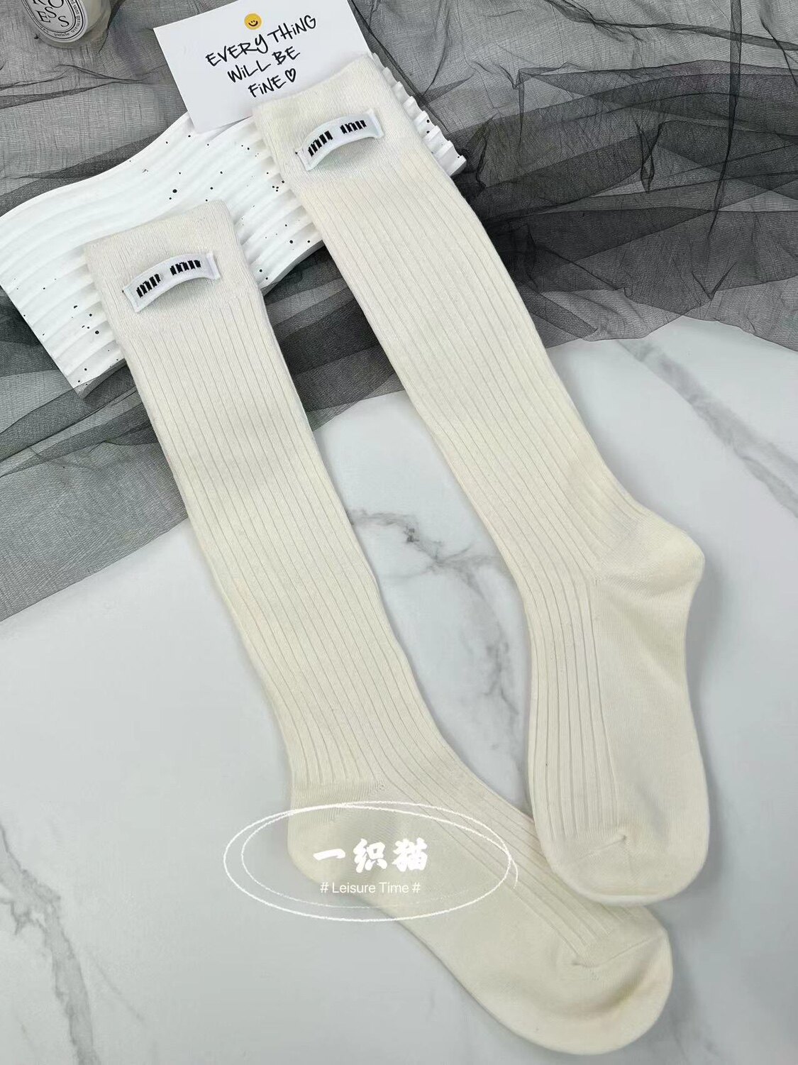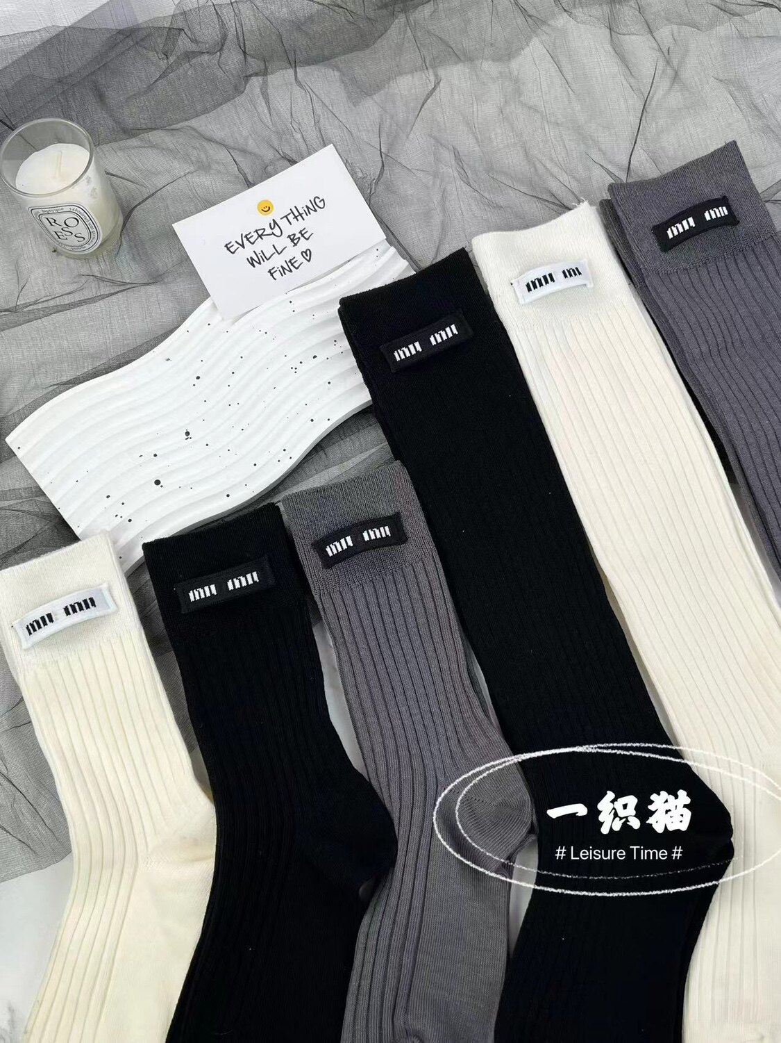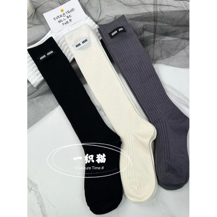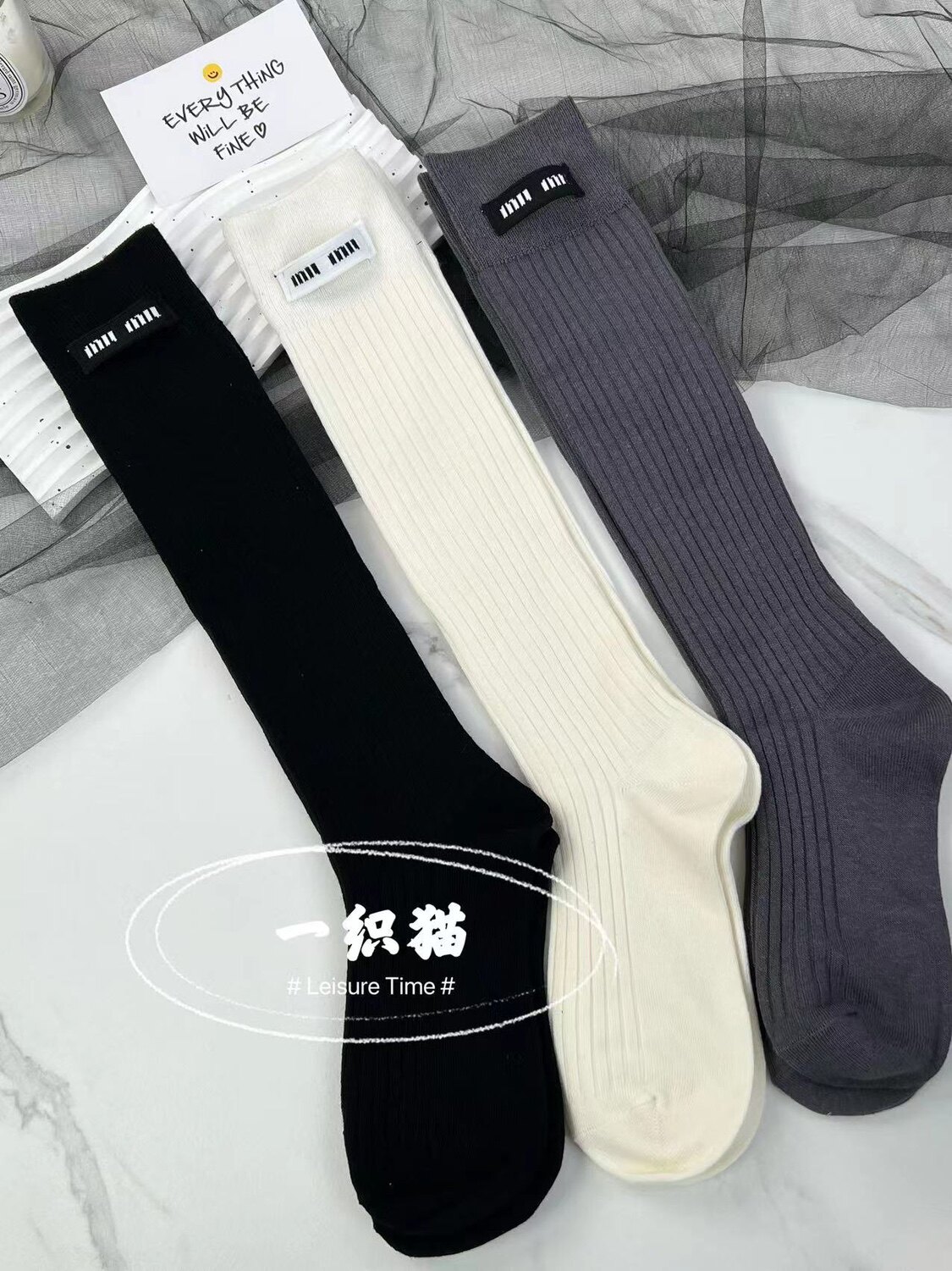 新款歐貨襪子女m布標時尚簡約中筒襪網紅款穿搭小腿襪個性及膝襪