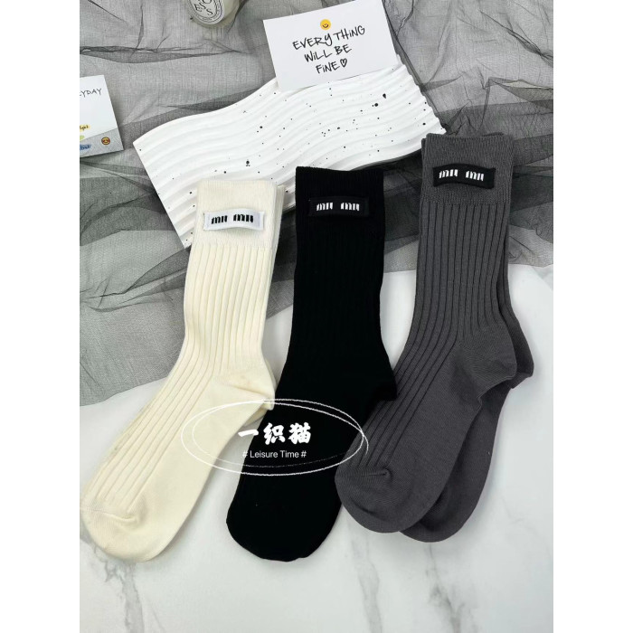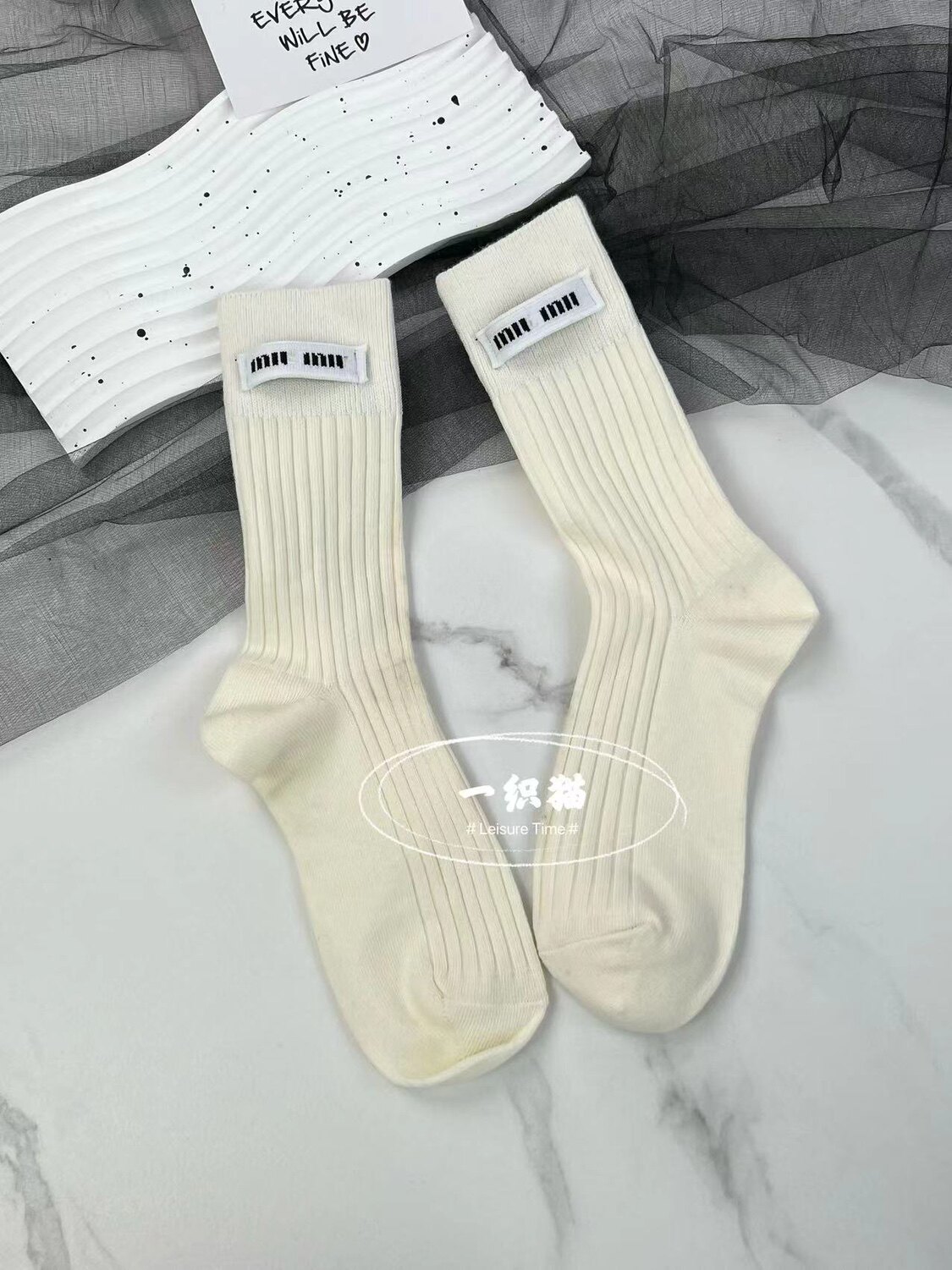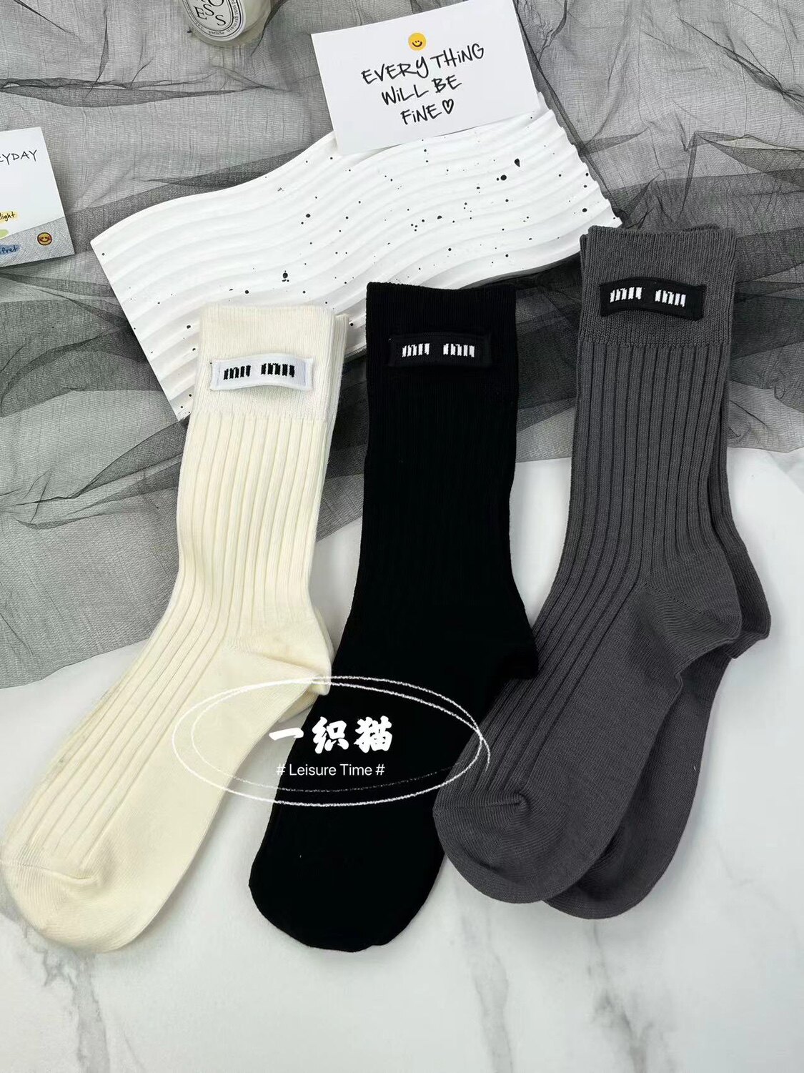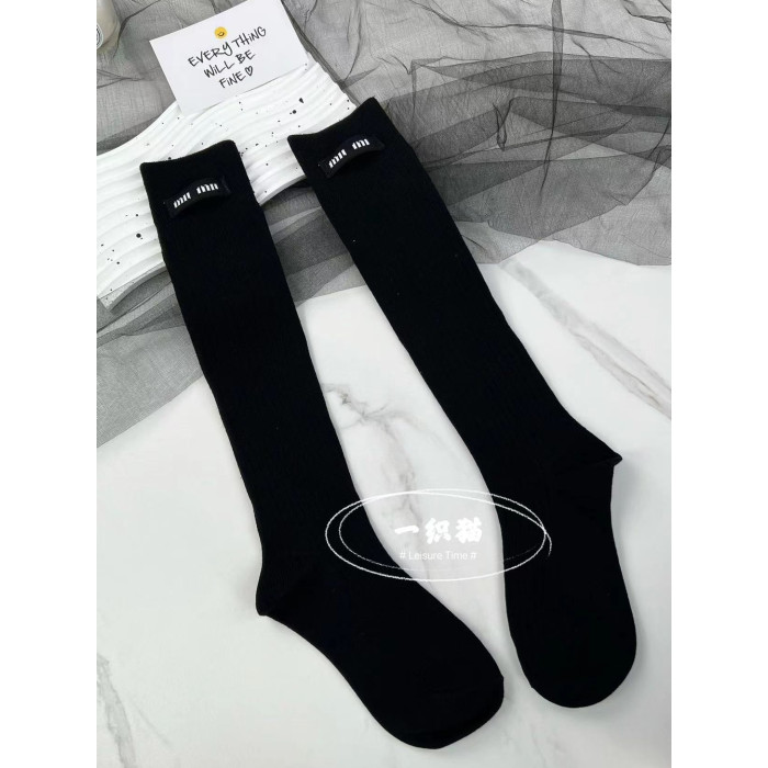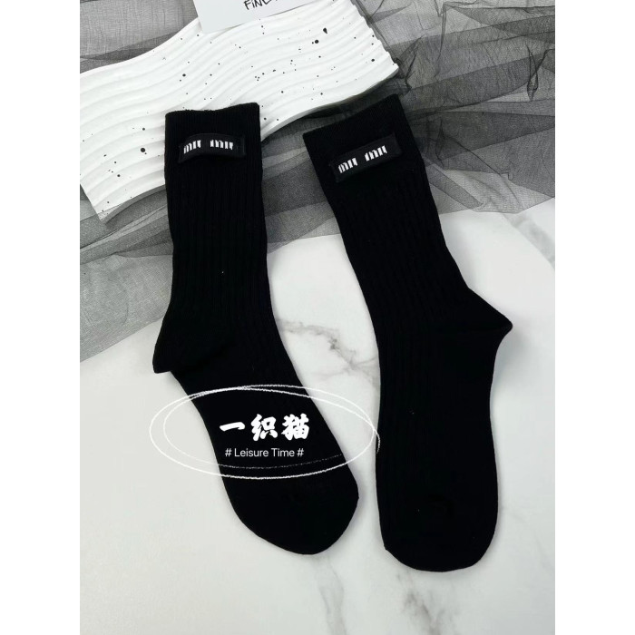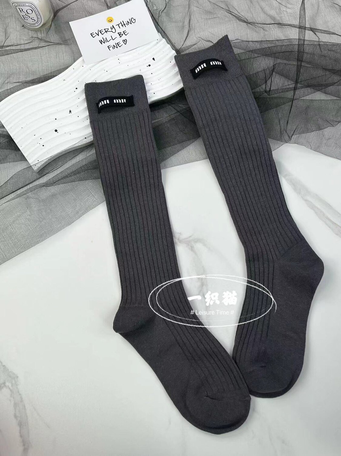 新款歐貨襪子女m布標時尚簡約中筒襪網紅款穿搭小腿襪個性及膝襪