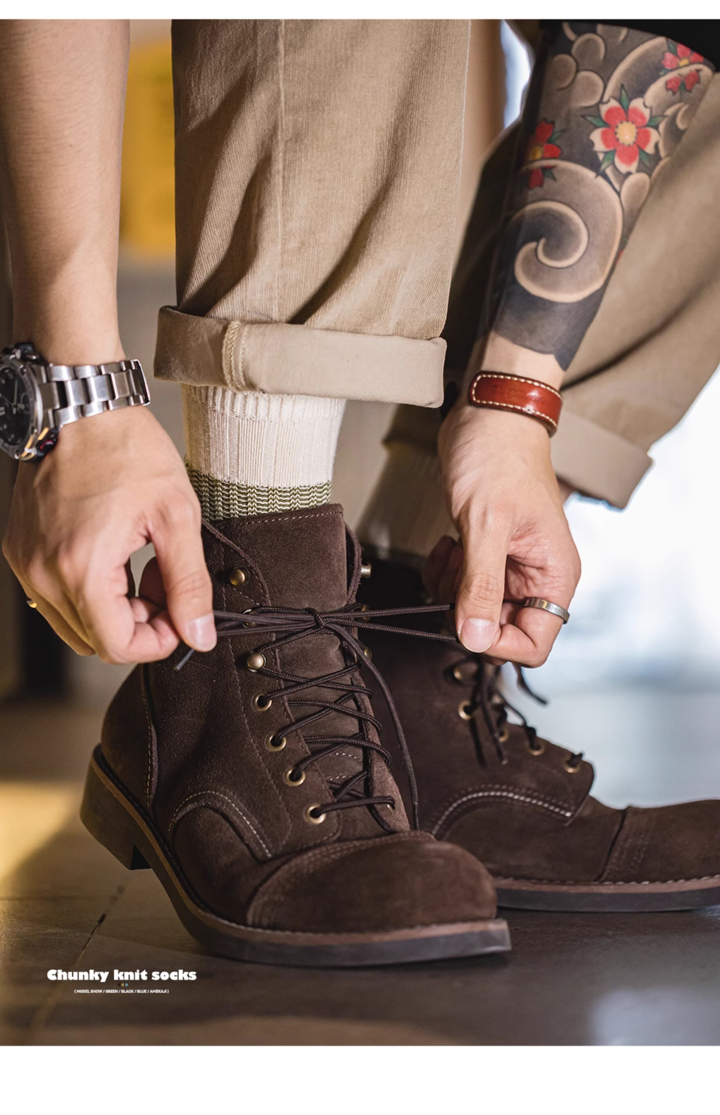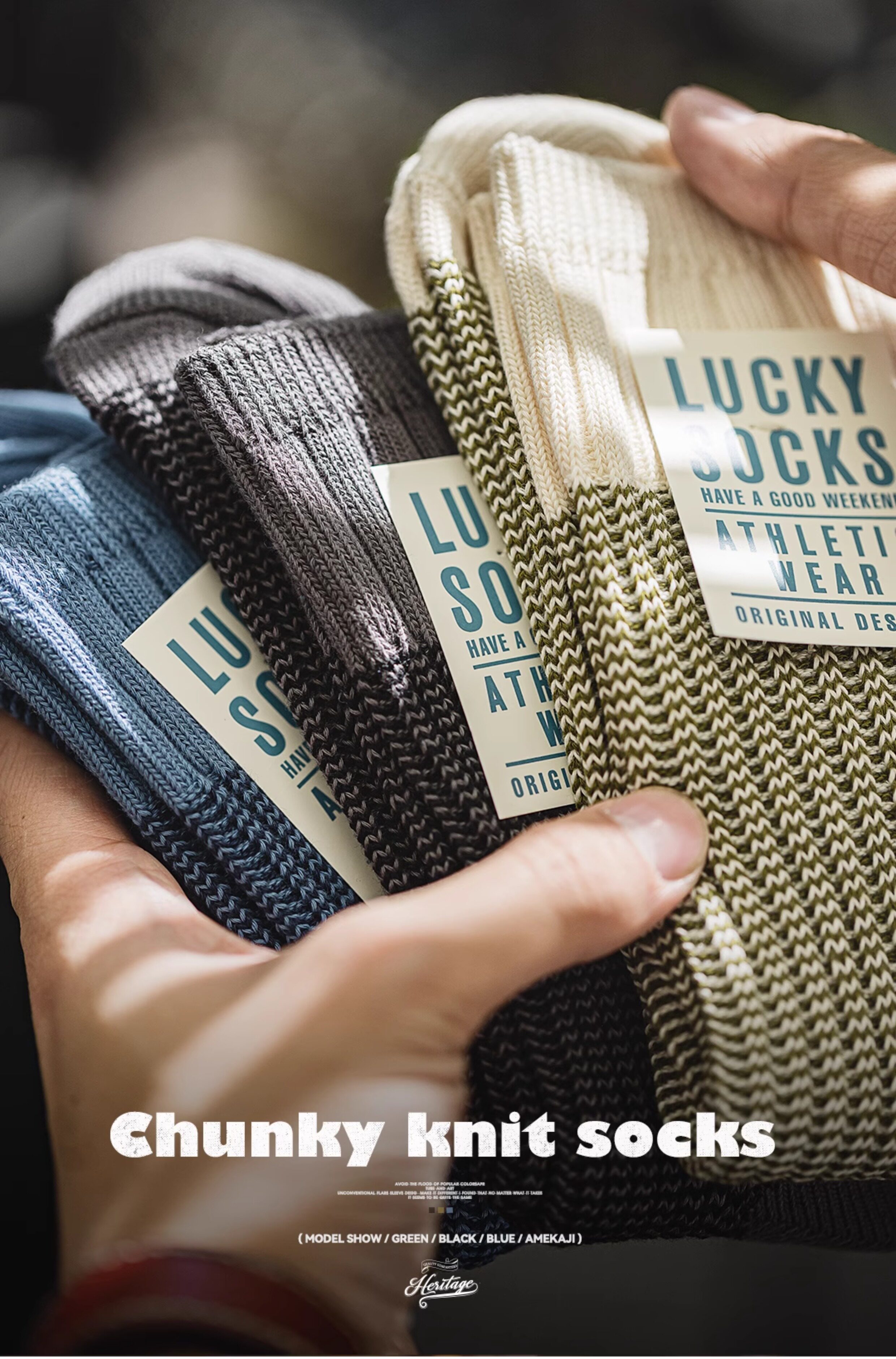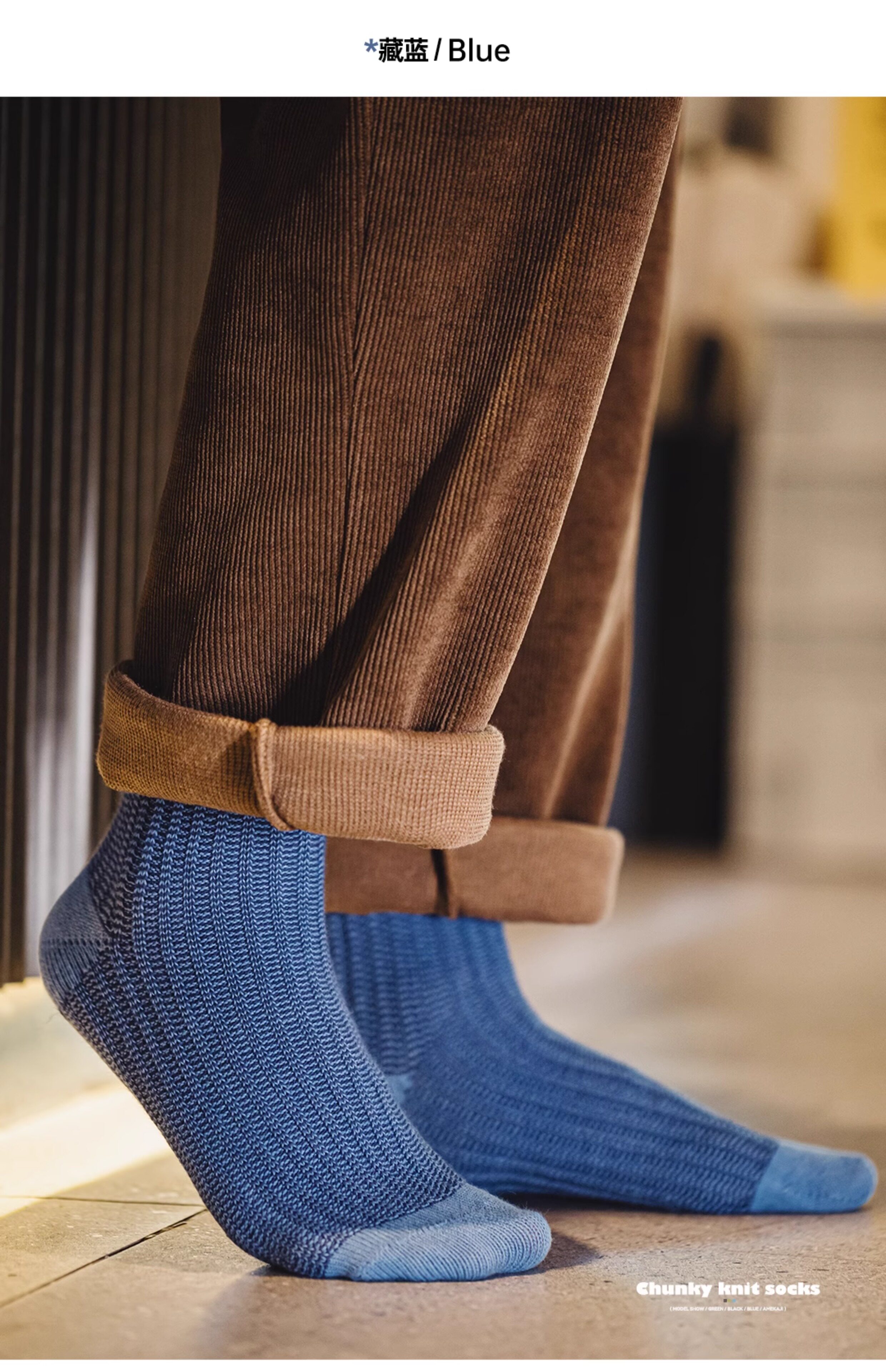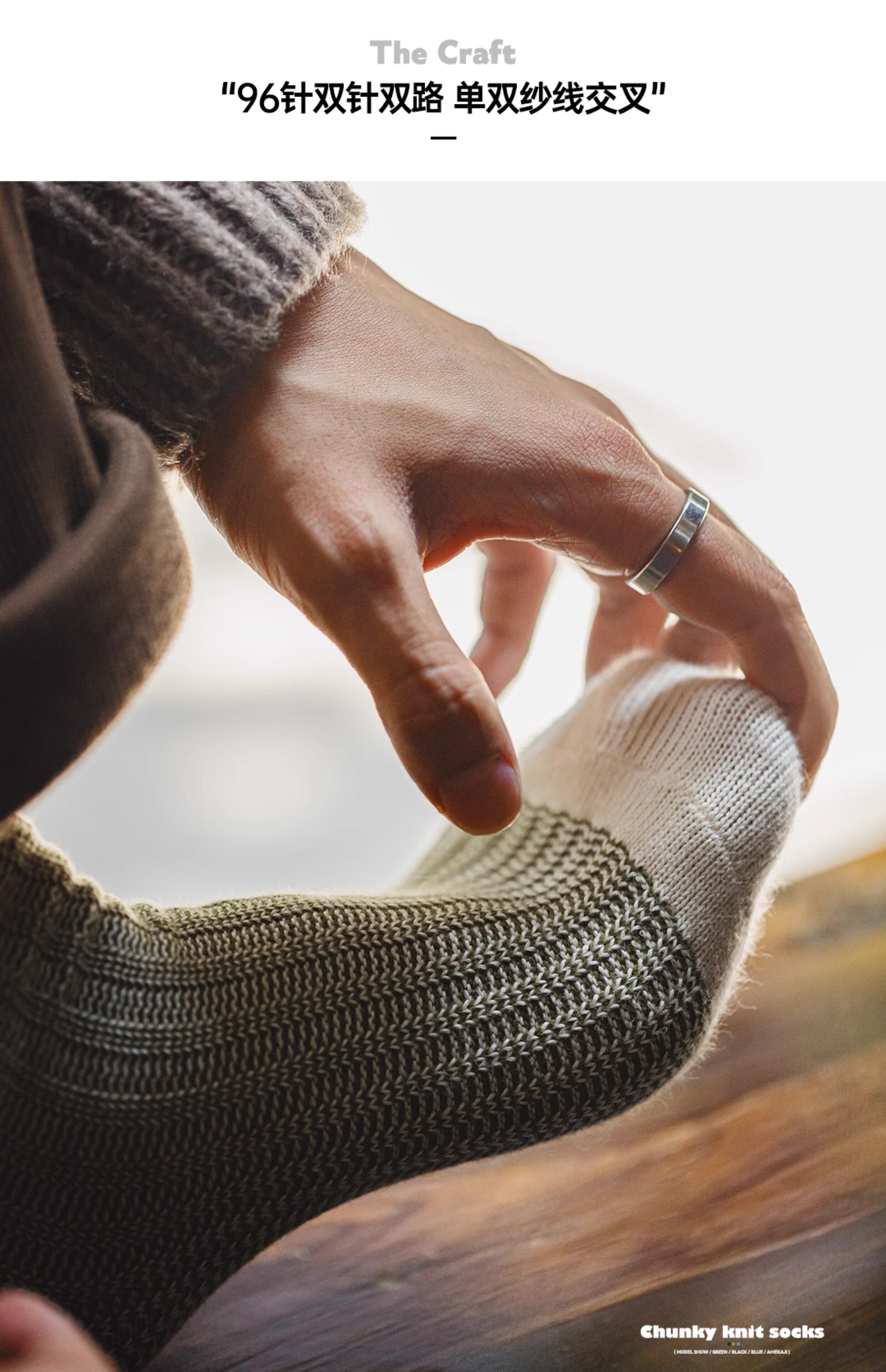 馬登工裝美式復古撞色針織中筒襪透氣粗線拼接小衆雙針長襪子男秋