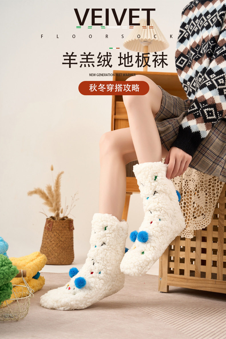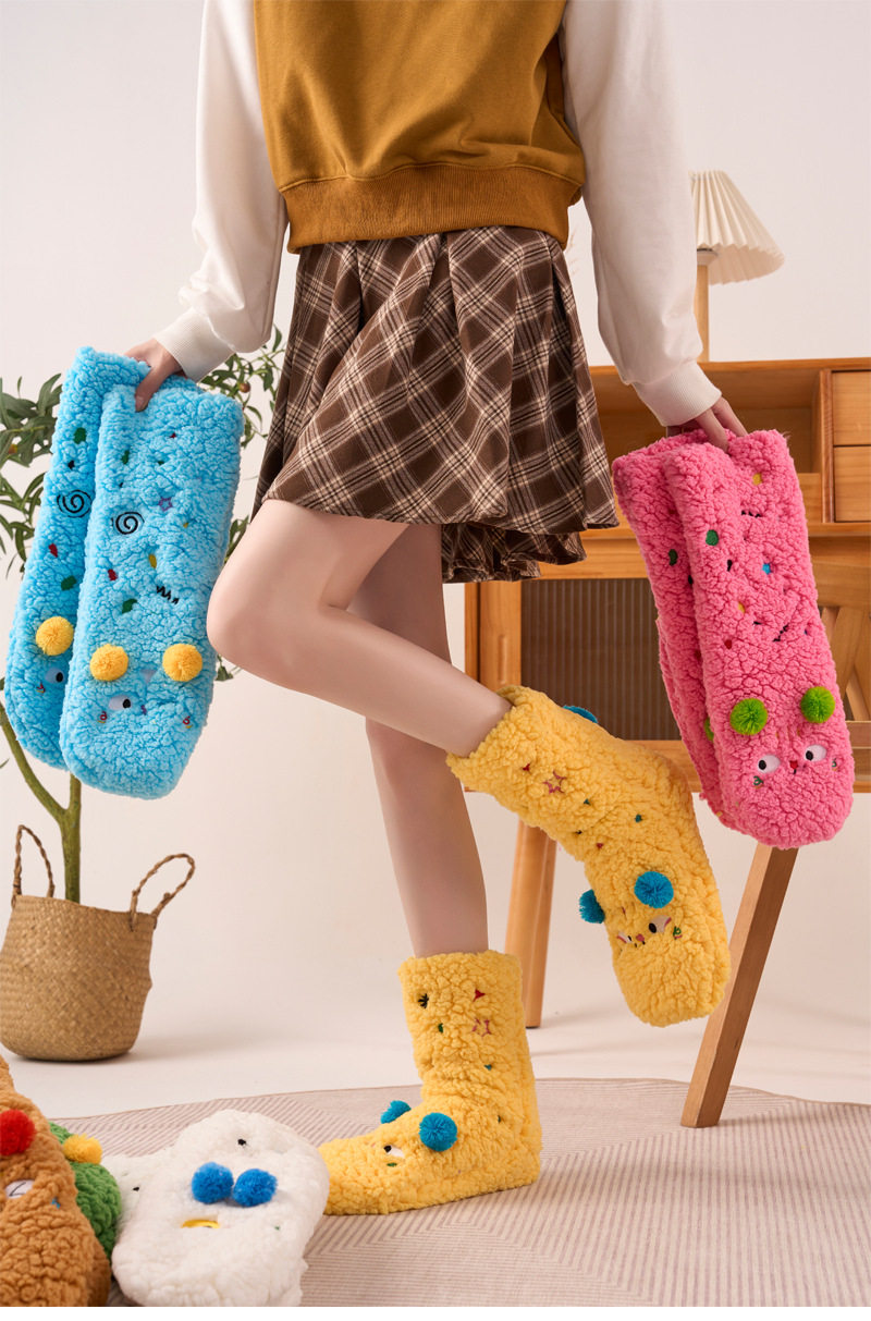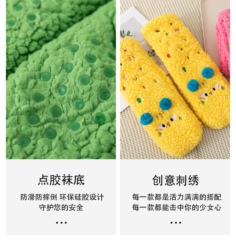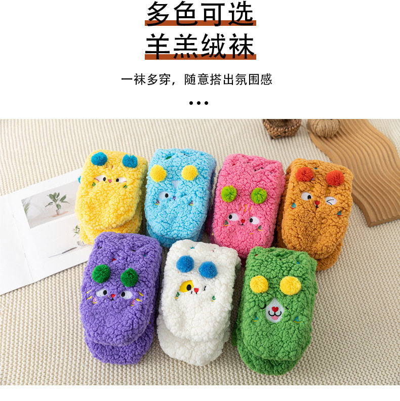 多巴胺羊羔絨地板襪加絨加厚醜萌中筒襪秋冬季不勒腳保暖睡眠襪