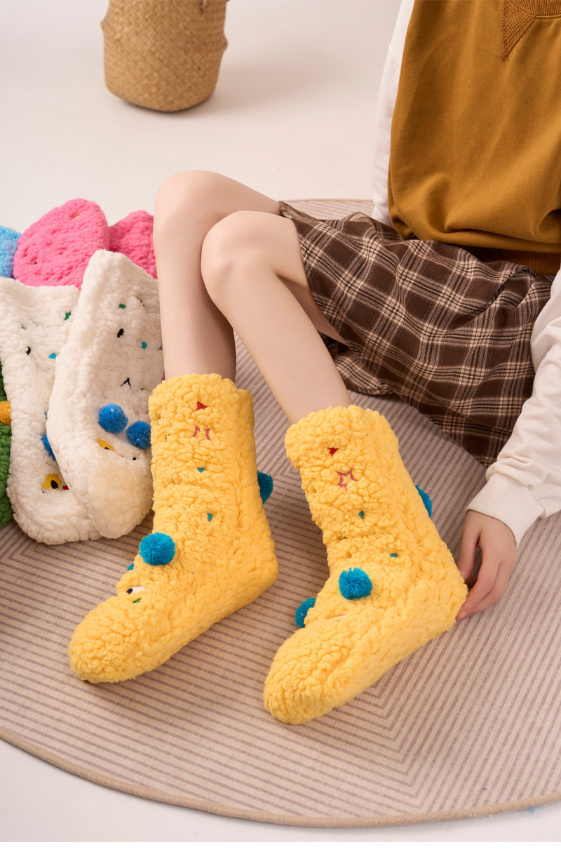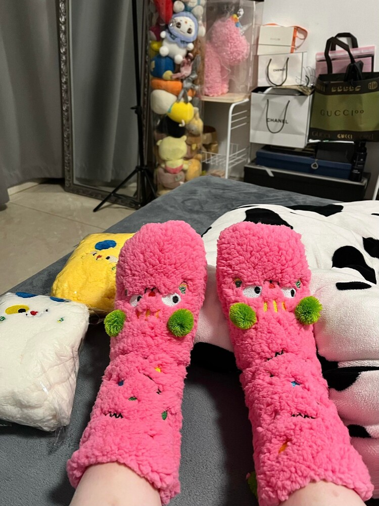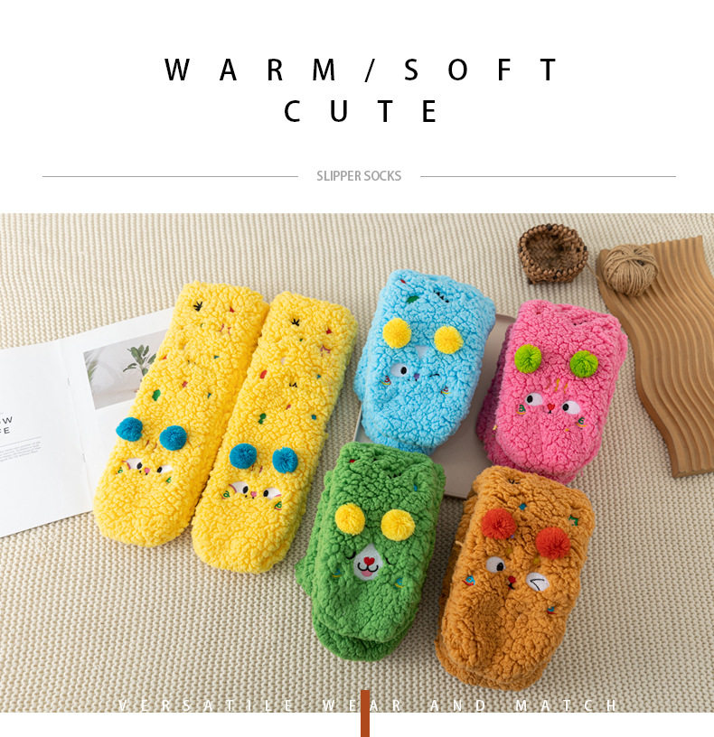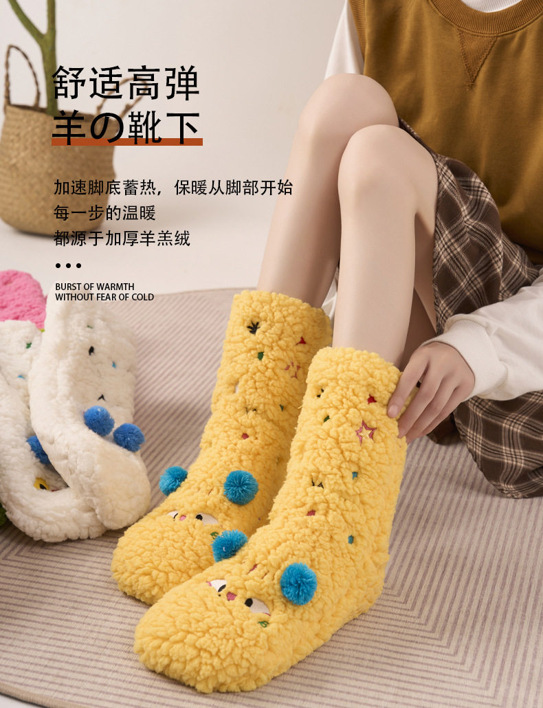 多巴胺羊羔絨地板襪加絨加厚醜萌中筒襪秋冬季不勒腳保暖睡眠襪