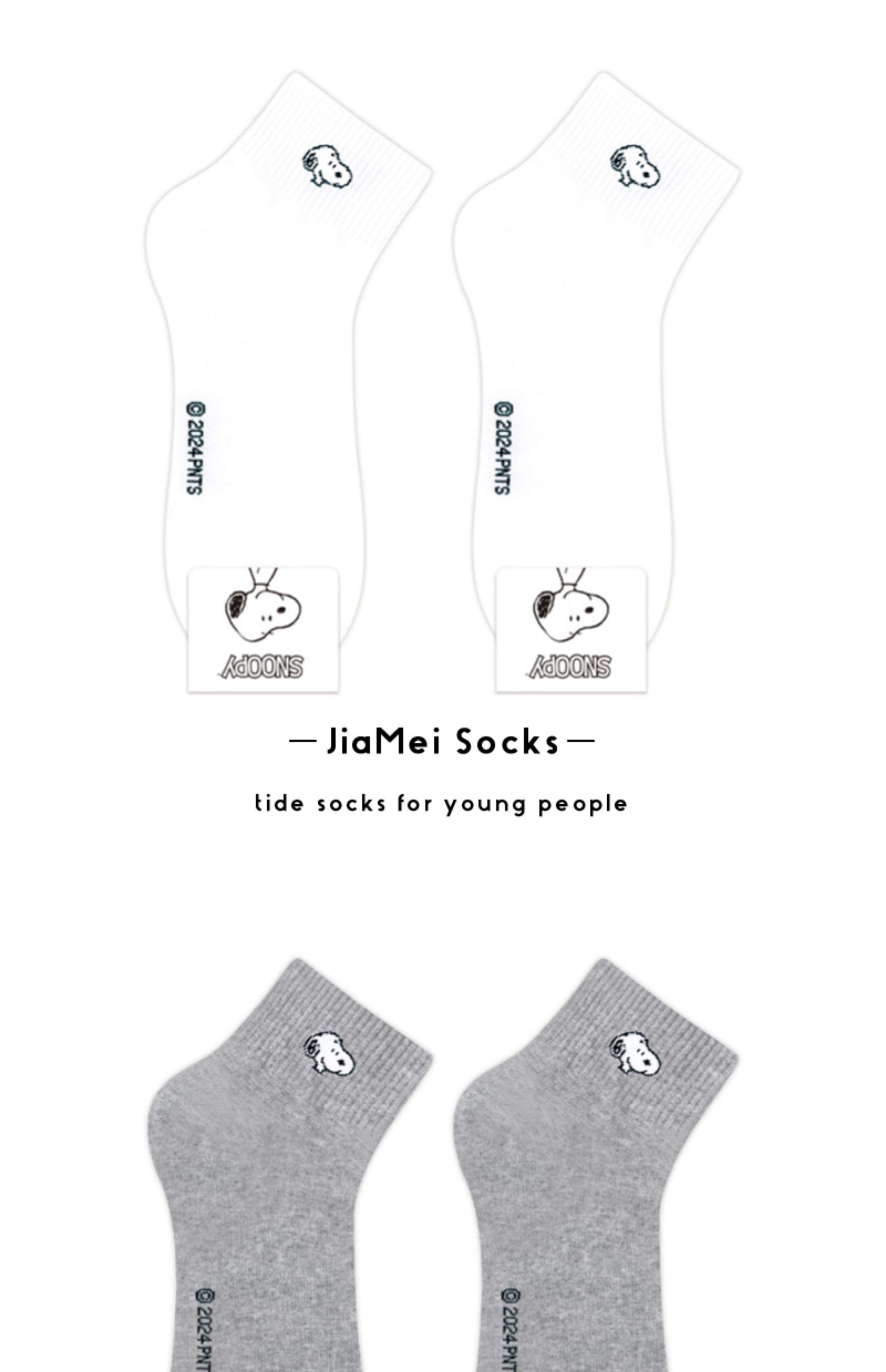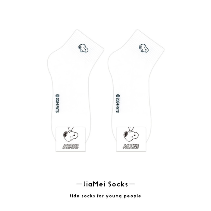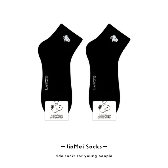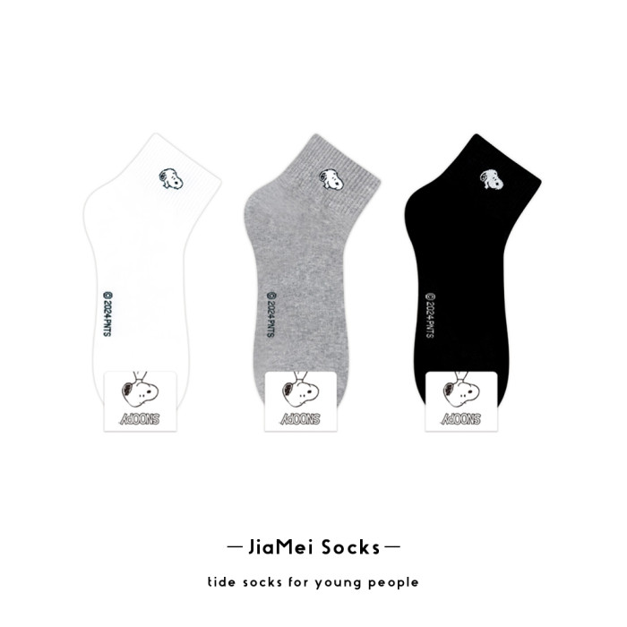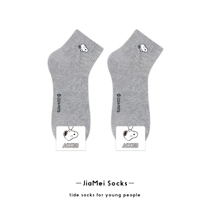 史努比男士短筒襪黑白灰純色吸汗可愛卡通小狗純棉韓國東大門襪子