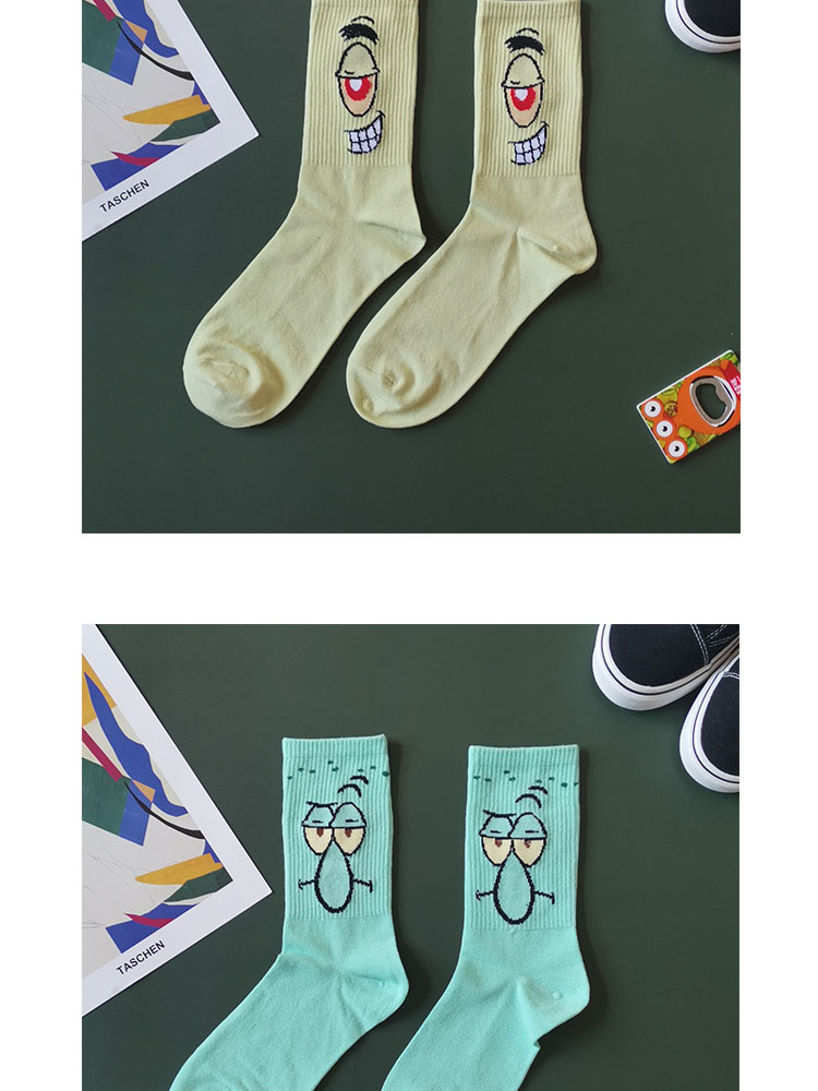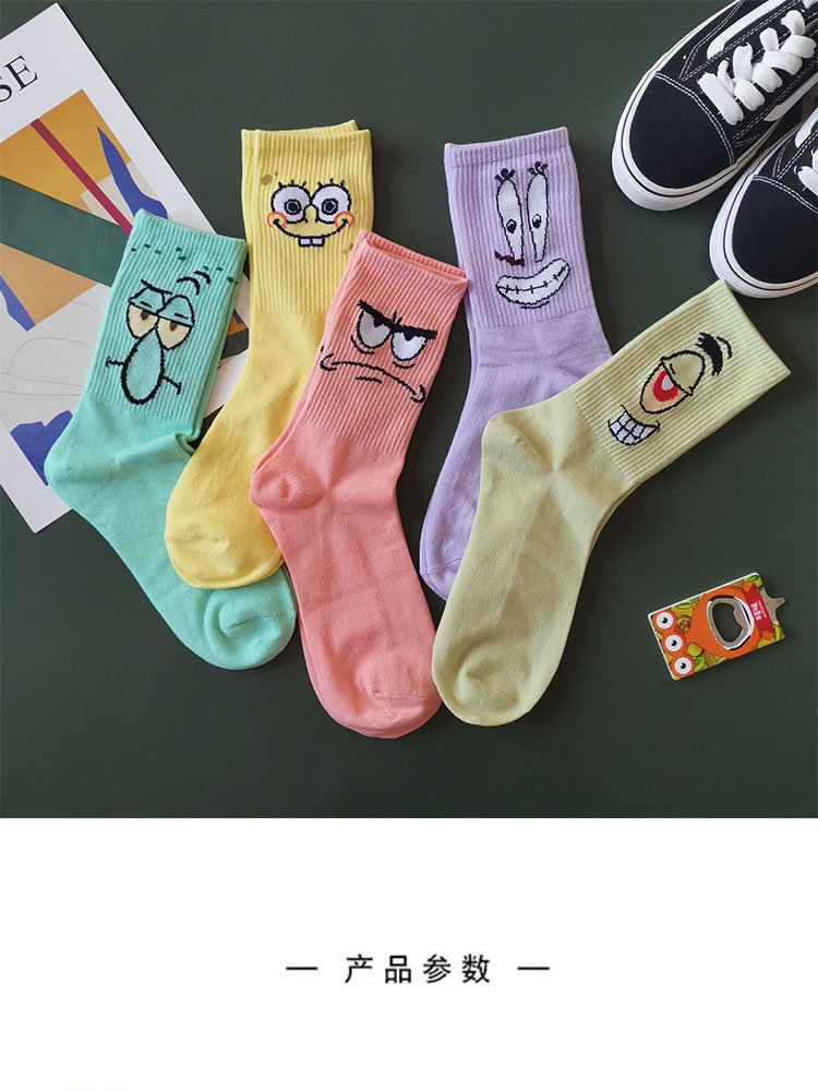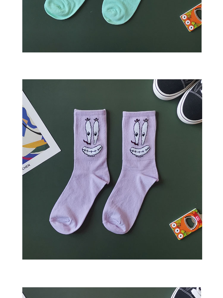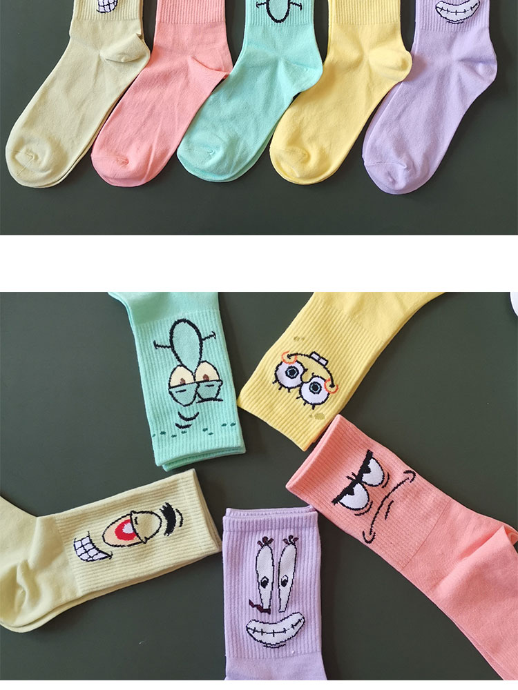 情侶長襪子女棉中高筒彩色卡通眼睛搞怪表情秋冬季運動ins潮男士w