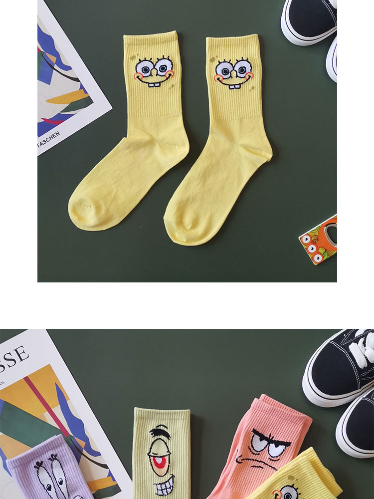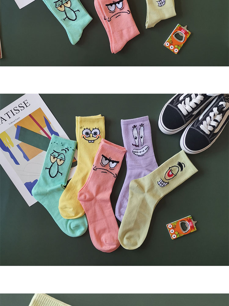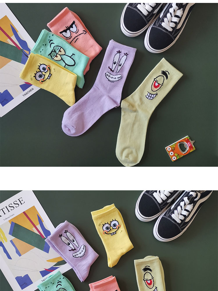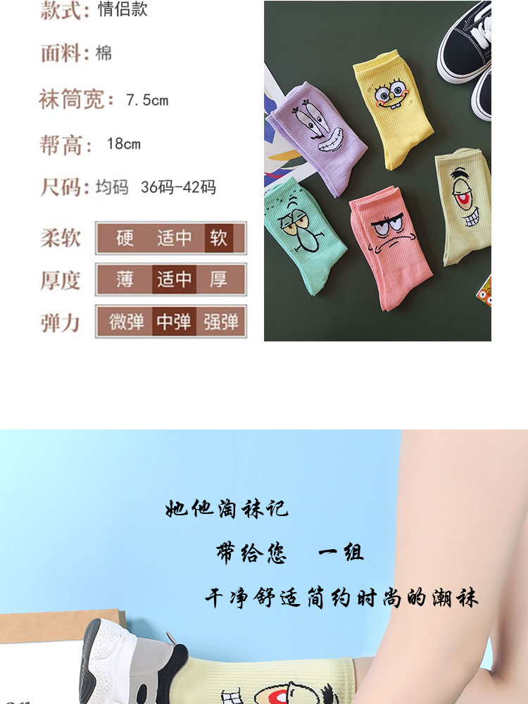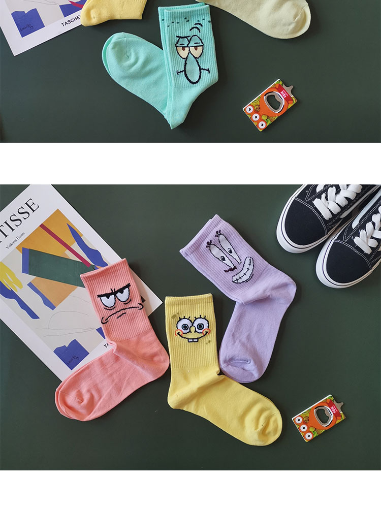 情侶長襪子女棉中高筒彩色卡通眼睛搞怪表情秋冬季運動ins潮男士w