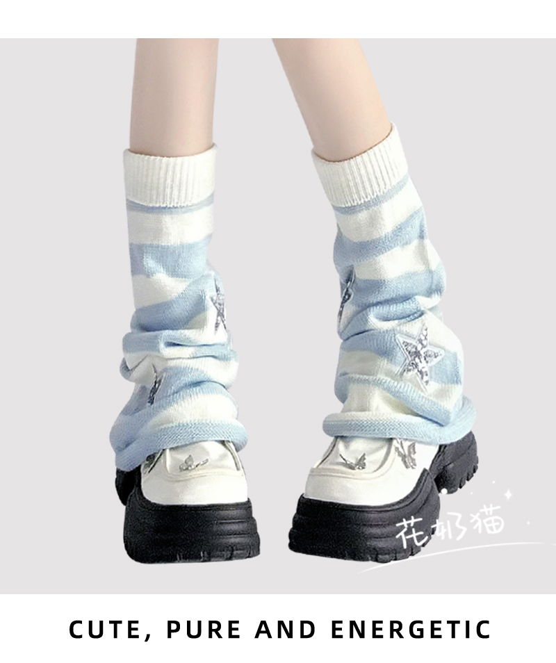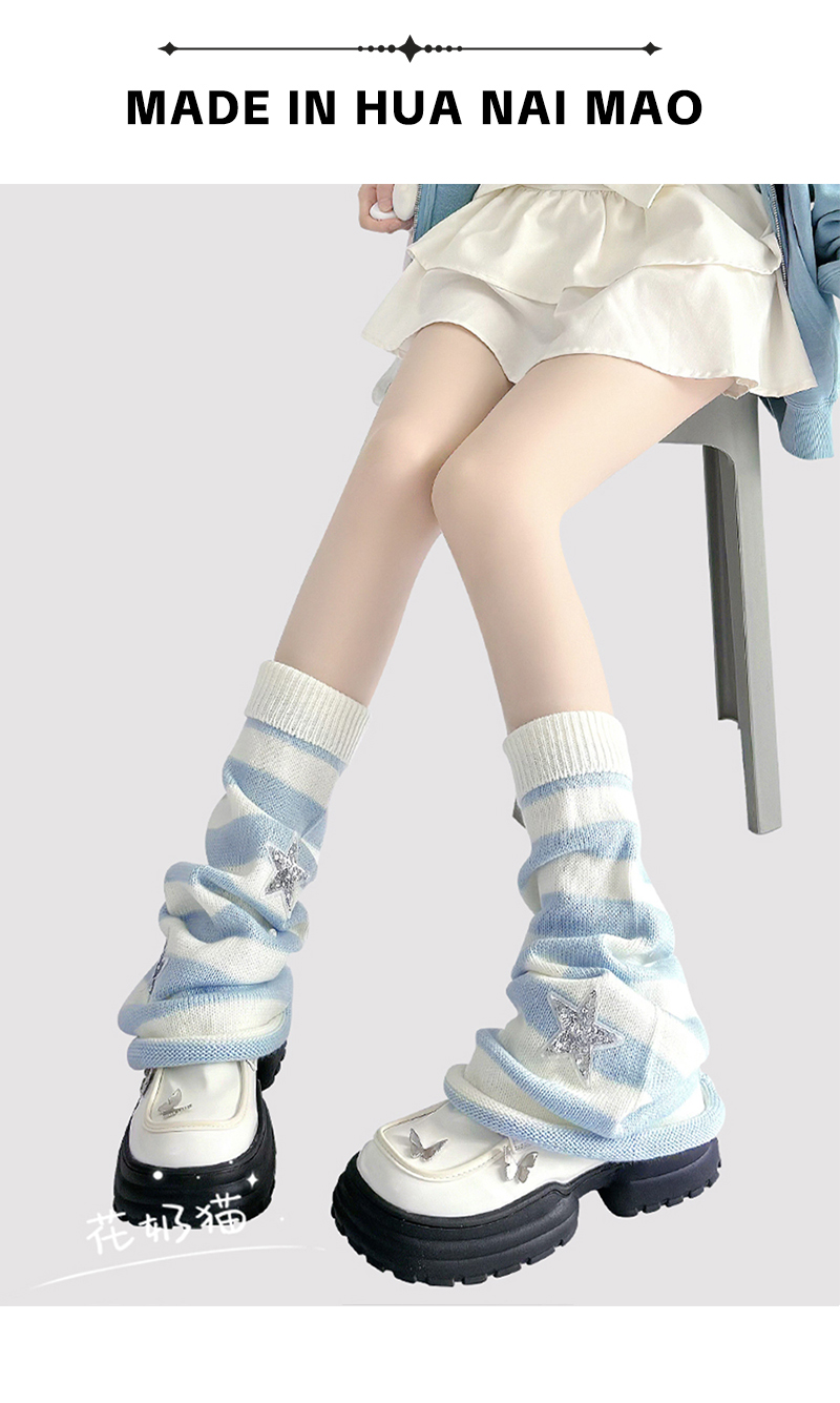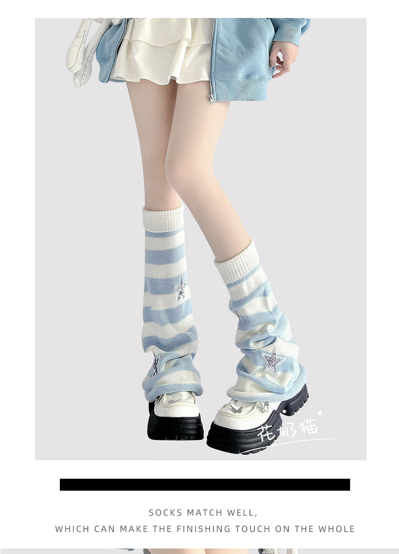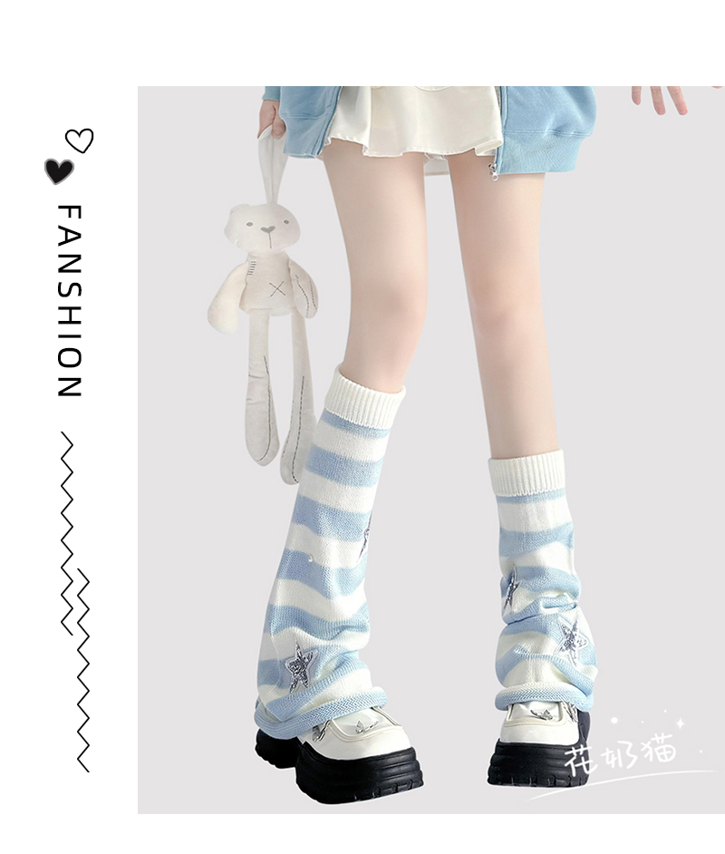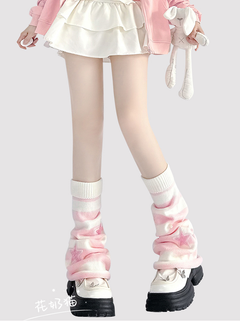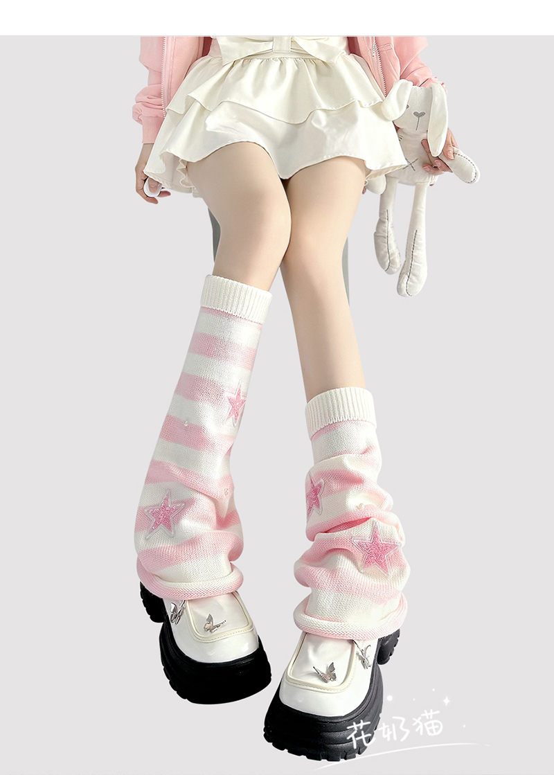 原創y2k亞文化粉色條紋腿套女星星珍珠毛線針織襪套lolita堆堆襪