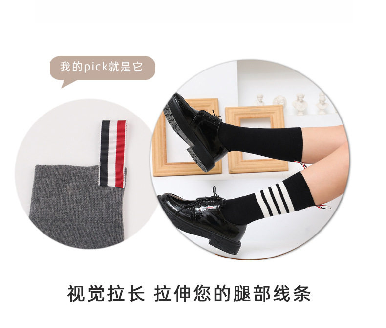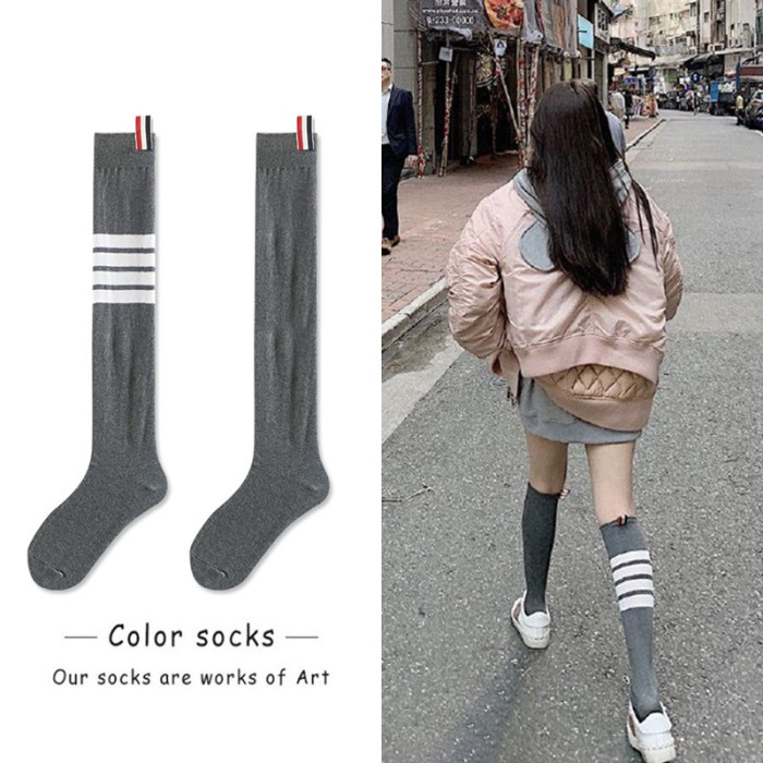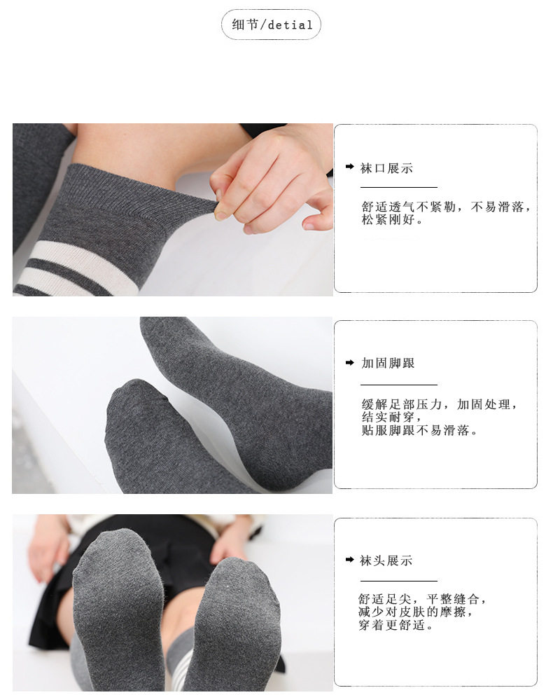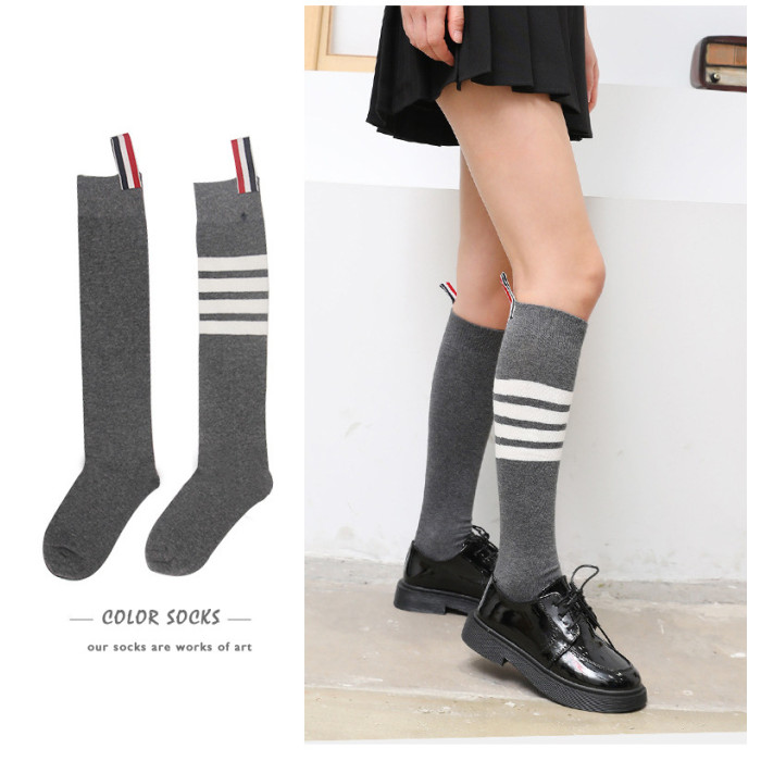 TB襪子四條杠灰色中筒襪純小腿襪短棉日系過膝襪長筒襪jk女壓力襪
