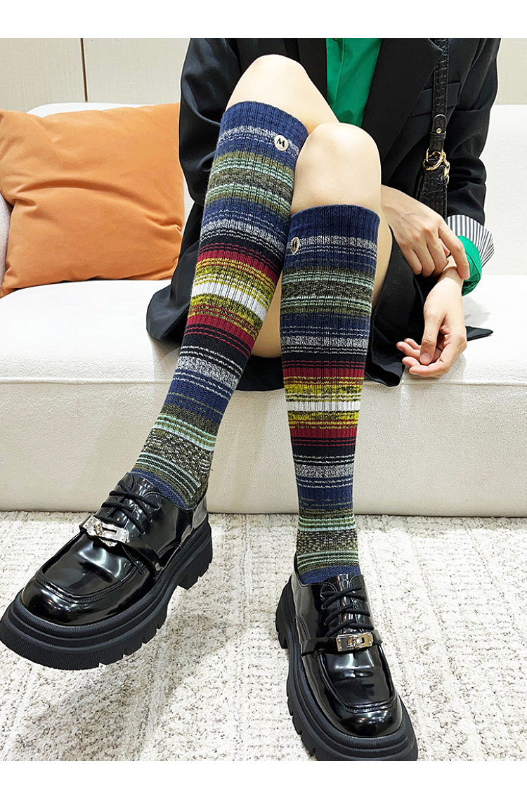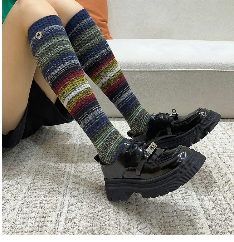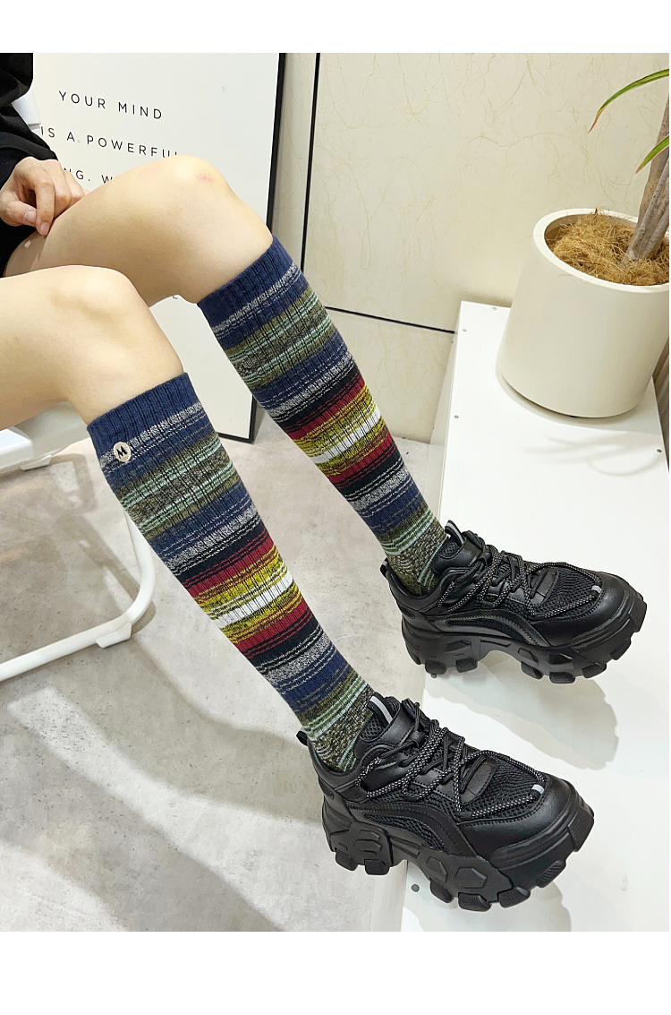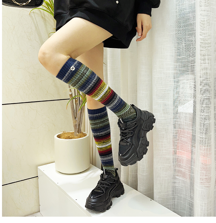 跑步運動護腿壓力襪顯瘦復古時尚小腿襪秋冬加厚保暖毛巾底中長筒
