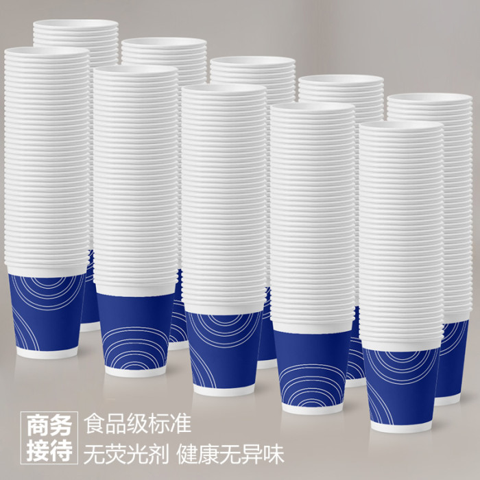 蔚藍商務一次性杯子紙杯加厚耐用家用商用辦公杯咖啡杯