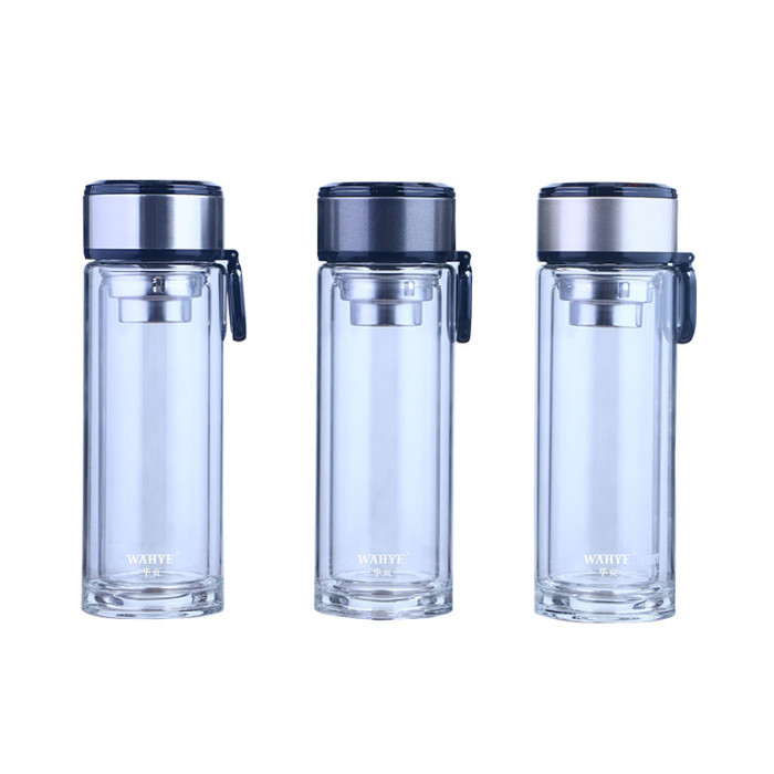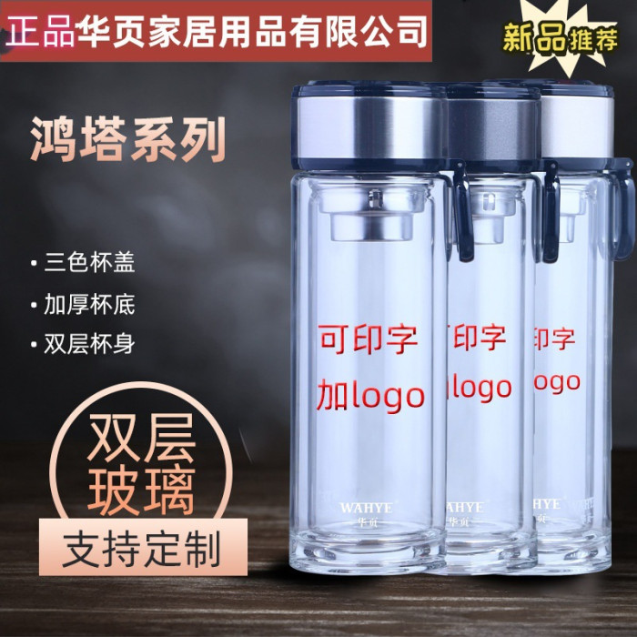 鴻塔雙層玻璃杯可攜式提環水杯商務加厚車用高鵬矽茶水分離泡茶杯批