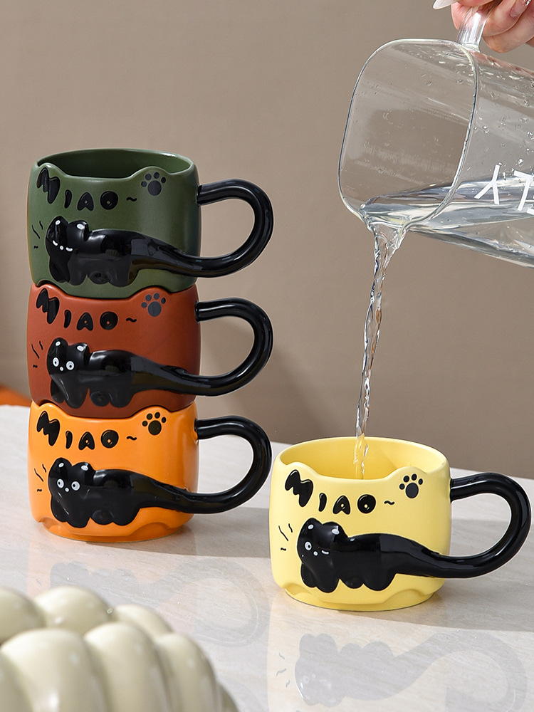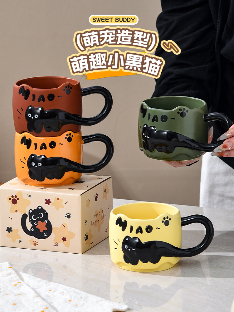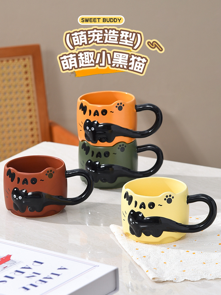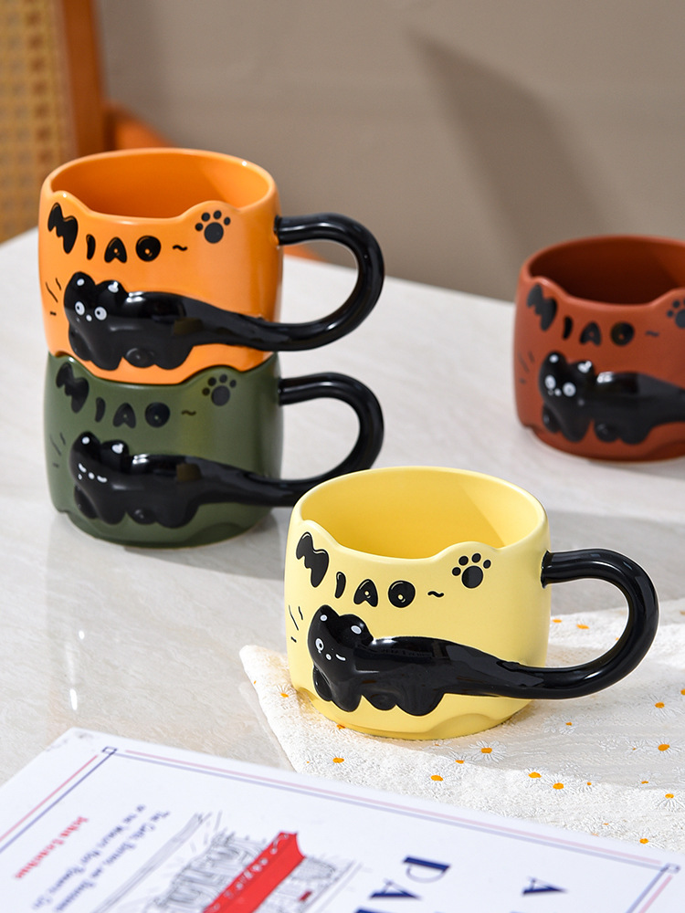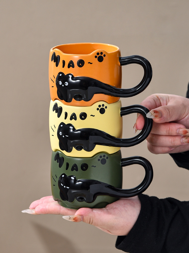 貓貓曡曡杯創意馬克杯喝水招待客人的杯子家用套裝把手陶瓷咖啡杯