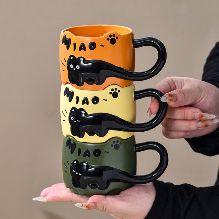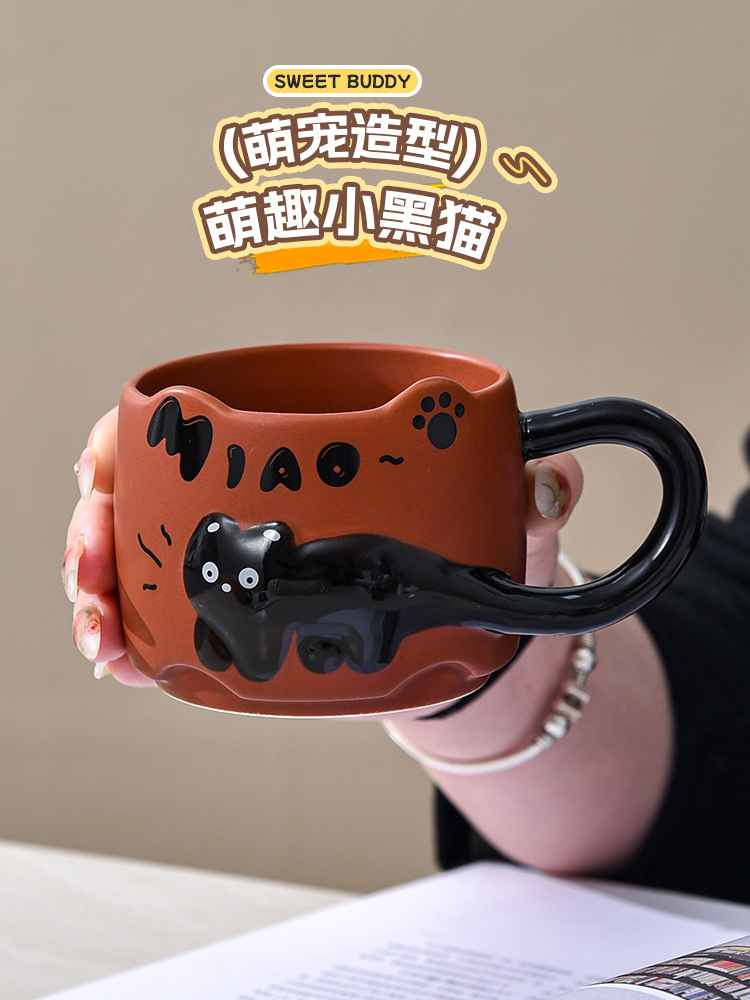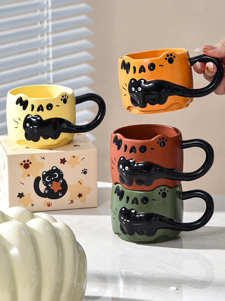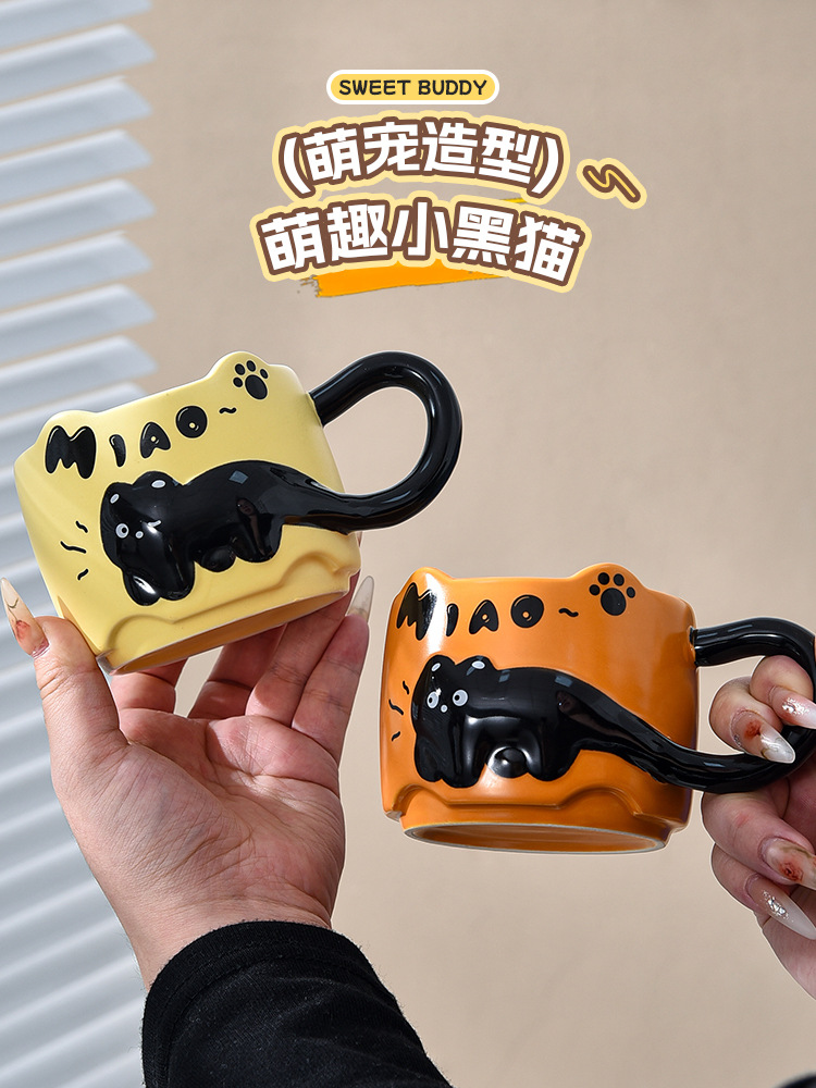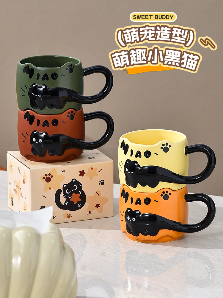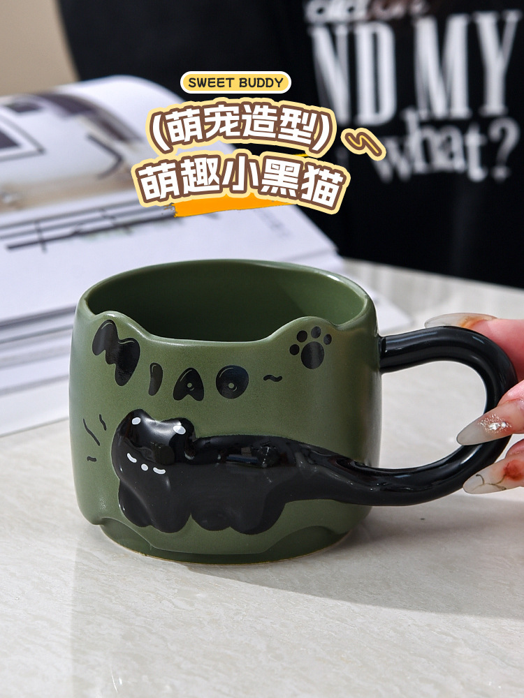 貓貓曡曡杯創意馬克杯喝水招待客人的杯子家用套裝把手陶瓷咖啡杯