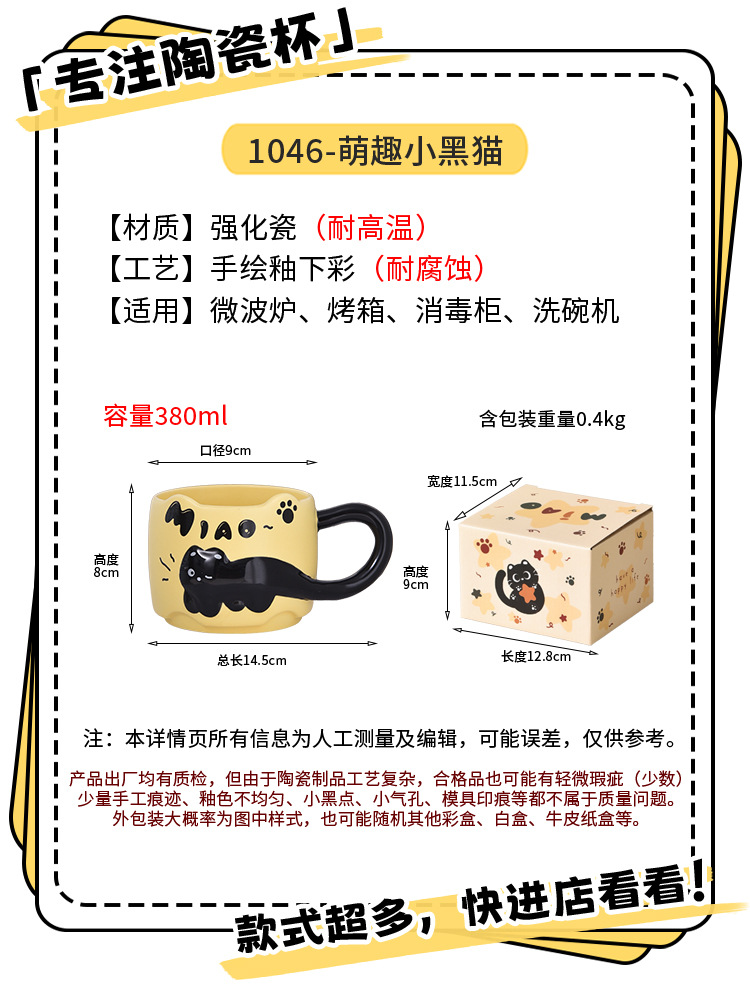 | 顔色 | 1046-013 萌趣小黑貓(黃色)新貓尾盃A款 |