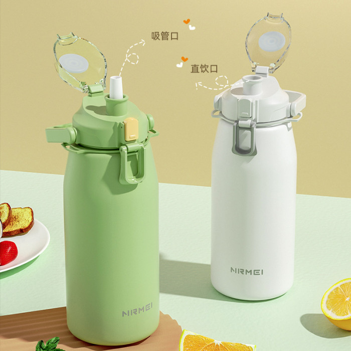德國316不鏽鋼保溫杯大容量大號女生高顔值吸管可攜式兒童水壺水杯