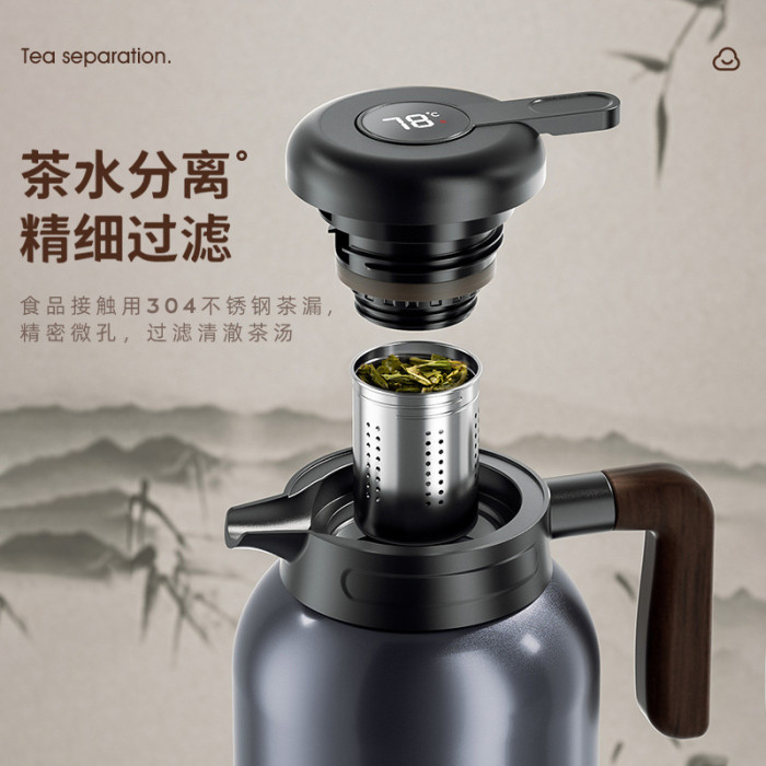 恩爾美陶瓷內膽大容量燜茶壺老式家用可攜式茶水分離顯溫悶泡保溫壺