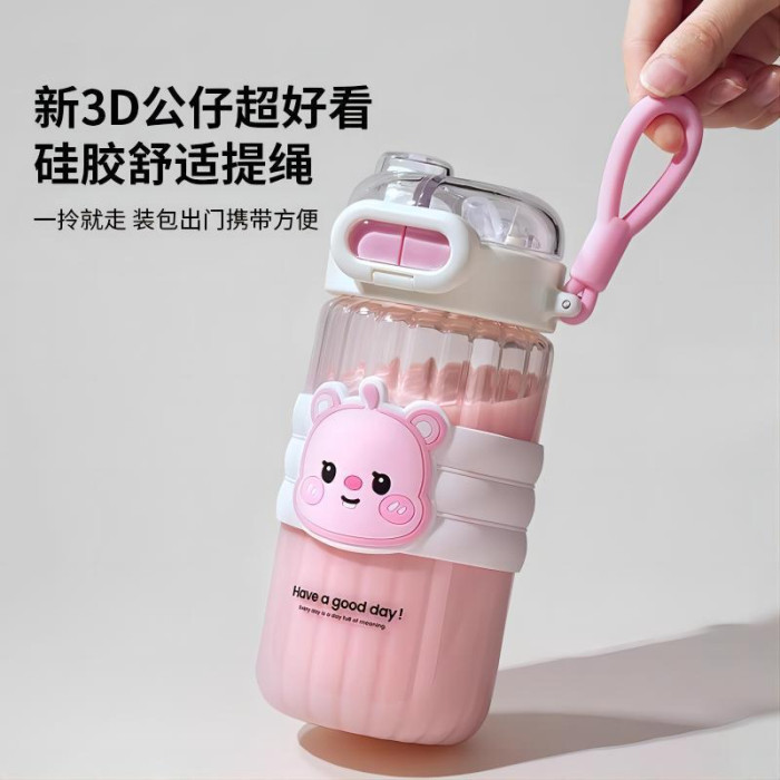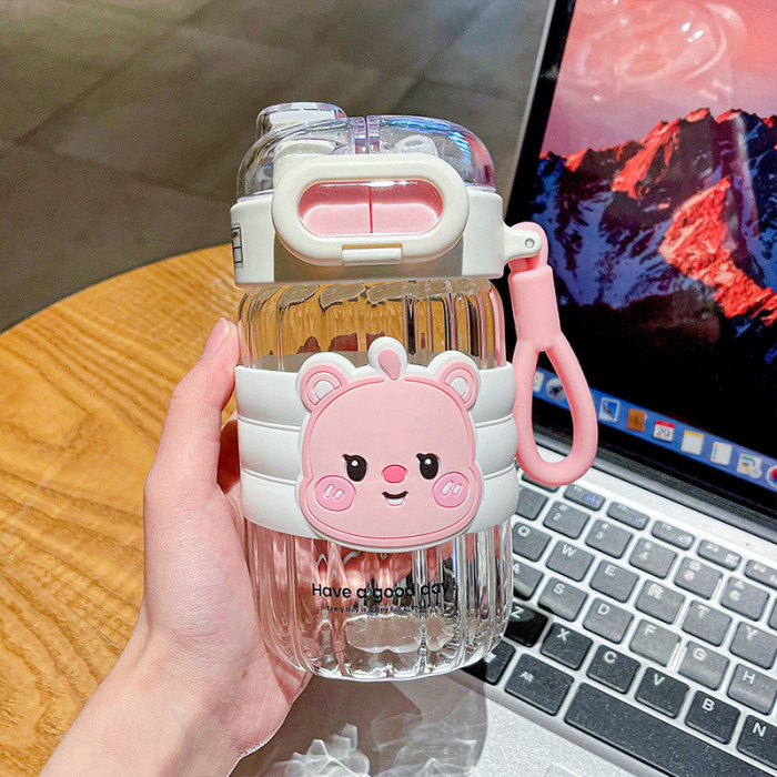 繽紛動物玻璃杯水杯高硼矽玻璃杯女高顔值雙飲吸管杯夏季學生可攜式
