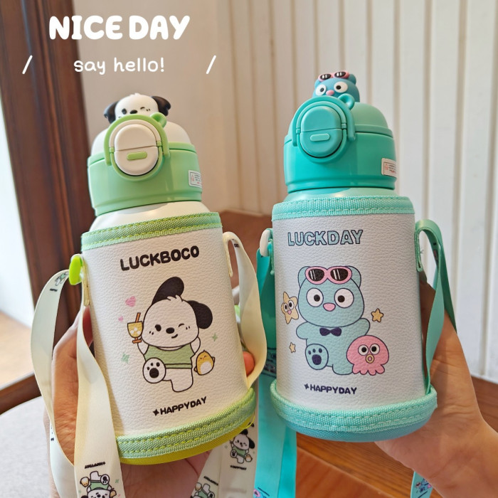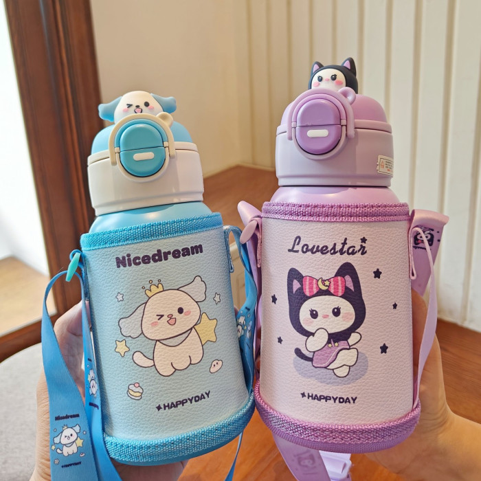 可愛公仔兒童保溫杯帶杯套防摔吸管水杯一杯雙飲真空杯子禮品