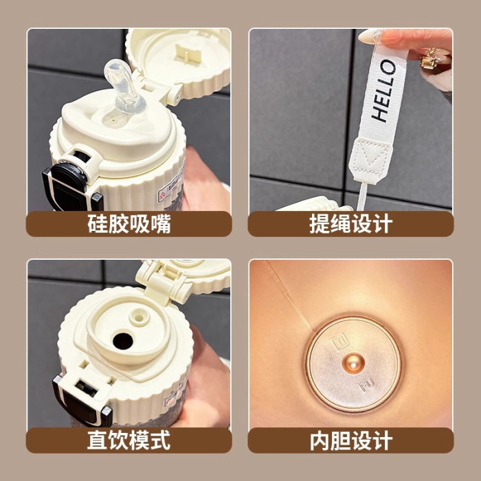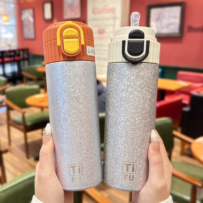 輕奢覆鈦保溫杯男女生高顔值大容量車用水杯學生戶外運動可攜式杯子