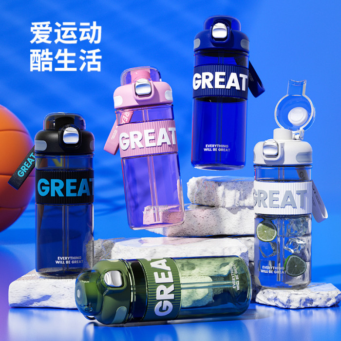 塑膠杯簡約彈蓋吸管杯學生運動吸管杯少女心女生隨手杯雙飲杯