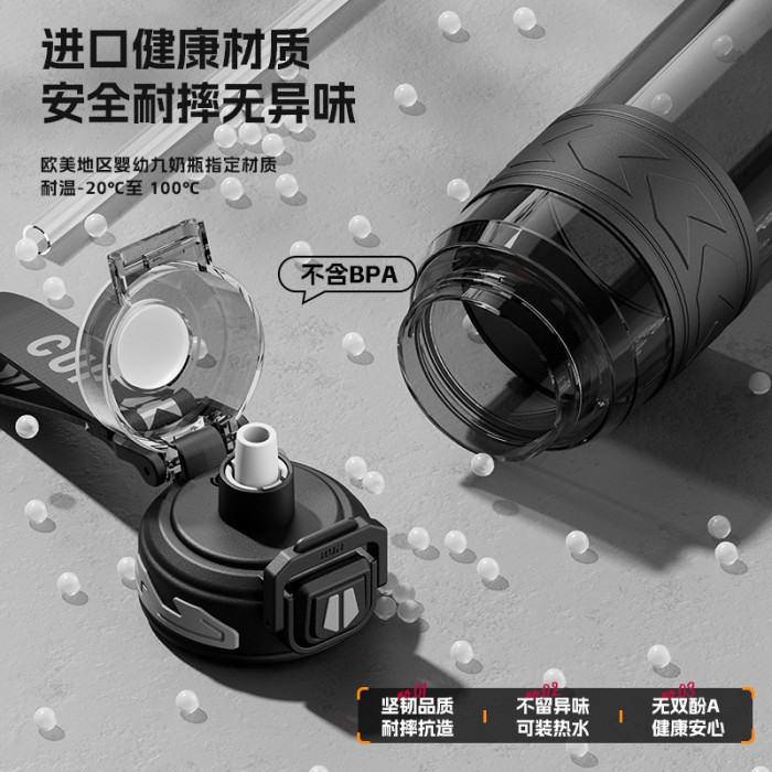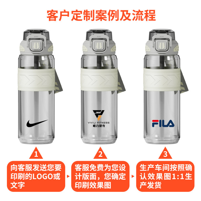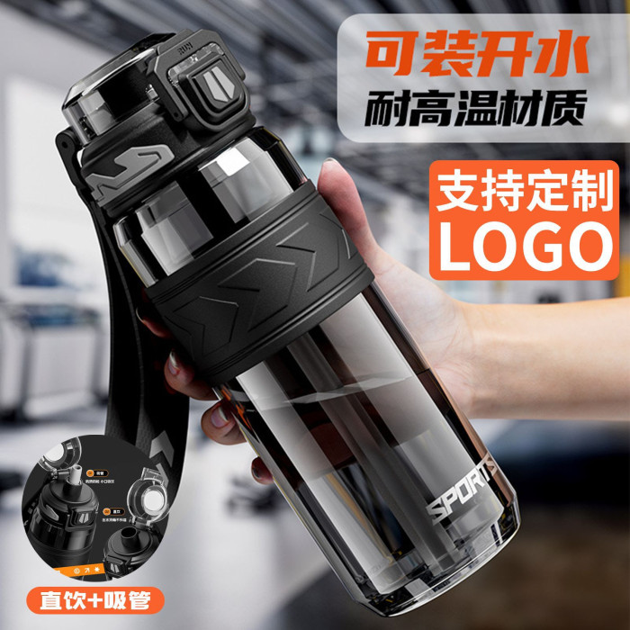 夏季健身運動水杯夏季男學生專用耐高溫吸管塑膠杯可攜式水壺印