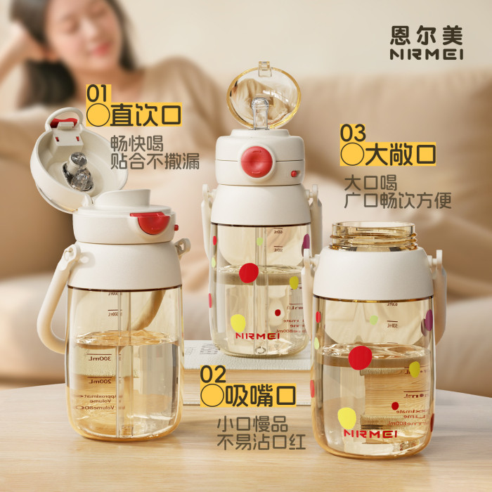 新款簡約嘟嘟杯女大容量兒童學生喝水高顔值吸管杯大肚子水杯