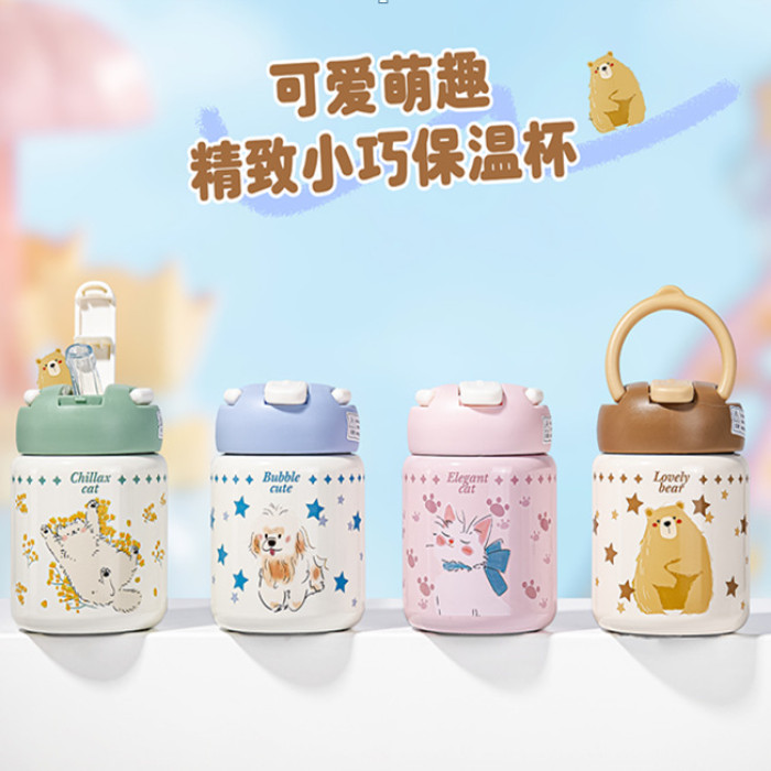 洛可卡皮巴拉保溫杯304不鏽鋼伴手禮女生吸管杯卡通可攜式小巧水杯