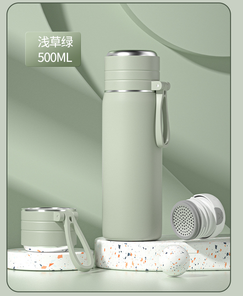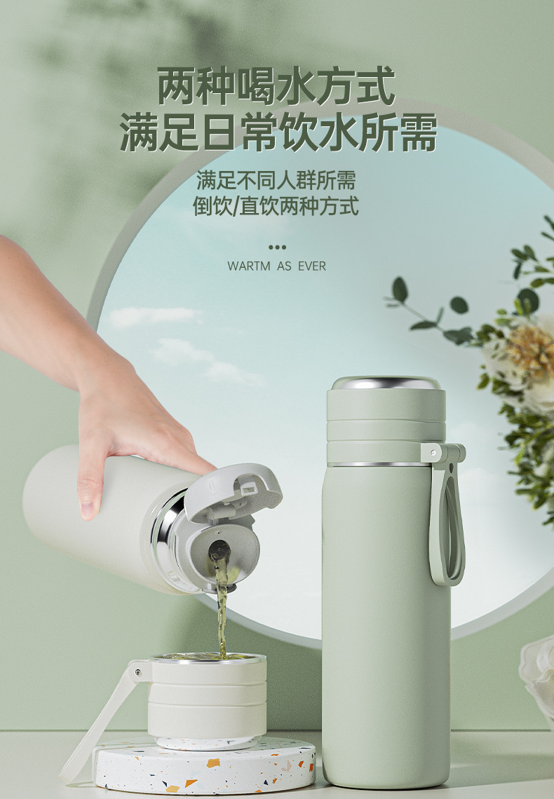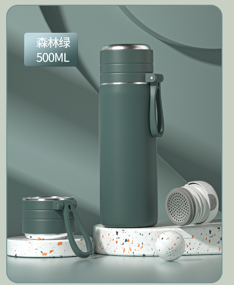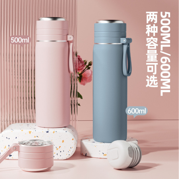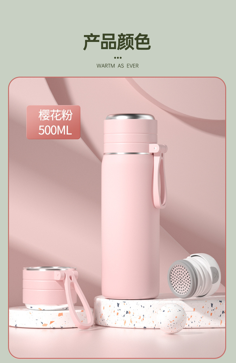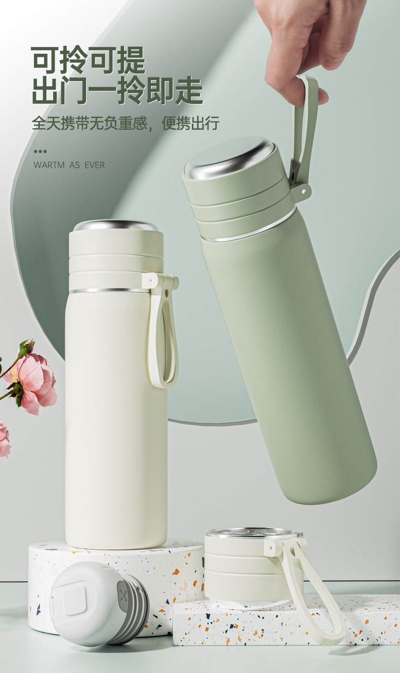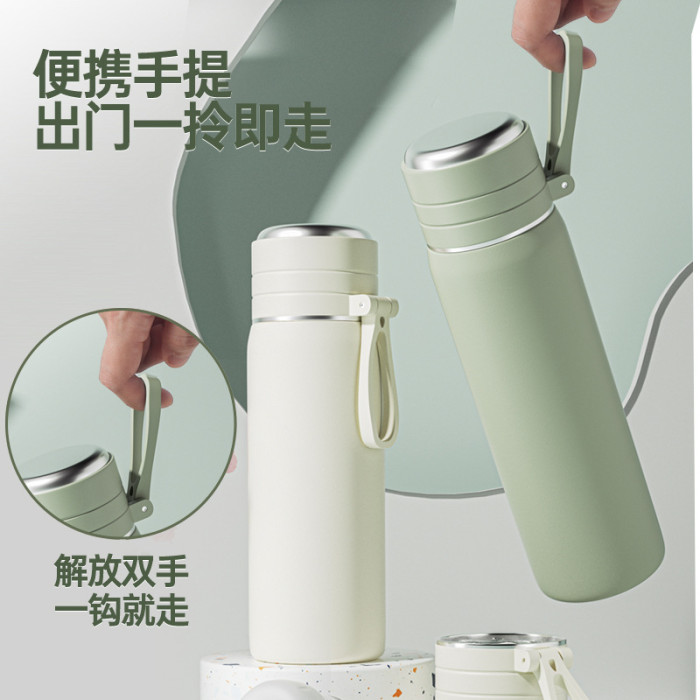 戶外吊帶運動水杯大容量不鏽鋼杯茶水分離泡茶杯高顔值禮品保溫杯
