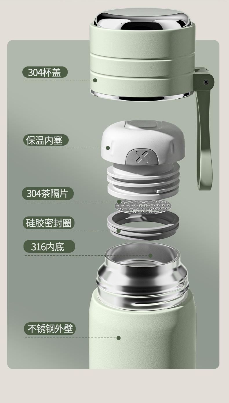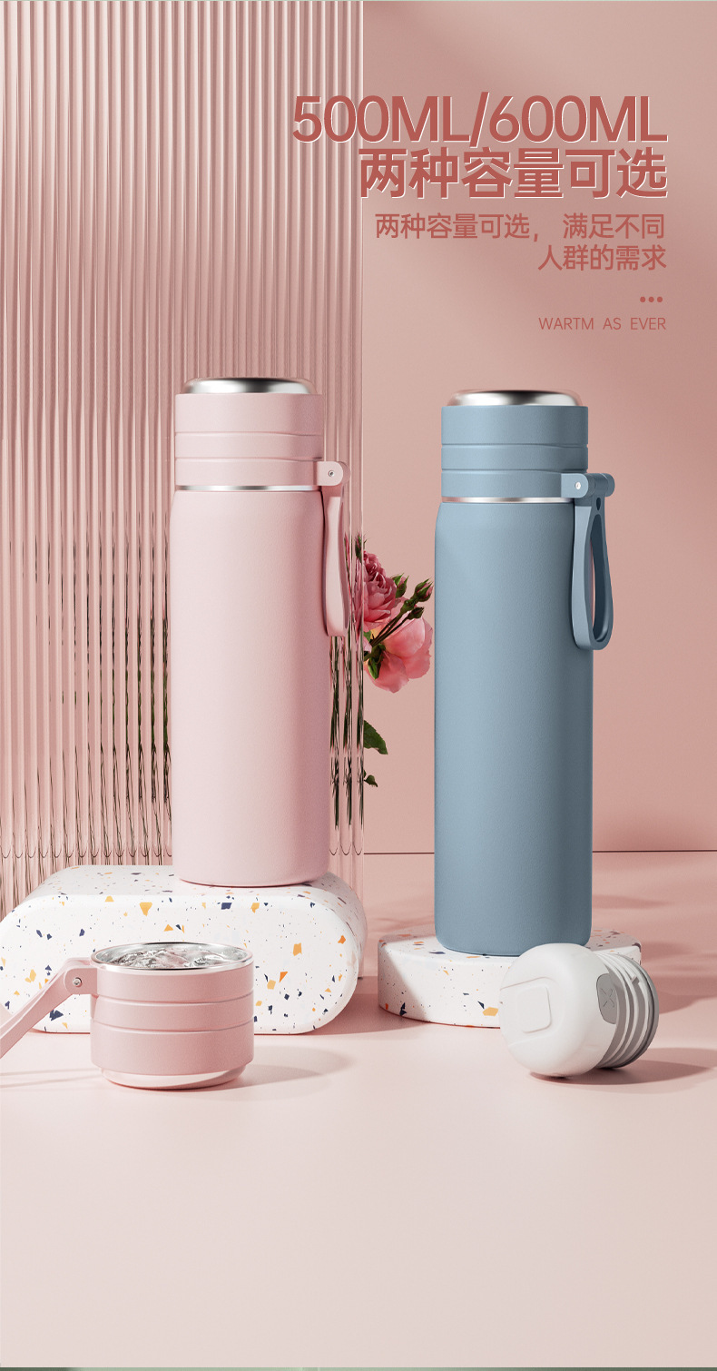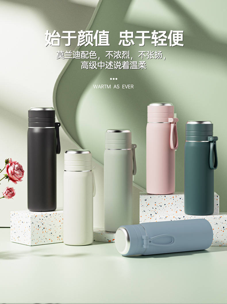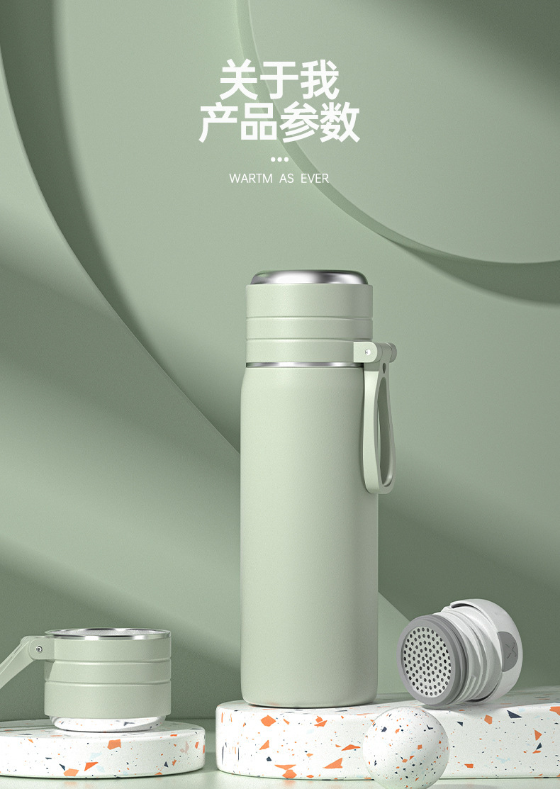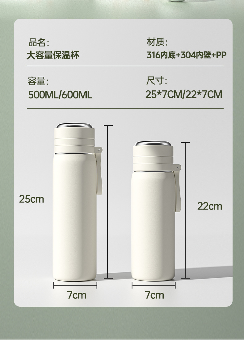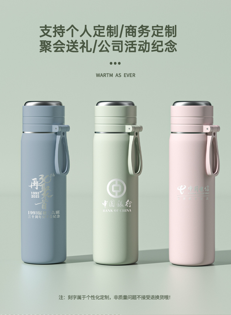 戶外吊帶運動水杯大容量不鏽鋼杯茶水分離泡茶杯高顔值禮品保溫杯