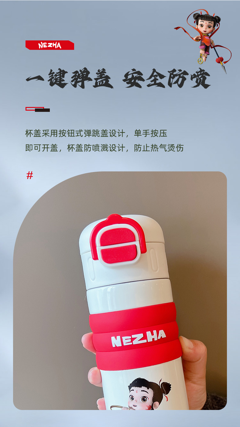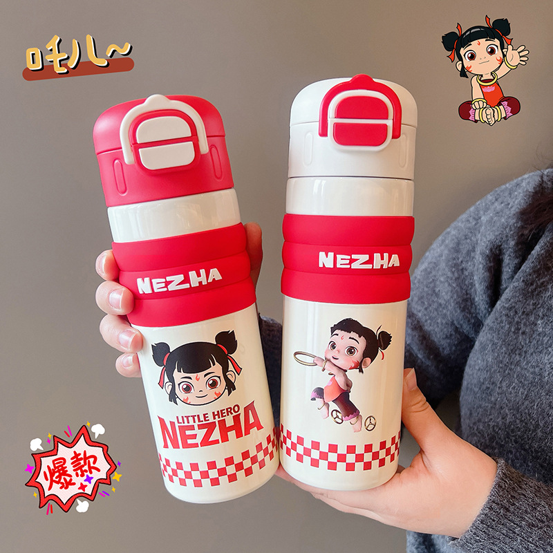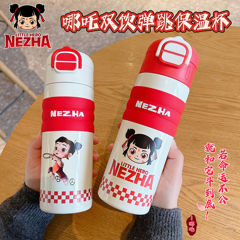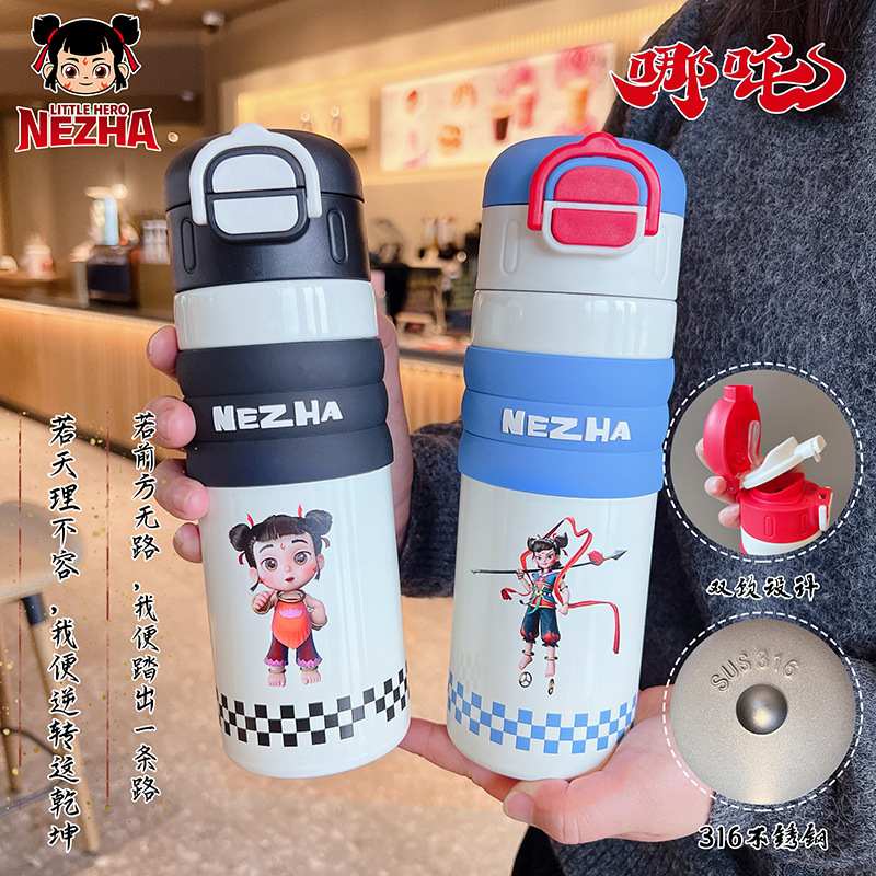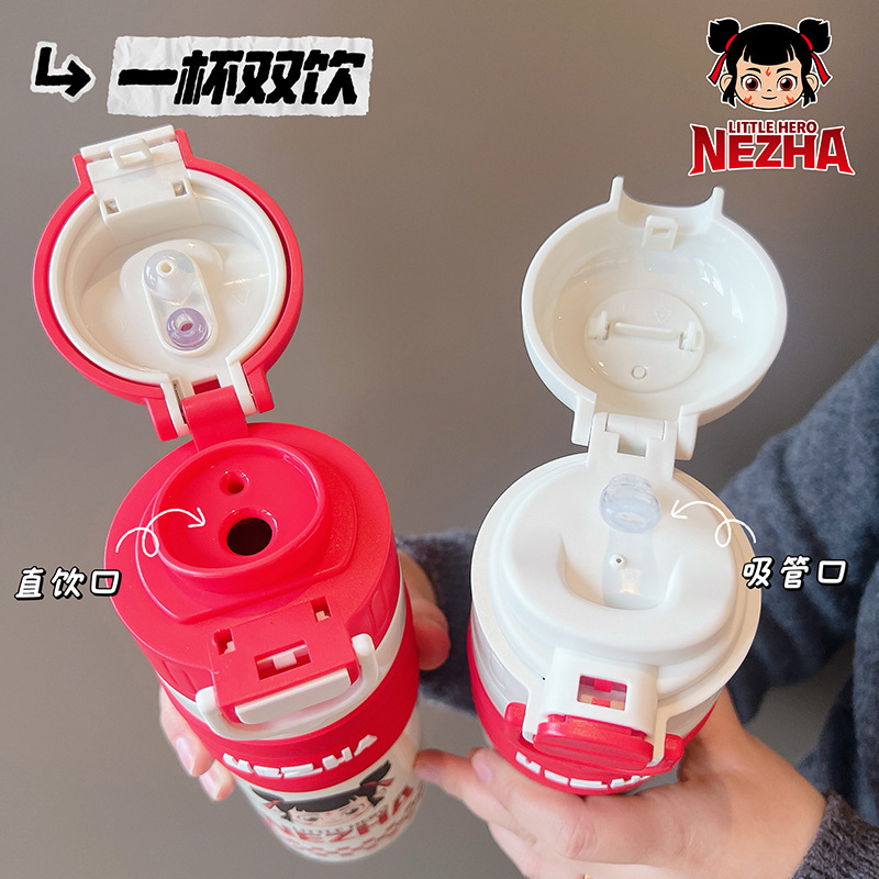 哪吒保溫杯316不鏽鋼水杯子敖丙敖光哪吒可攜式可愛學生大容量吸琯
