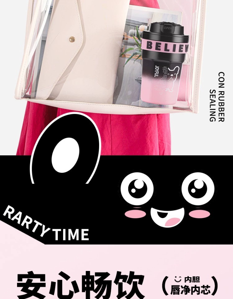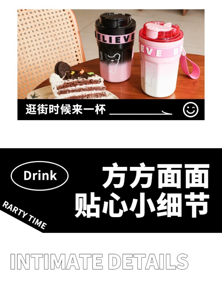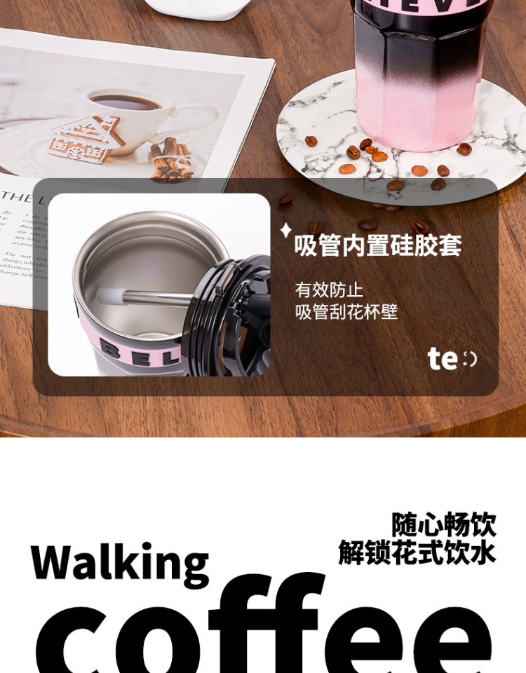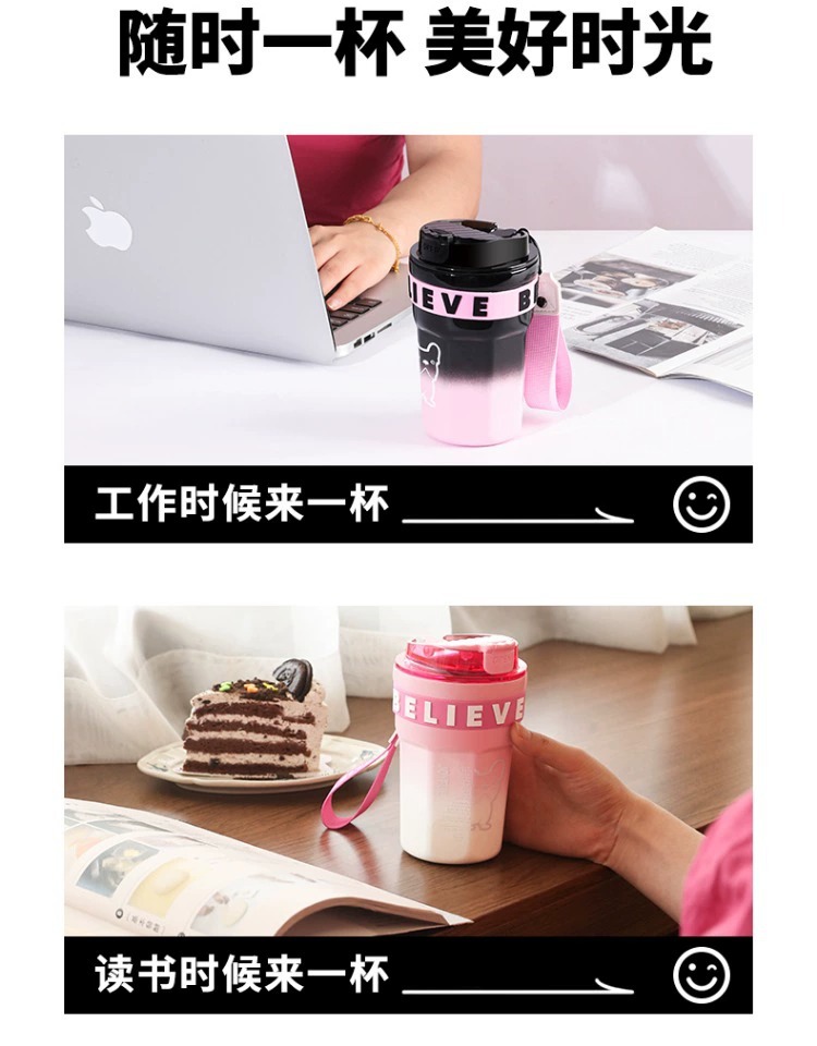 不鏽鋼吸管保溫杯ins風女生高顔值可攜式咖啡杯隨行水杯茶水分離杯