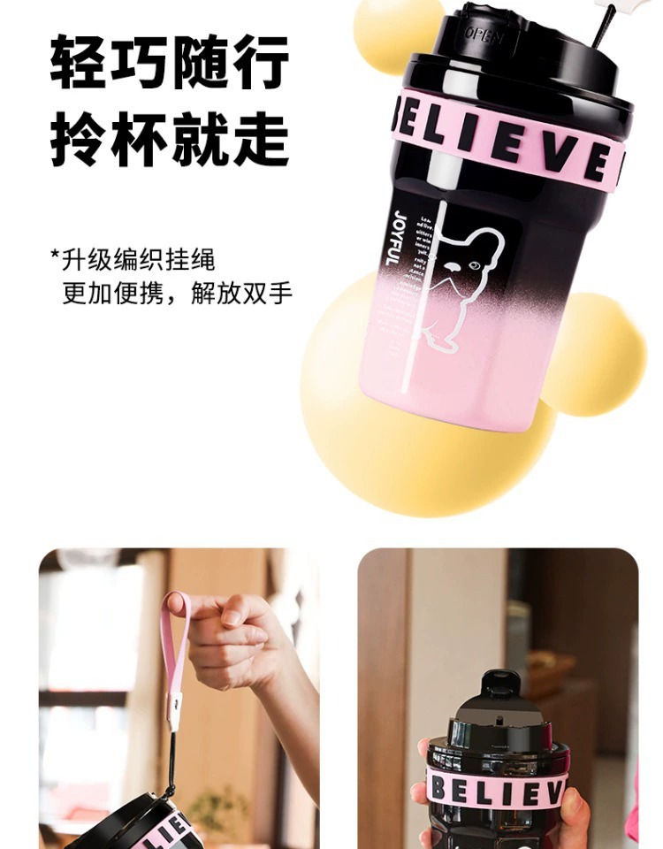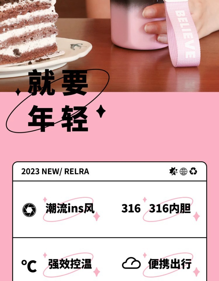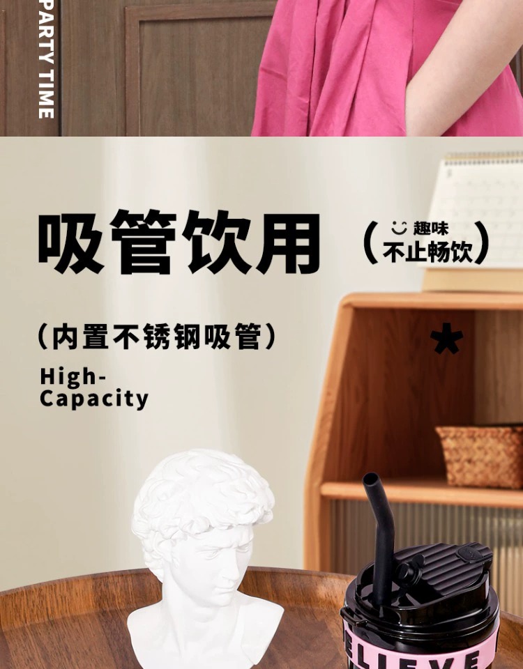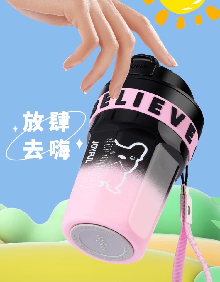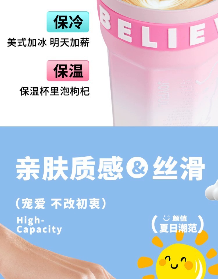 不鏽鋼吸管保溫杯ins風女生高顔值可攜式咖啡杯隨行水杯茶水分離杯