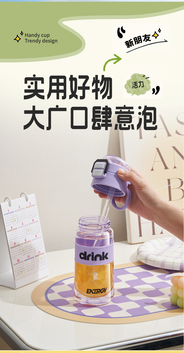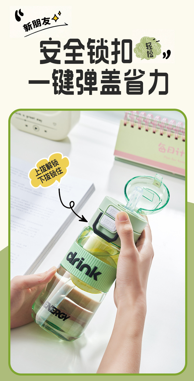 高顔值水杯學生男女可愛隨手杯帶吸管網紅可攜式水壺一鍵彈蓋隨手杯