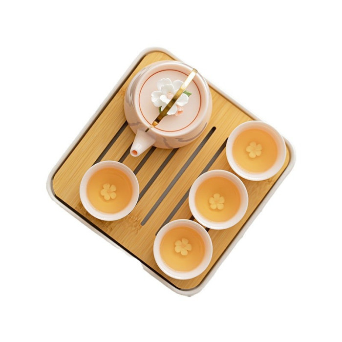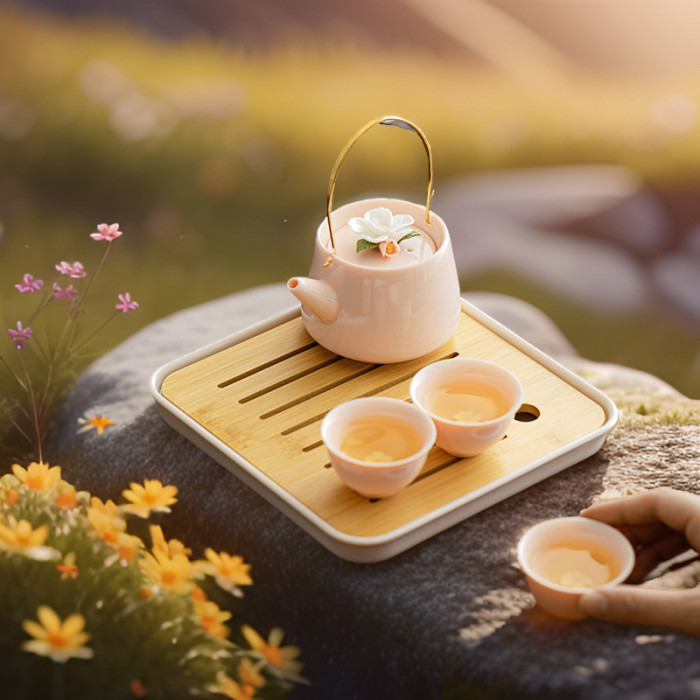 粉色捏花提梁壺功夫茶具套裝一壺四杯帶茶盤小套女生簡約泡茶杯壺