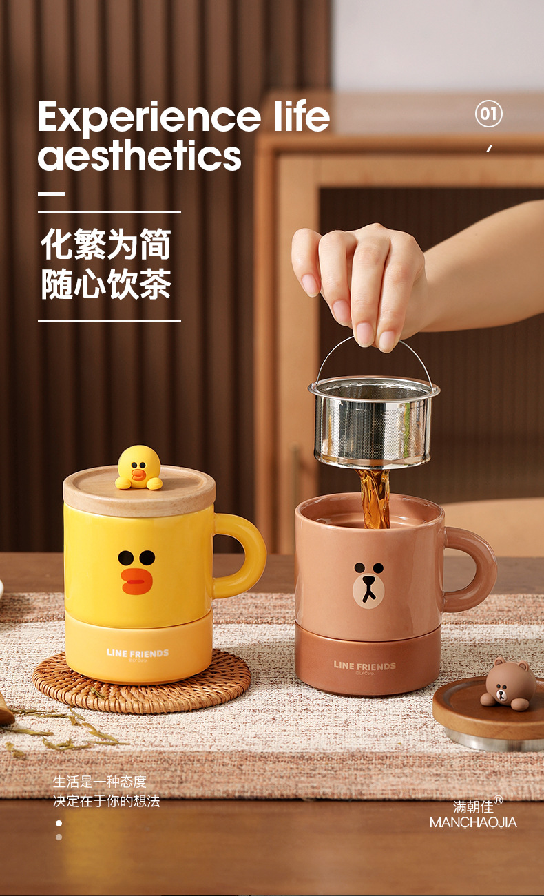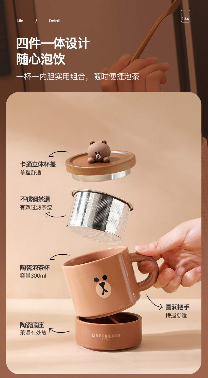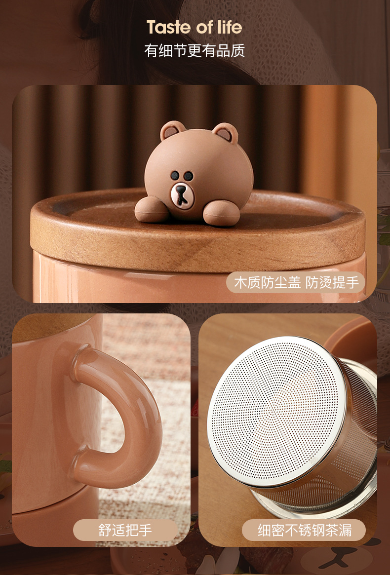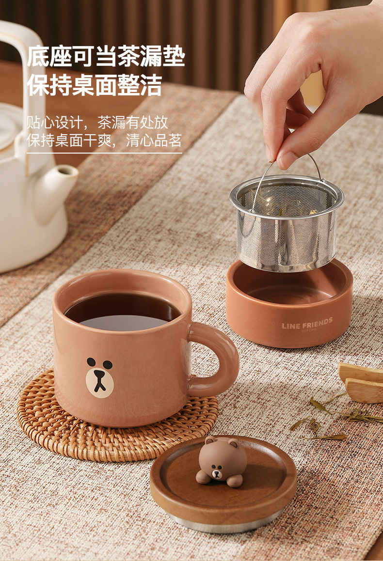 布朗熊陶瓷茶杯套裝高級感茶水分離泡茶杯子辦公室帶過濾茶漏水杯